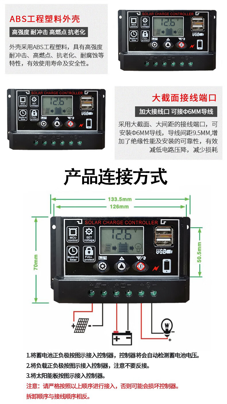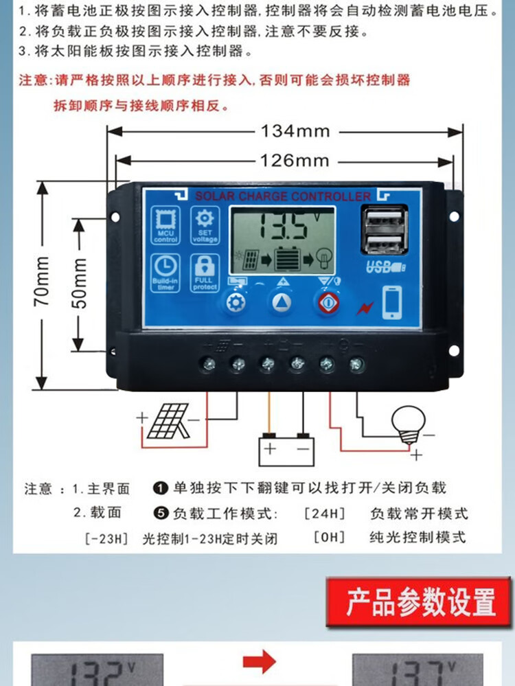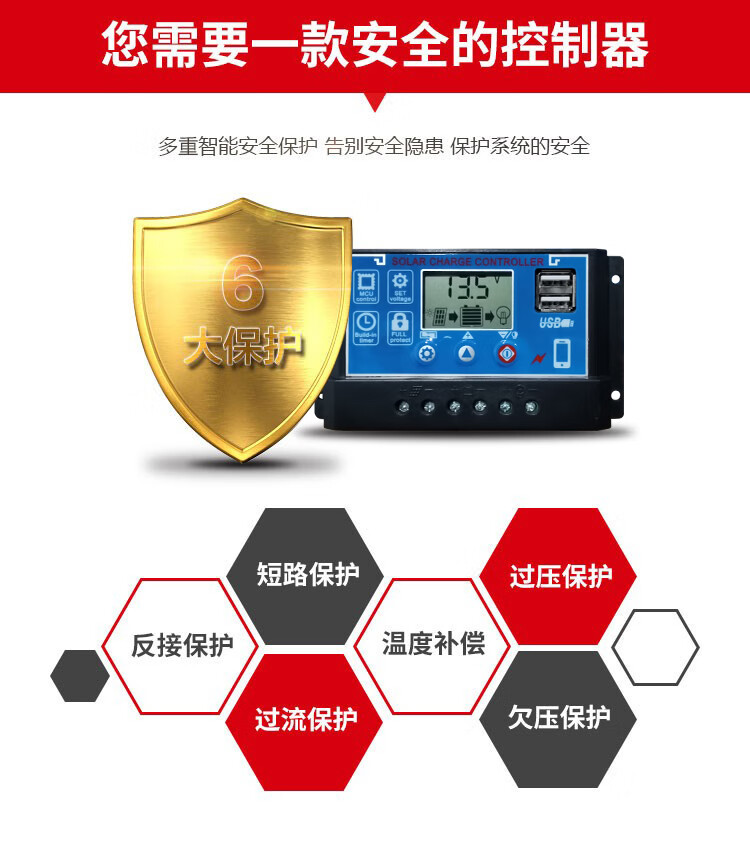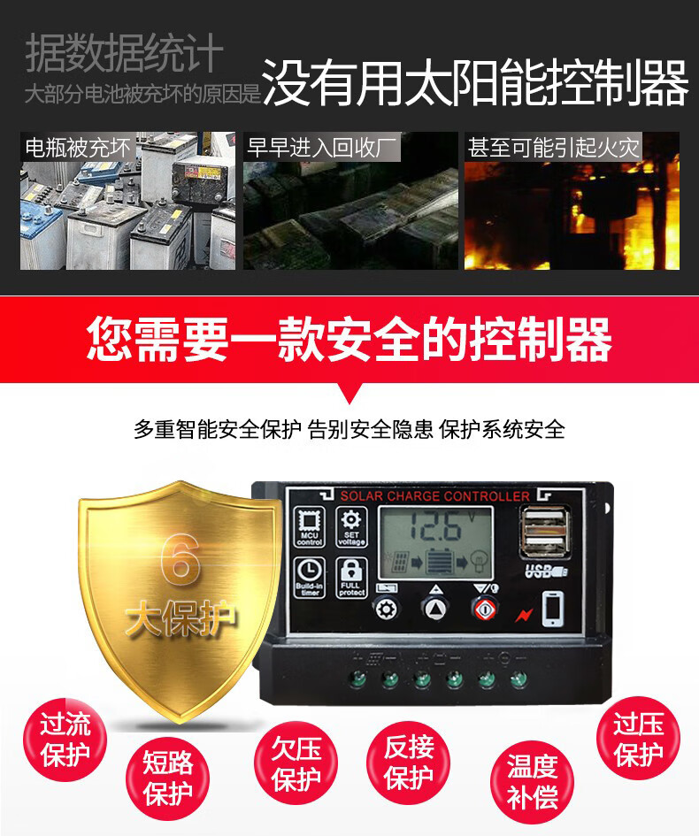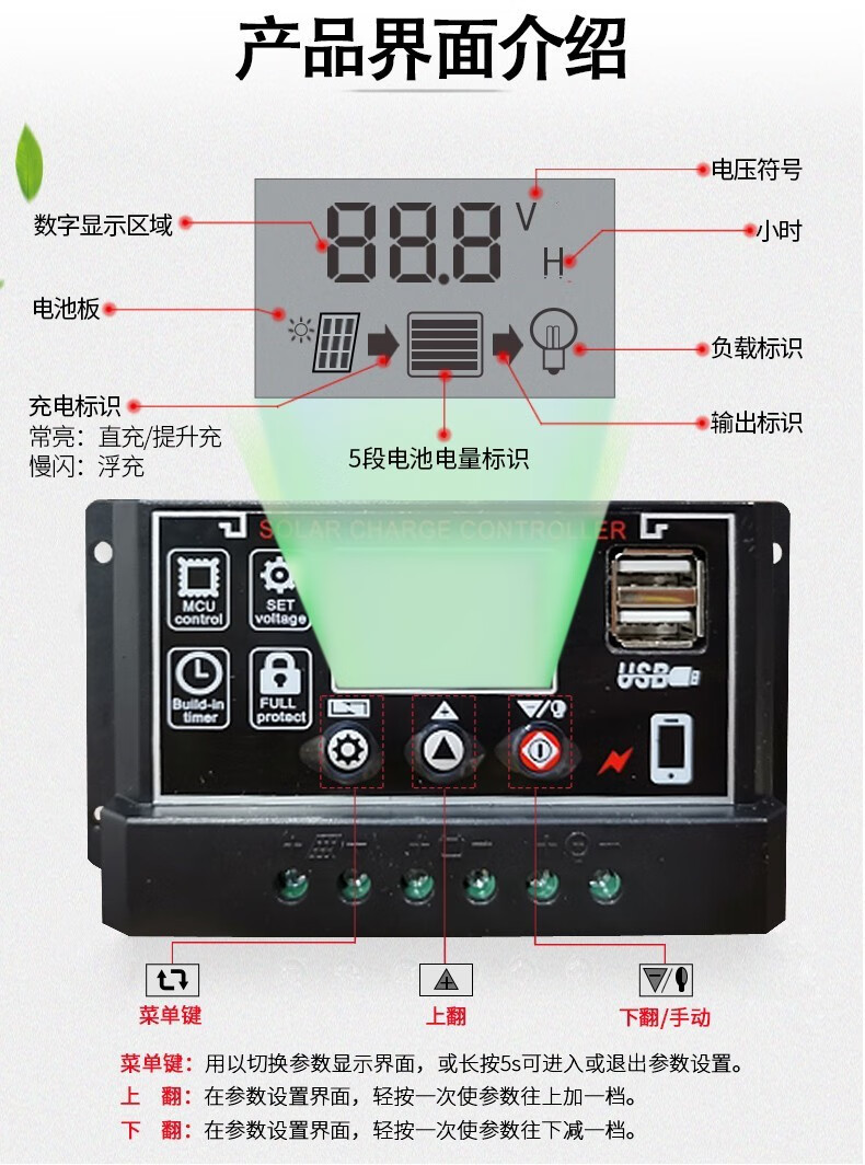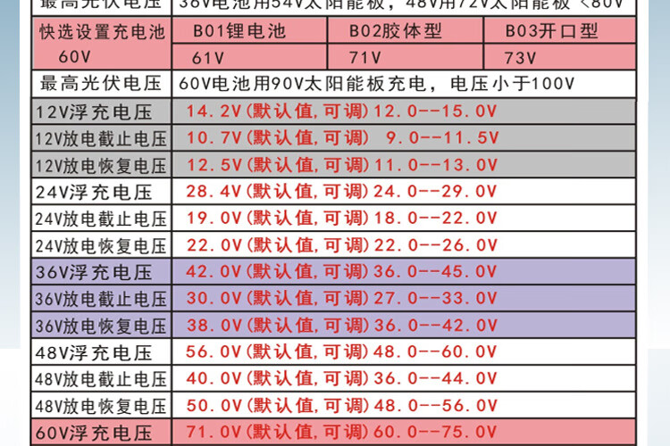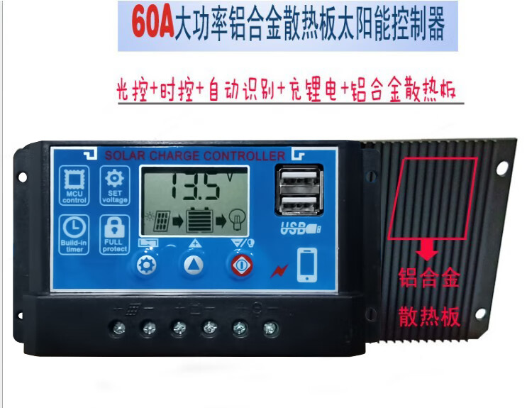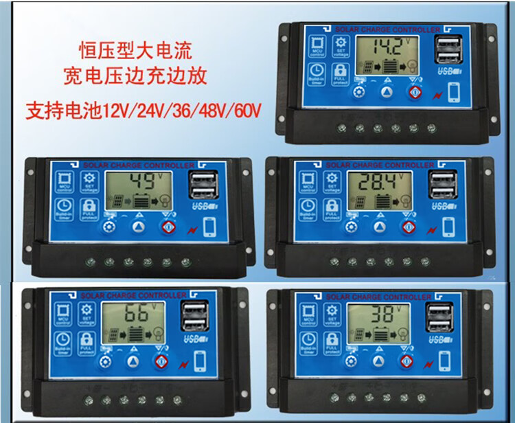60A solar controller 12V24V36V48V60V household fully automatic photovoltaic panel rechargeable lead-acid lithium battery universal 12V24V lithium battery/lead-acid universal 60A