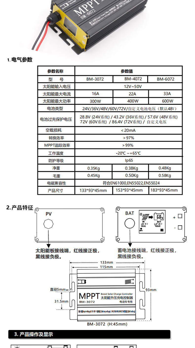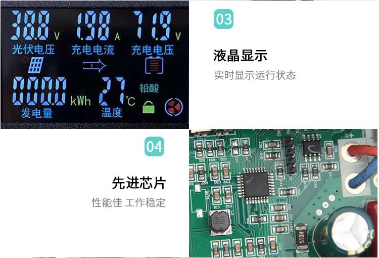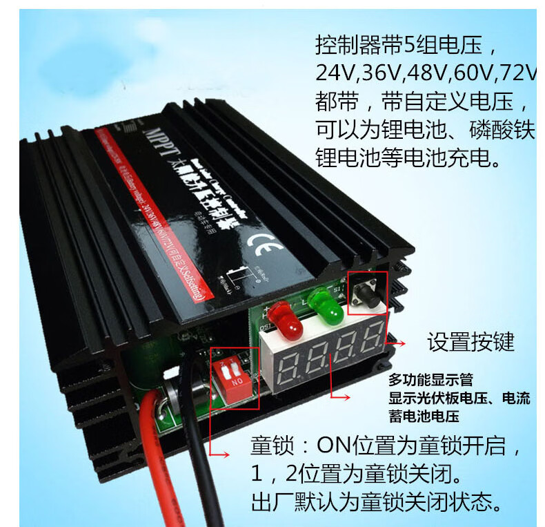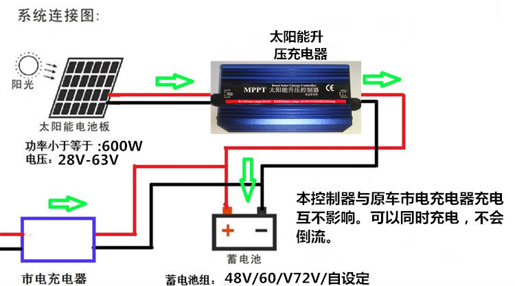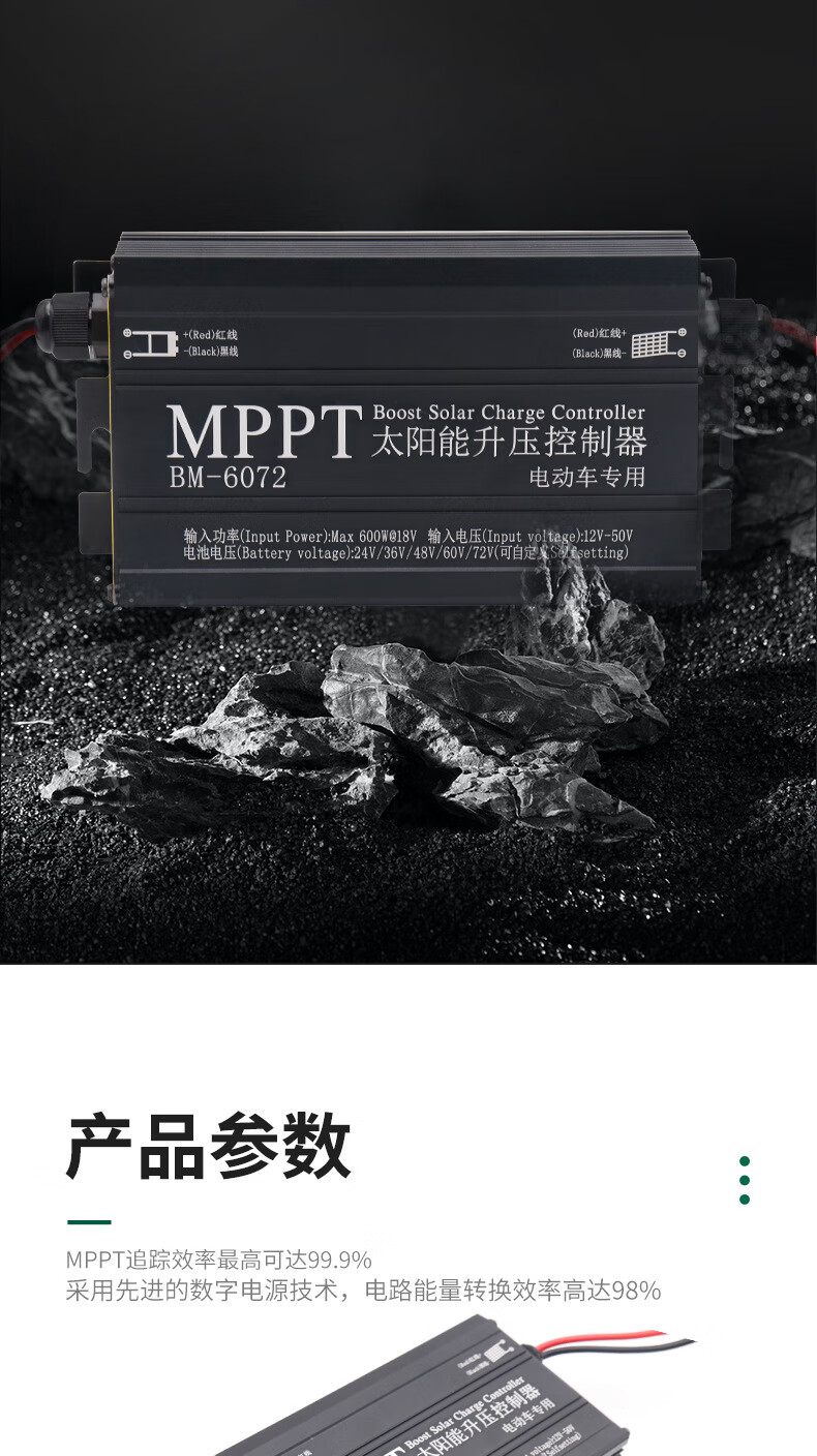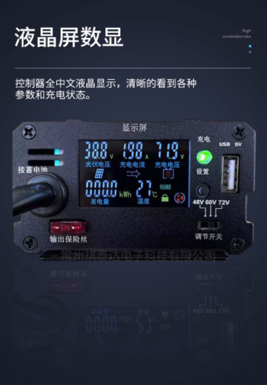 Solar controller MPPT boost battery power generation board 36V48V60V72V electric vehicle battery car charger 48V60V72V1200W boost color LCD model