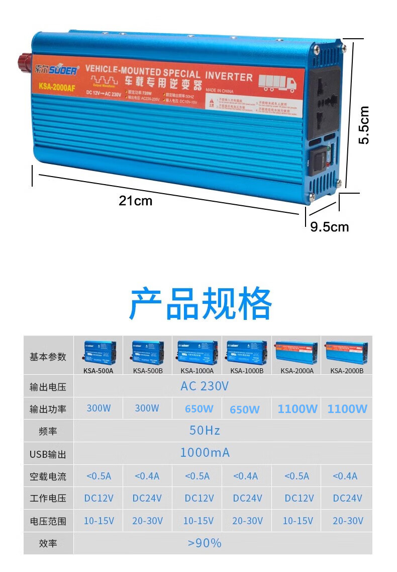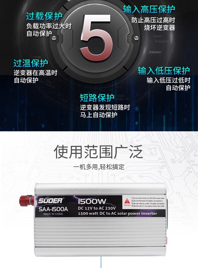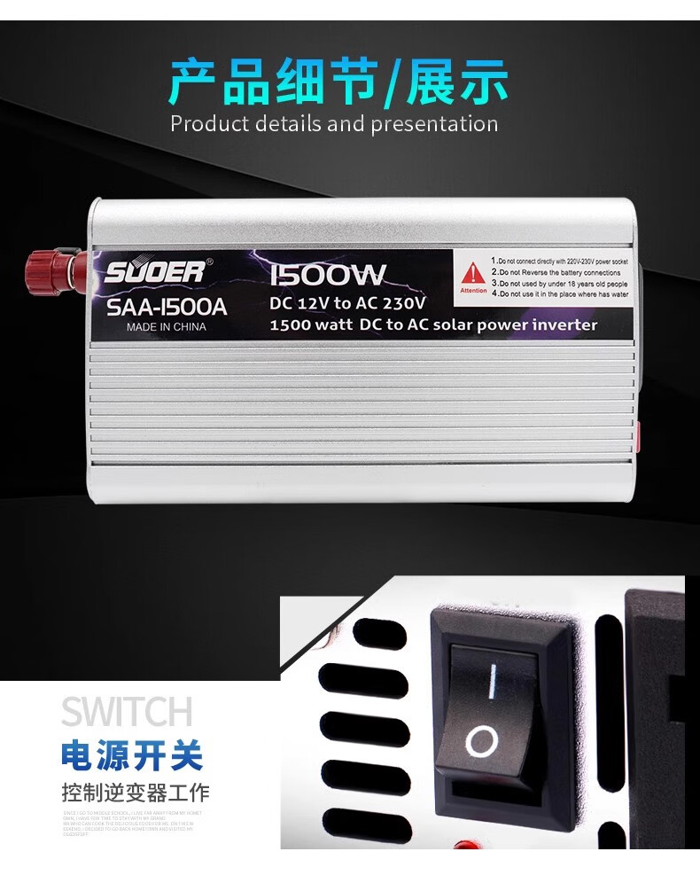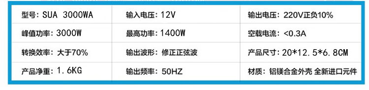 1000W/1500W/2000W12V/24V to 220V household car converter 12V1500W household type