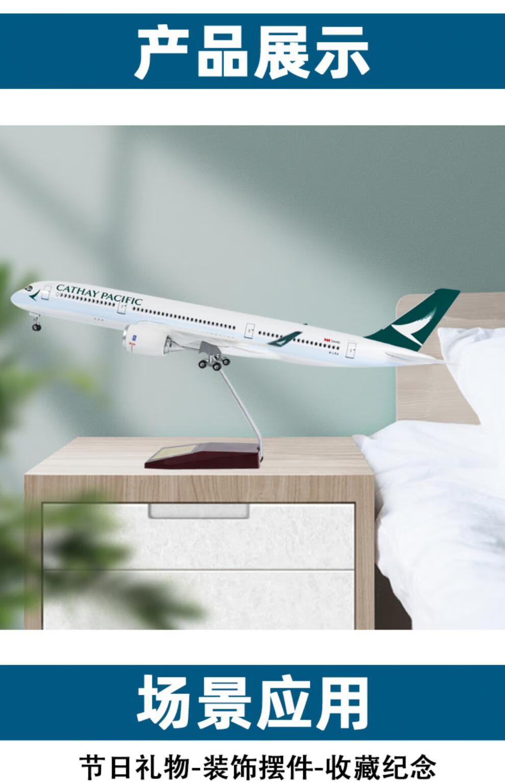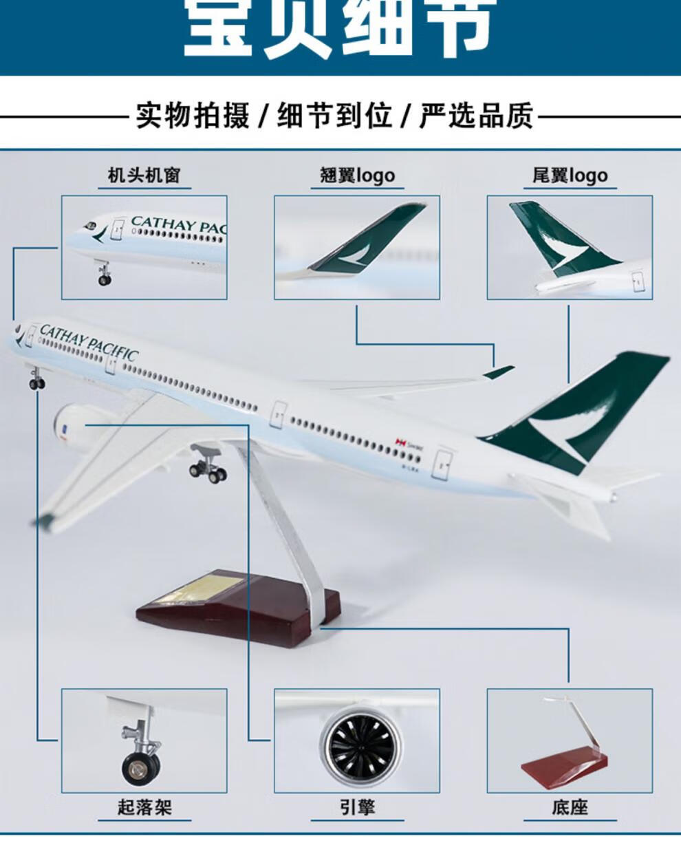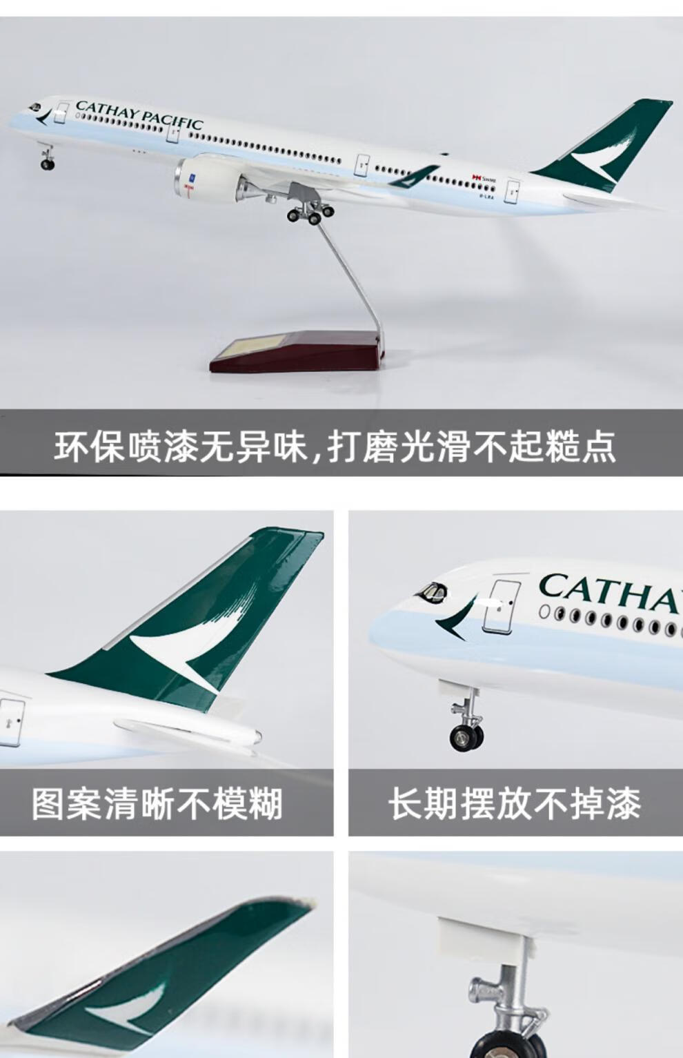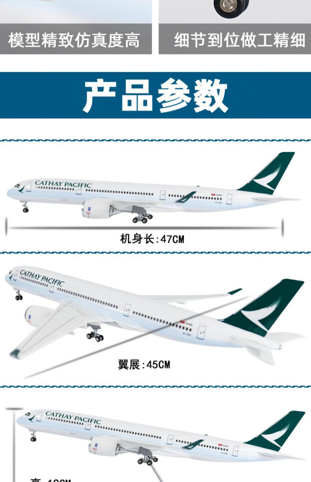 Junmin civil aviation aircraft model Cathay Pacific simulated static passenger aircraft model Airbus A350 collection gift ornaments 47CM resin without lights with wheels