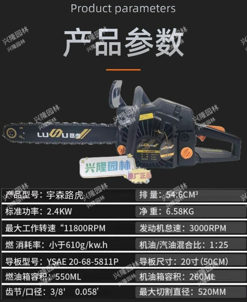 Yusen Land Rover 5800 chain saw two-stroke Huaboro carburetor 2.4KW high-power professional logging saw Yusen Land Rover 20 inches-oil package