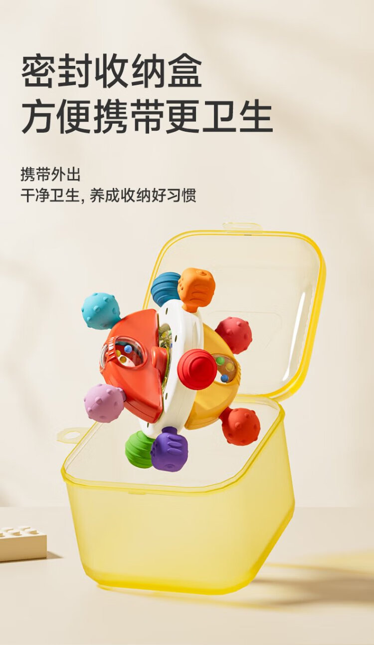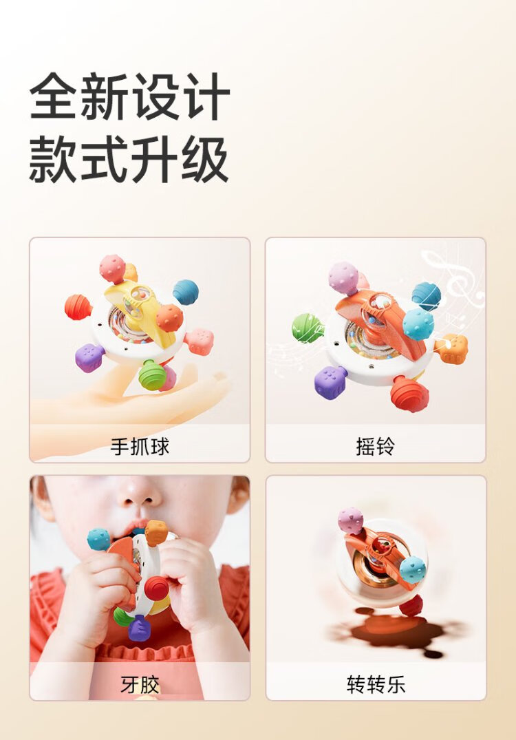 Rushan Manhattan hand ball baby toy silicone chewable teether for babies 3 to 6 months old to hold molars Manhattan Atomic Rotating Ball PRO-Blue and White