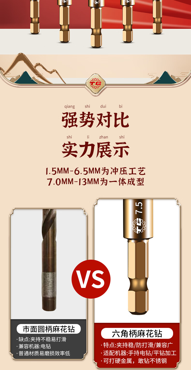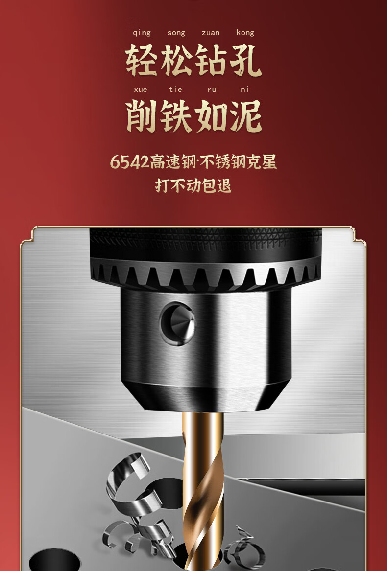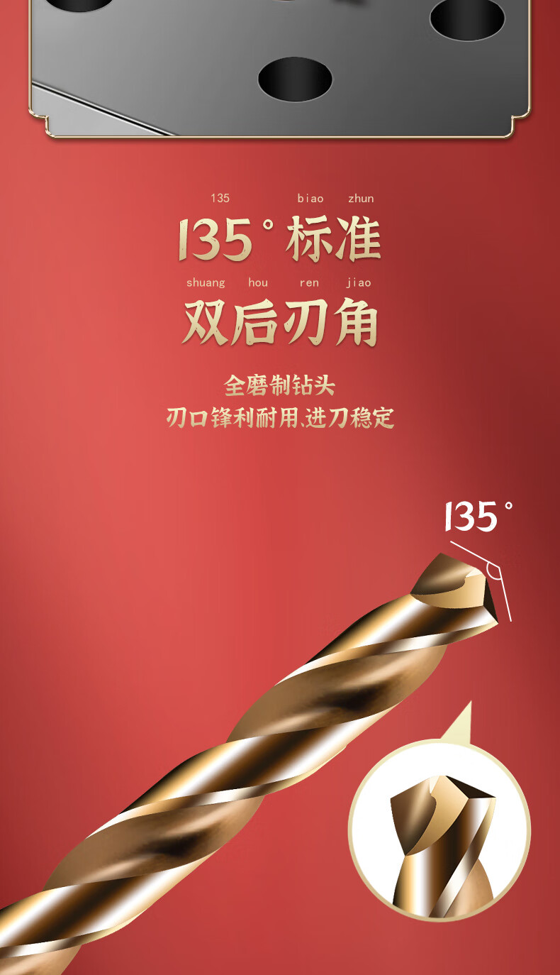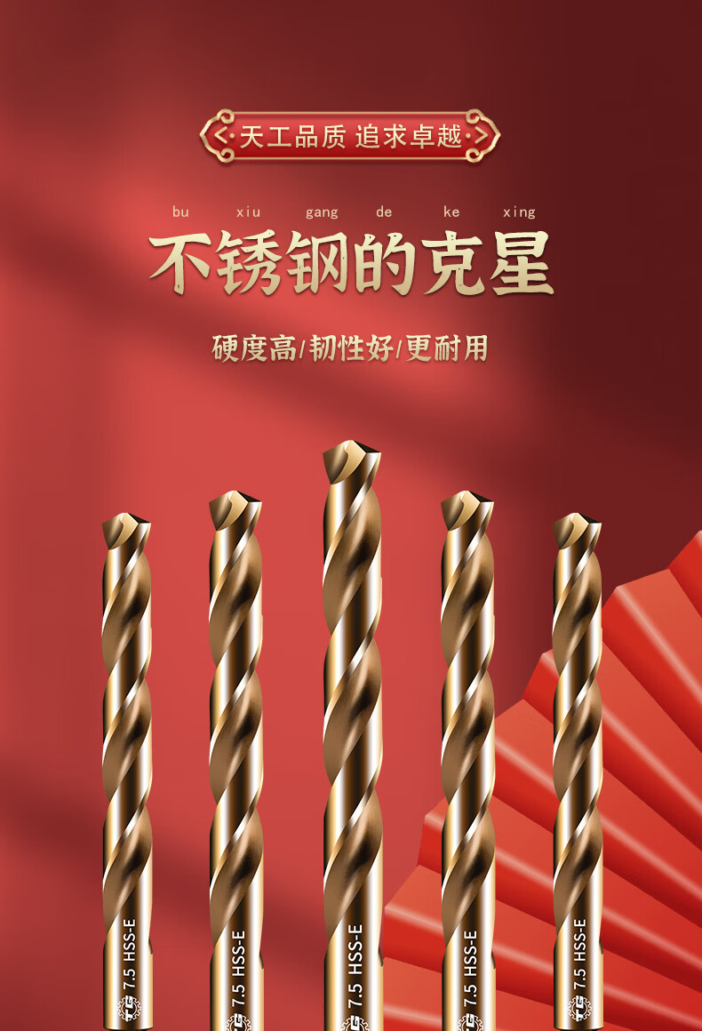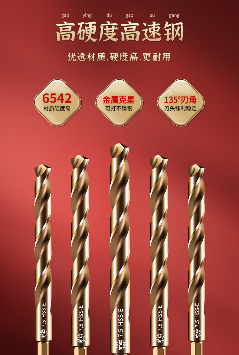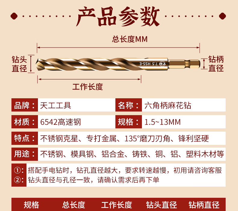 TIANGONG 6542 hexagonal handle twist drill with handle high-speed steel twist straight drill drilling set stainless steel metal drilling one-piece 10mm