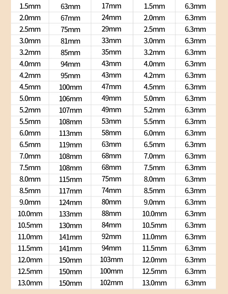 76.2 81.3 86.4 91.5 96.5 101.6 106.7 112 117 122 127 132 137 142