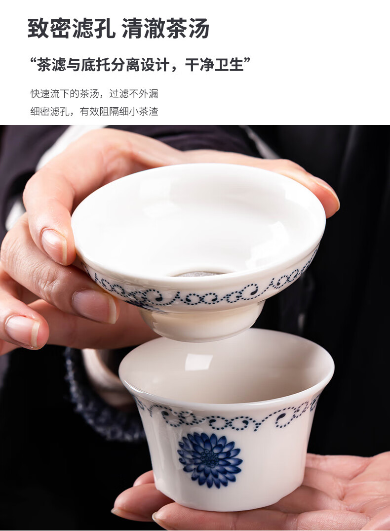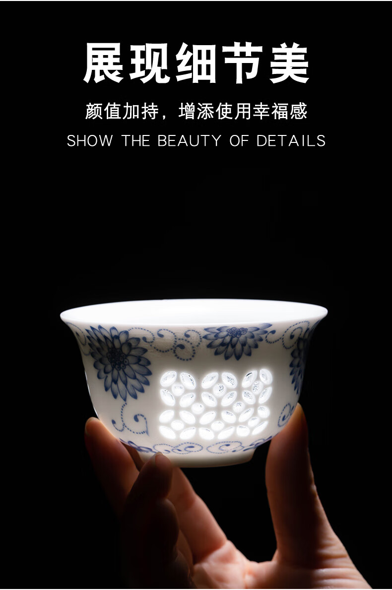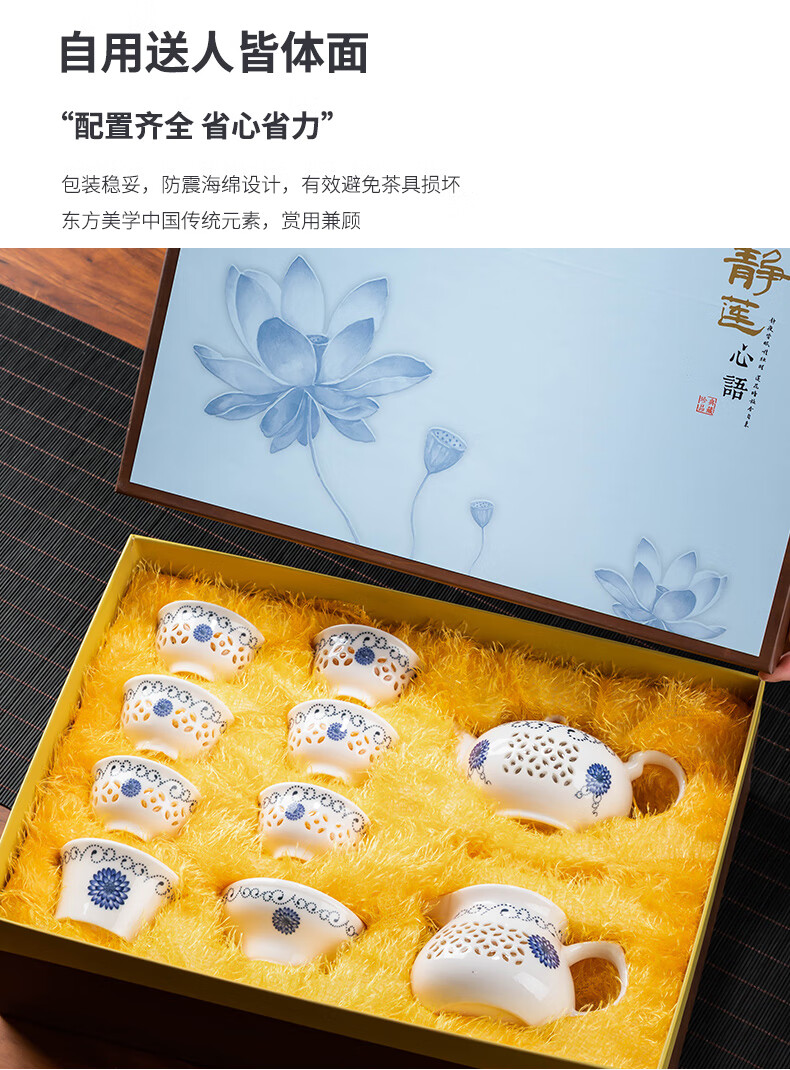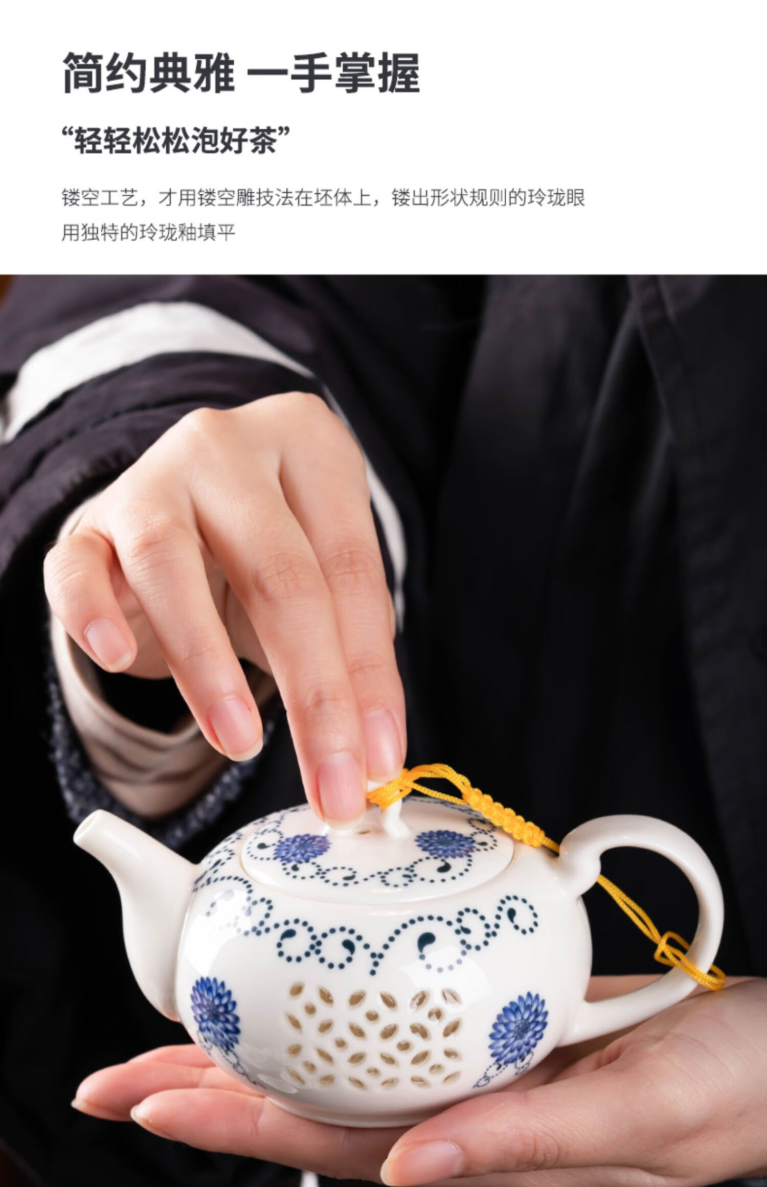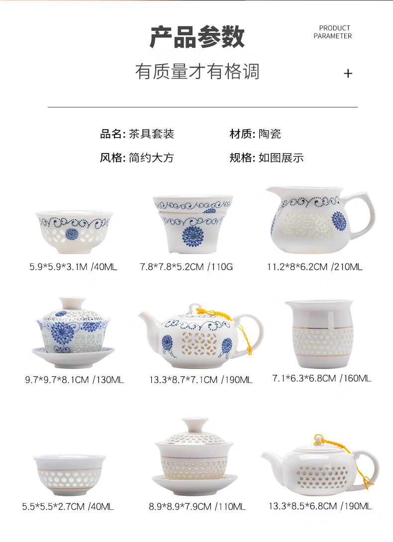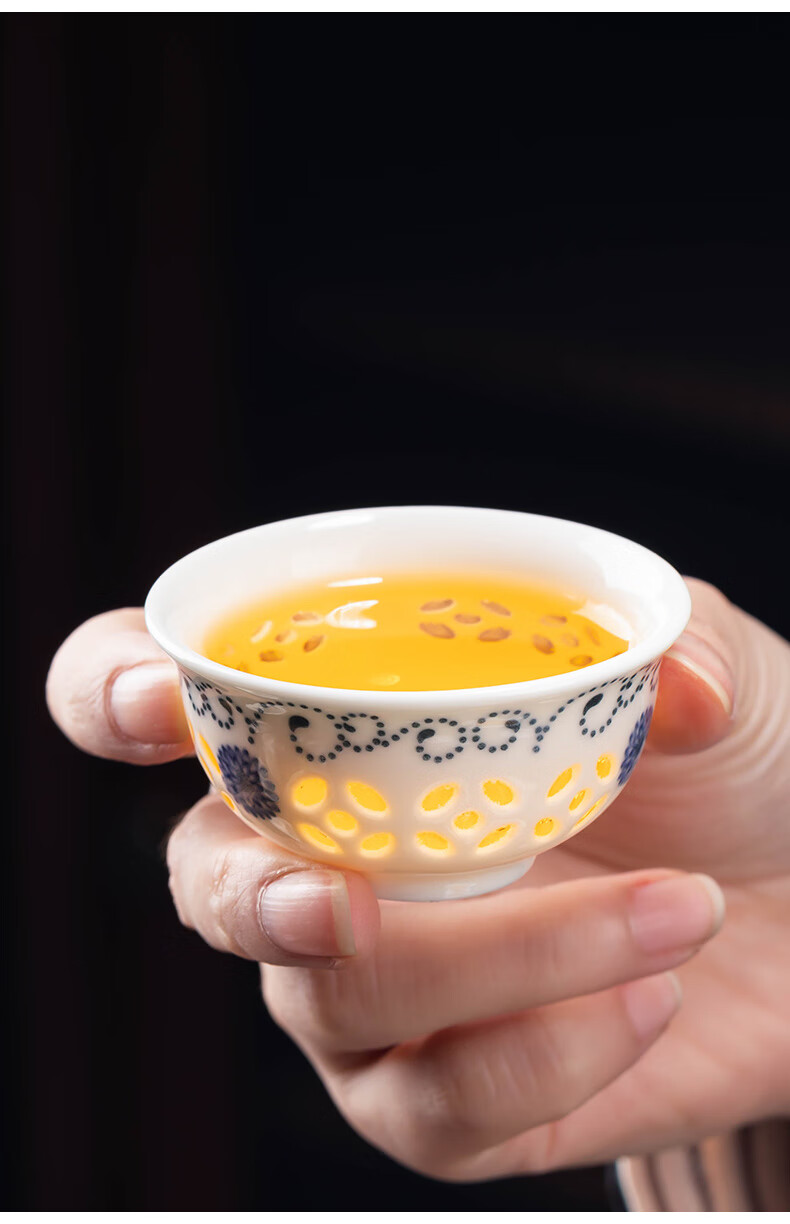 Craftsman's exquisite ceramic tea set complete set of honeycomb hollow tureen simple household kung fu small teapot office tea cup set 10-piece tureen set