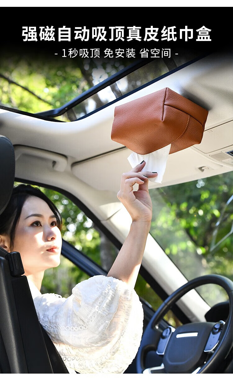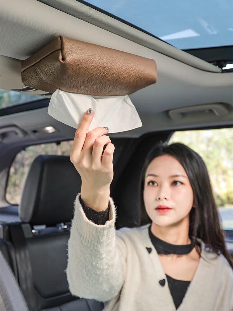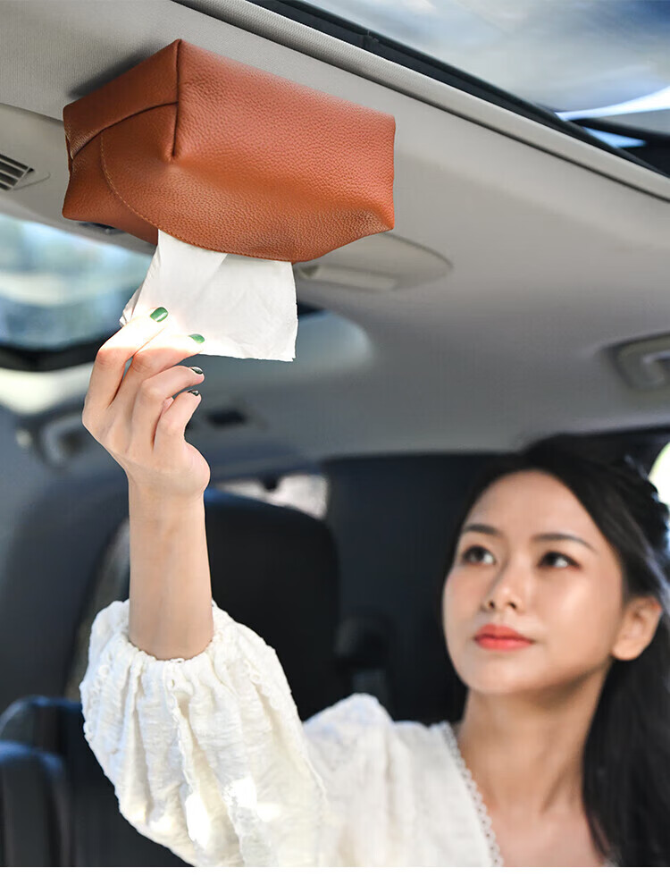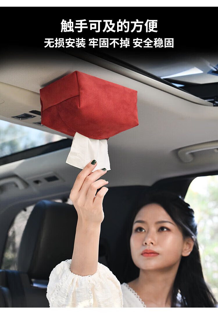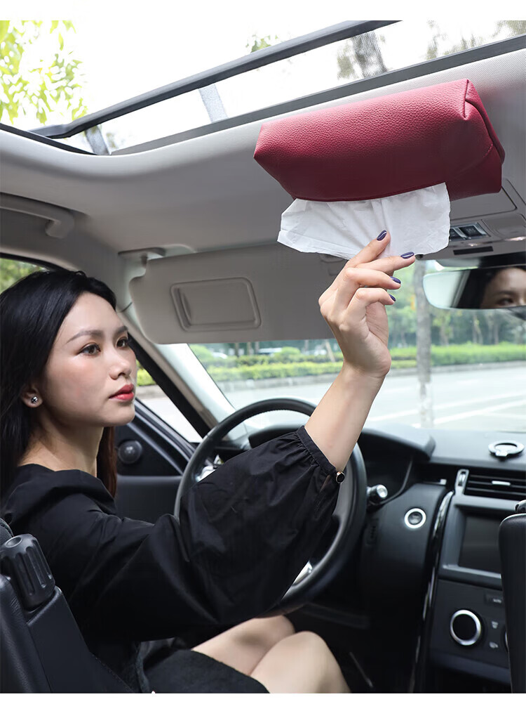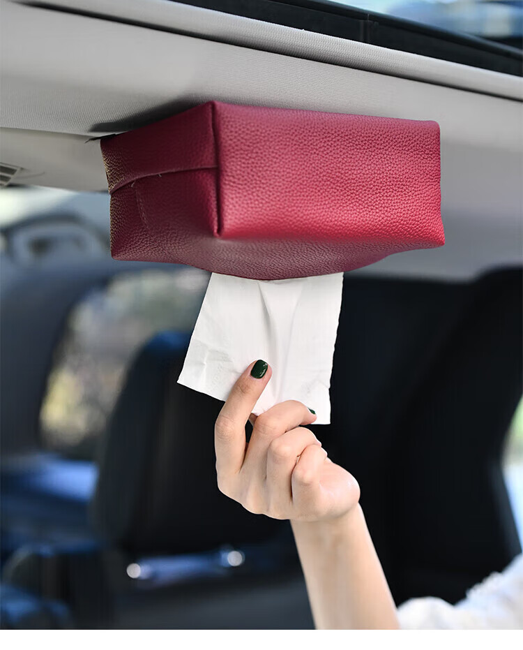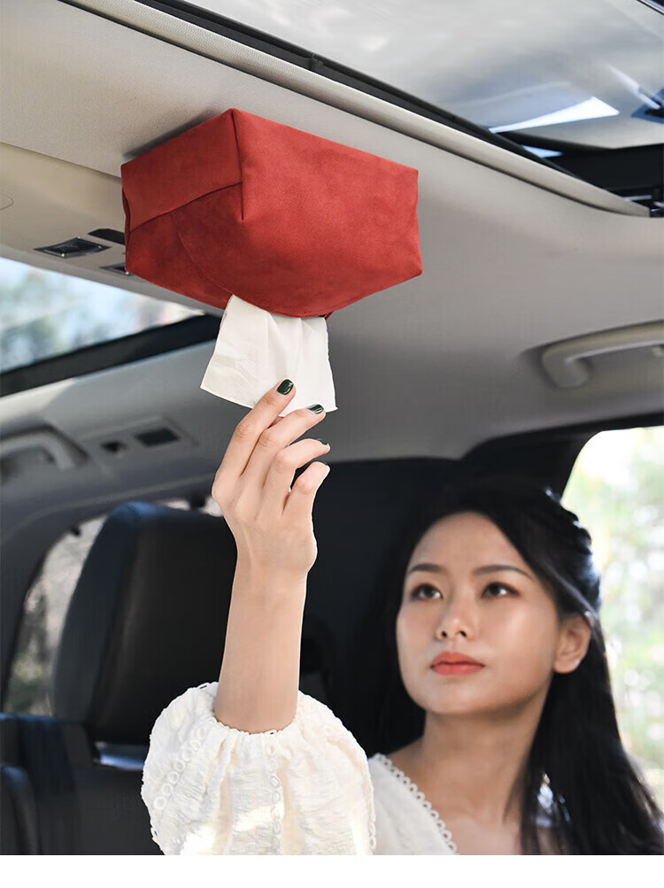 Runhua New Year's high-looking car roof tissue box magnetic car tissue box automatic ceiling car sunroof tissue box hanging car leather cherry red