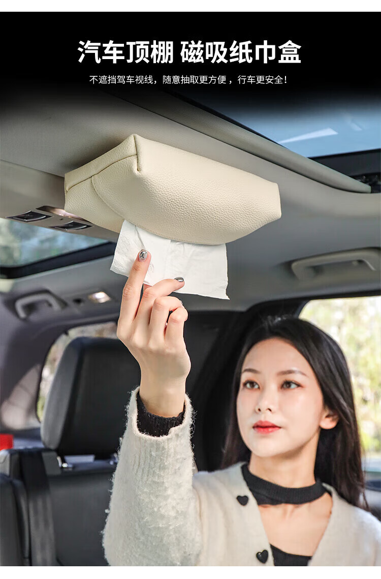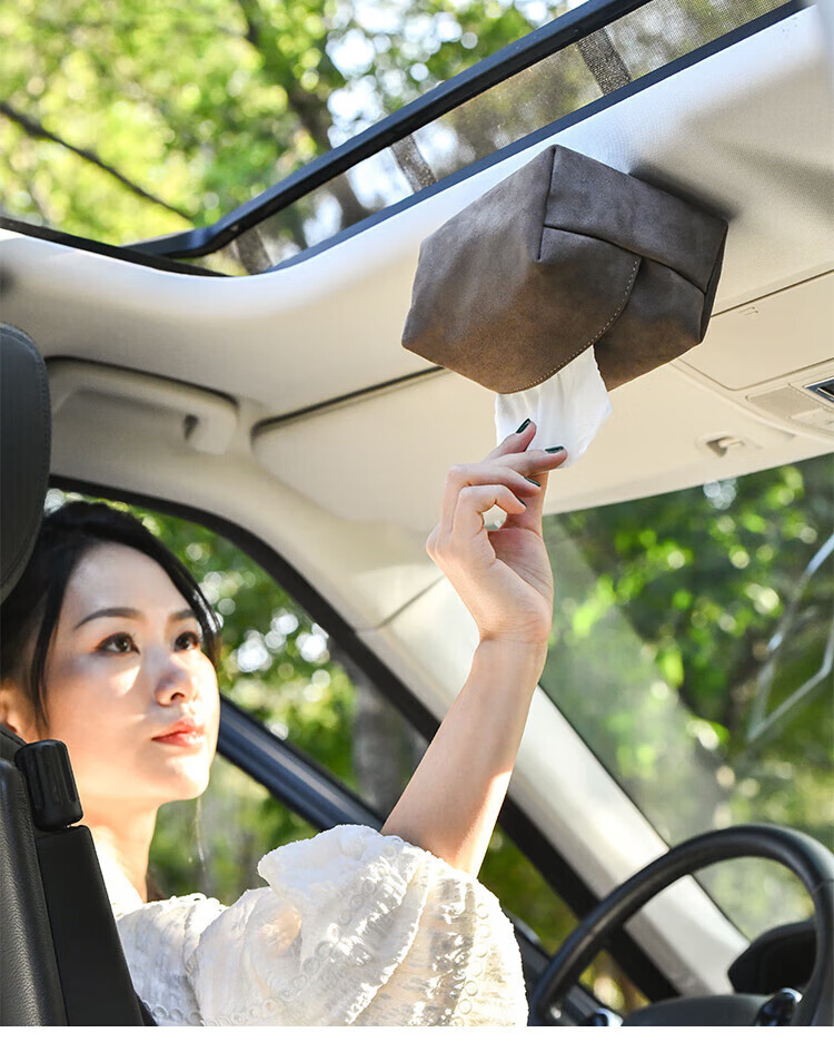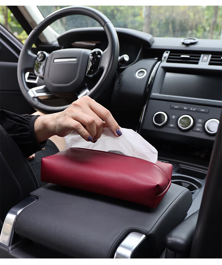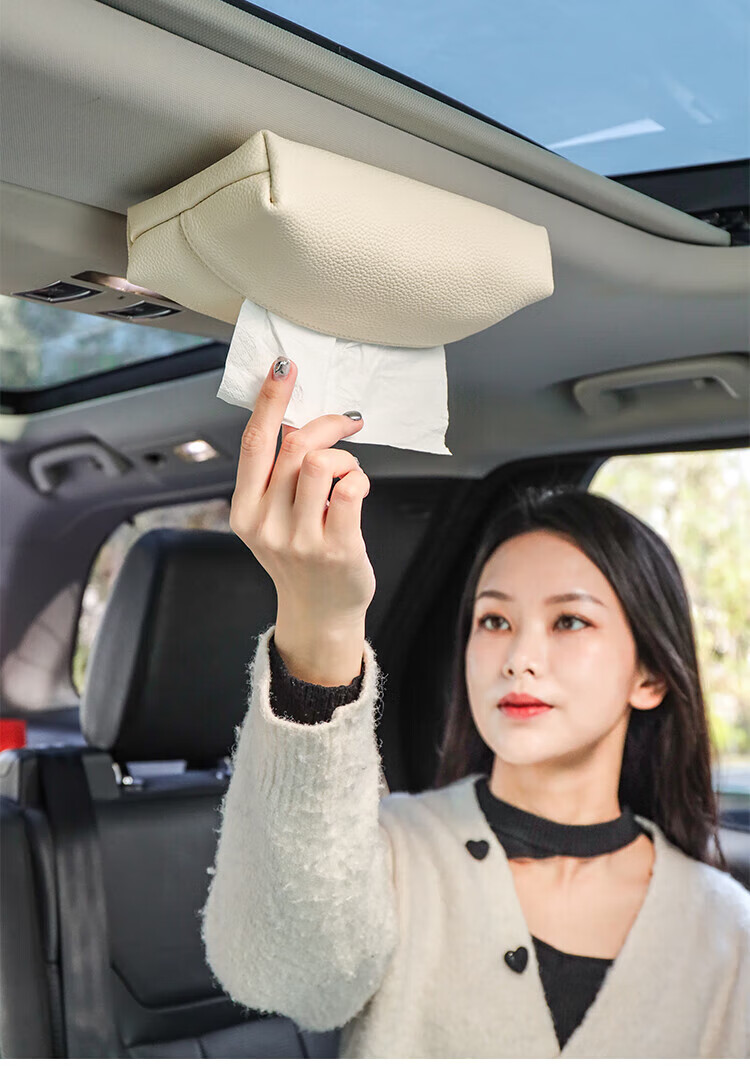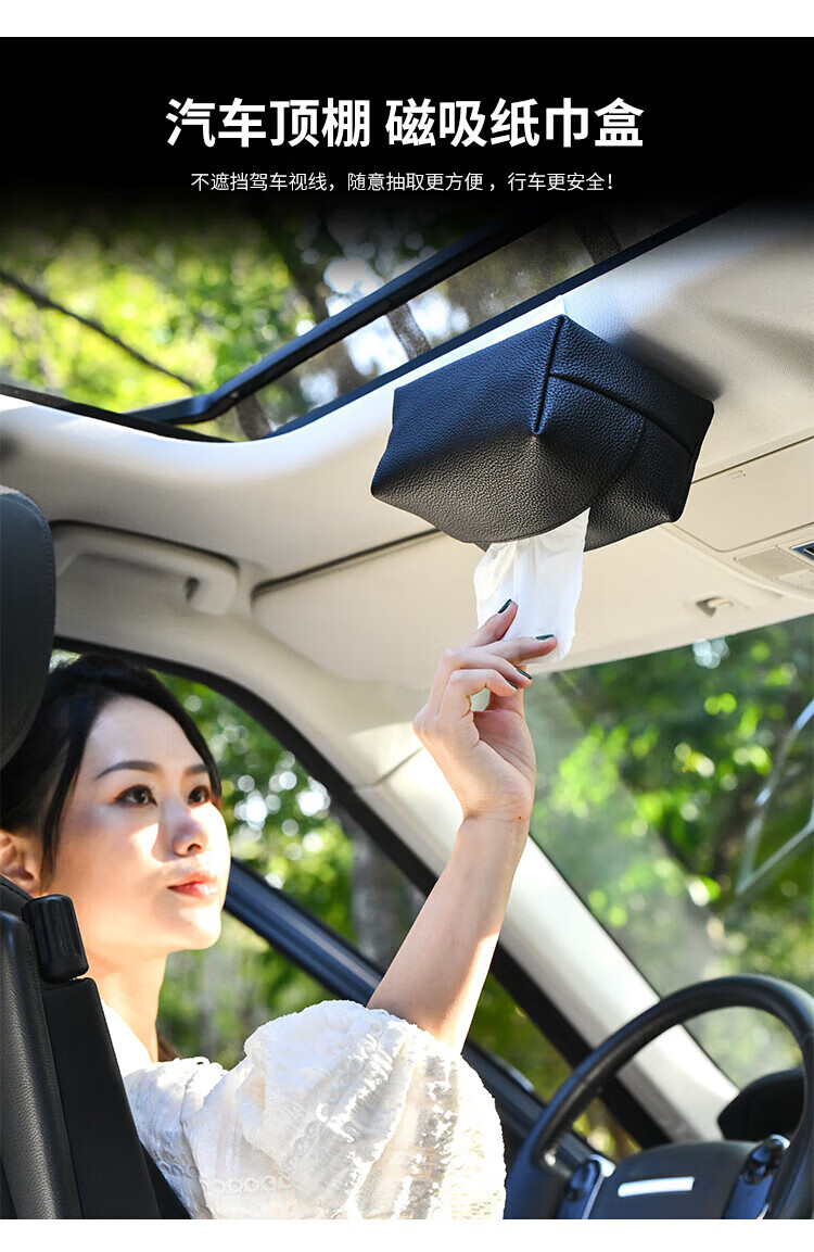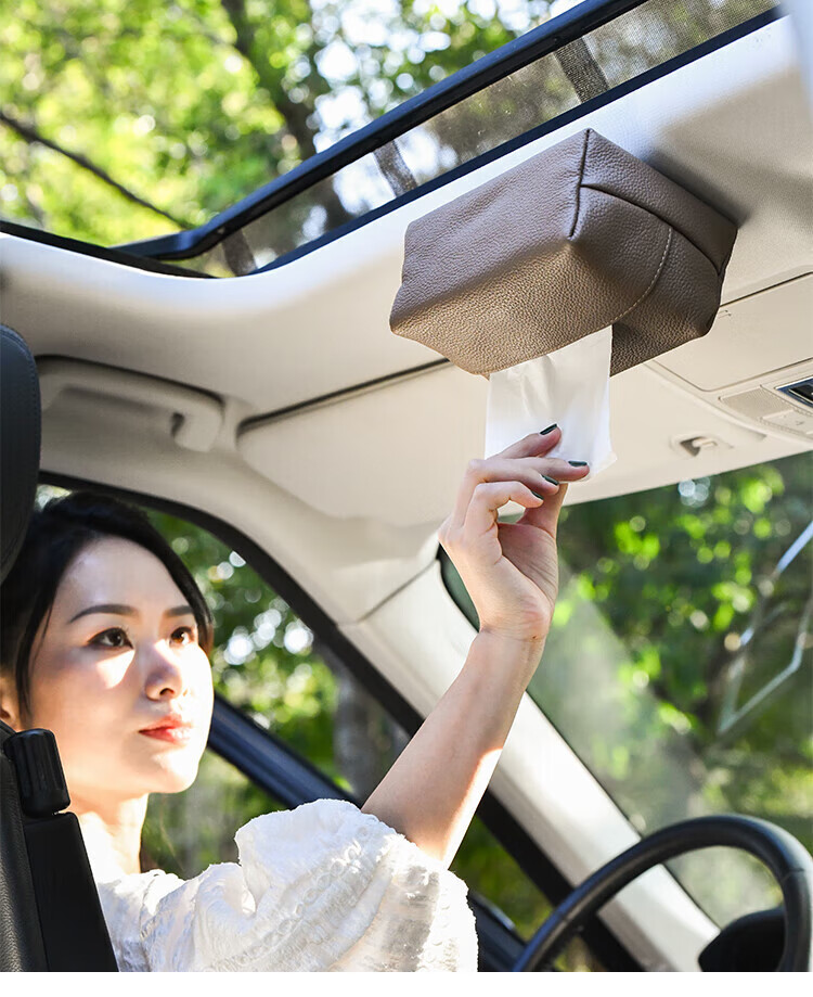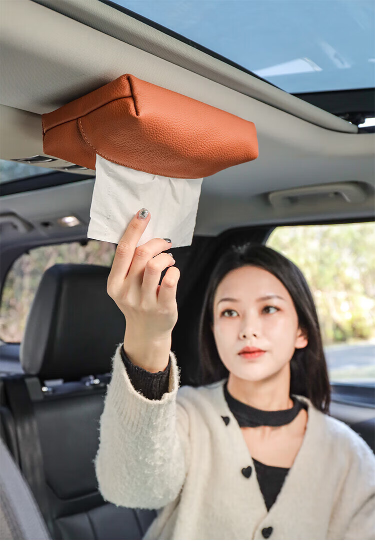 Runhua New Year's high-looking car roof tissue box magnetic car tissue box automatic ceiling car sunroof tissue box hanging car leather cherry red