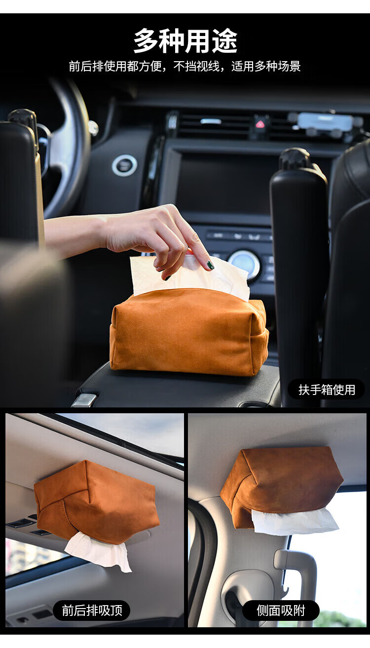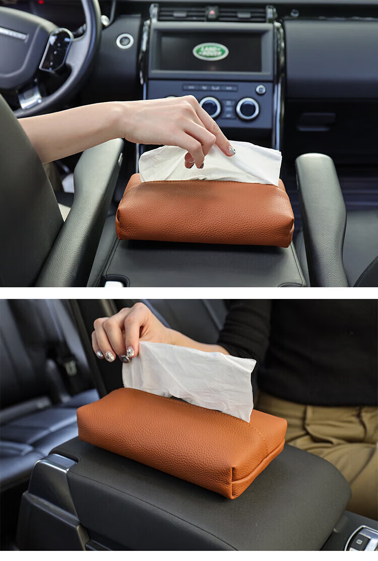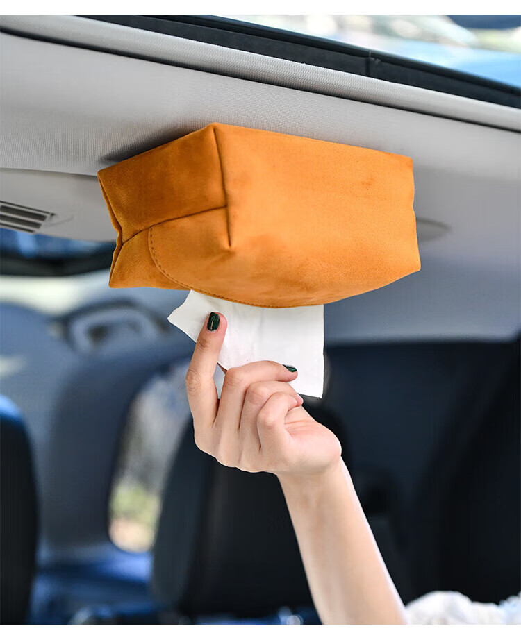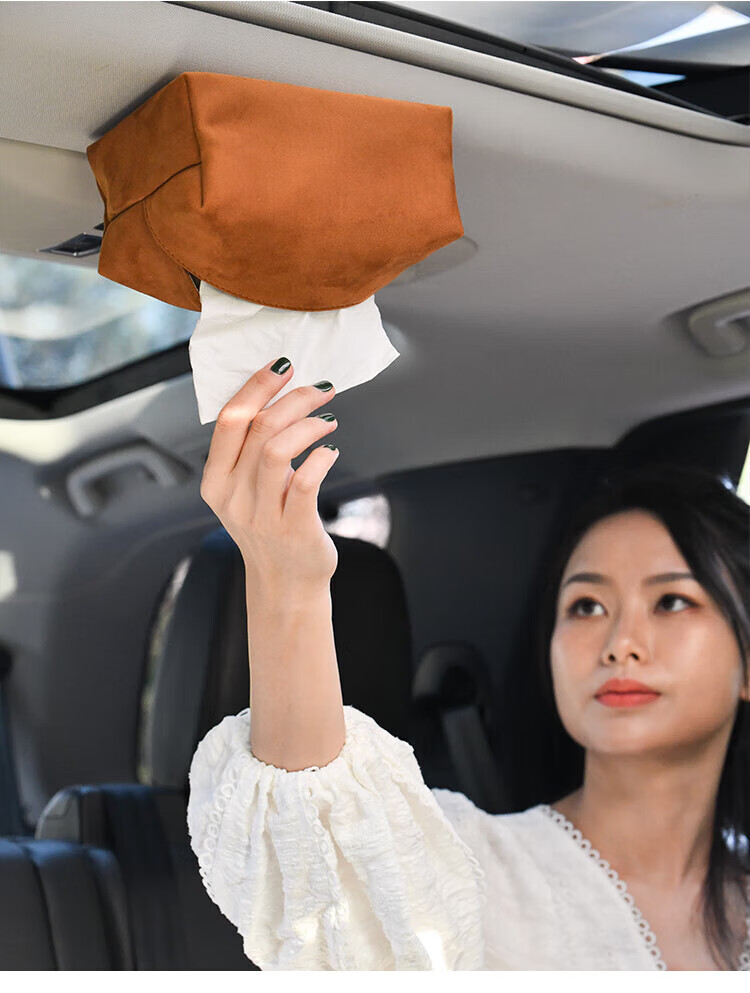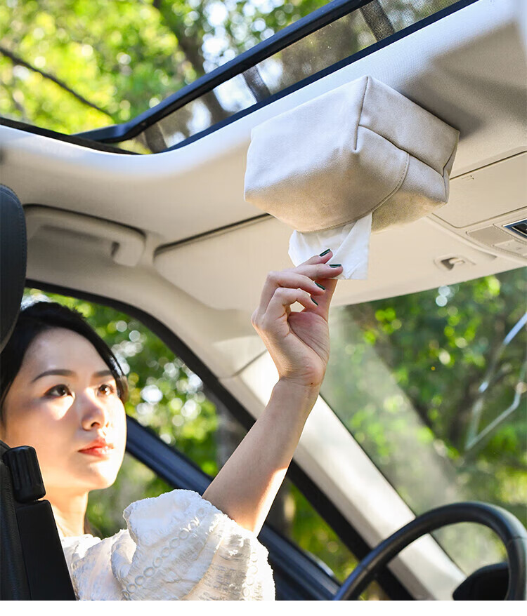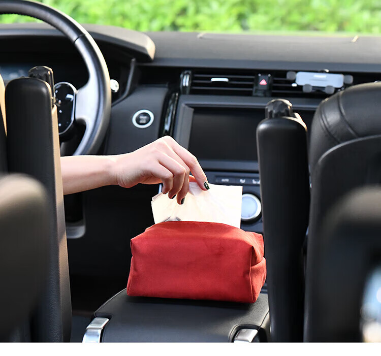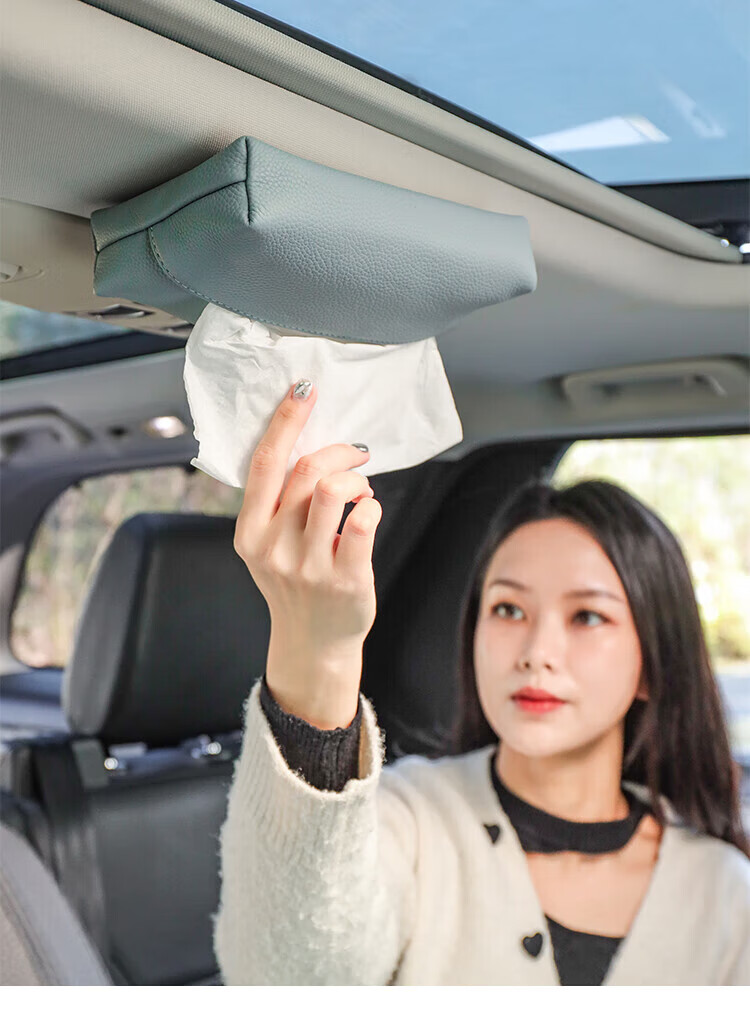 Runhua New Year's high-looking car roof tissue box magnetic car tissue box automatic ceiling car sunroof tissue box hanging car leather cherry red