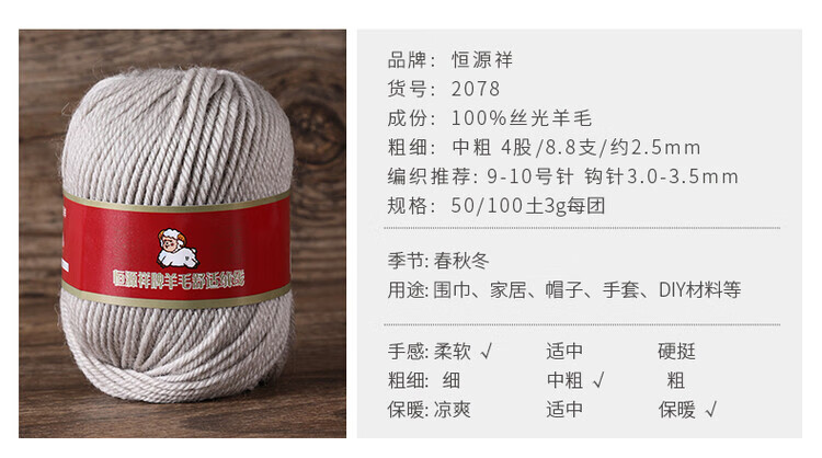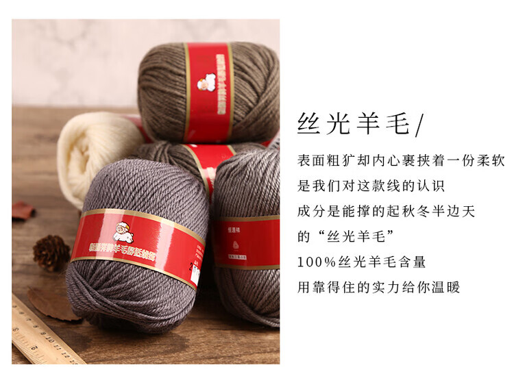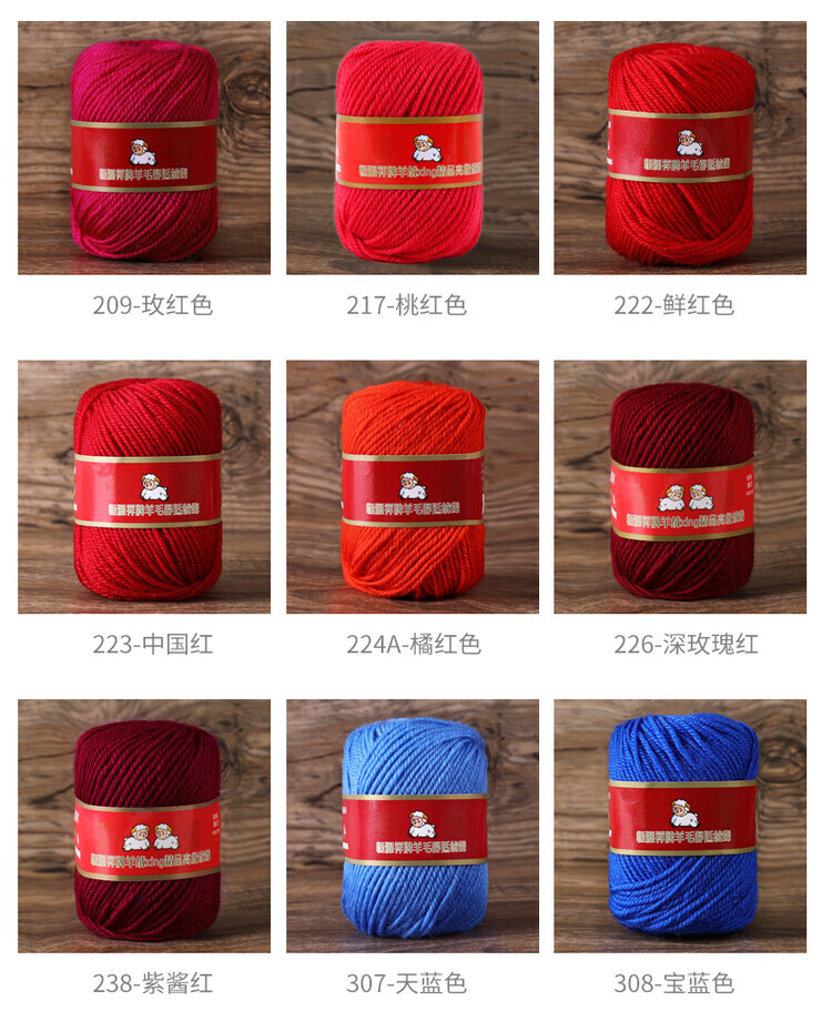 Hengyuanxiang genuine Hengyuanxiang wool thread hand-knitted sweater thread scarf diy medium thick 100% wool velvet thread ball 50g 226 dark rose red