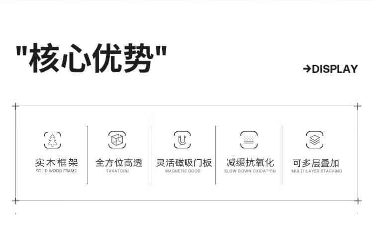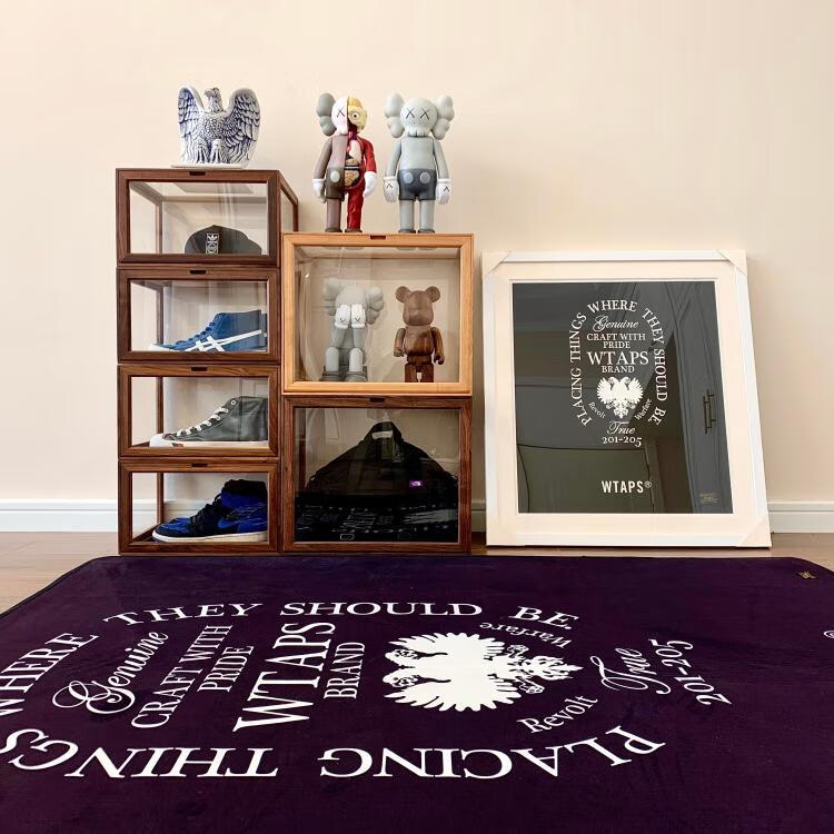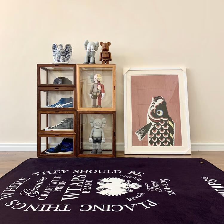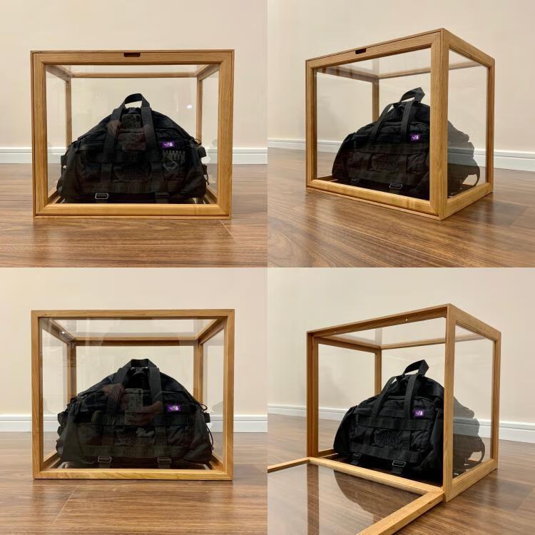 High-end solid wood figure display box Bubble Mart blind box model boots bag wooden transparent storage box North America cherry wood