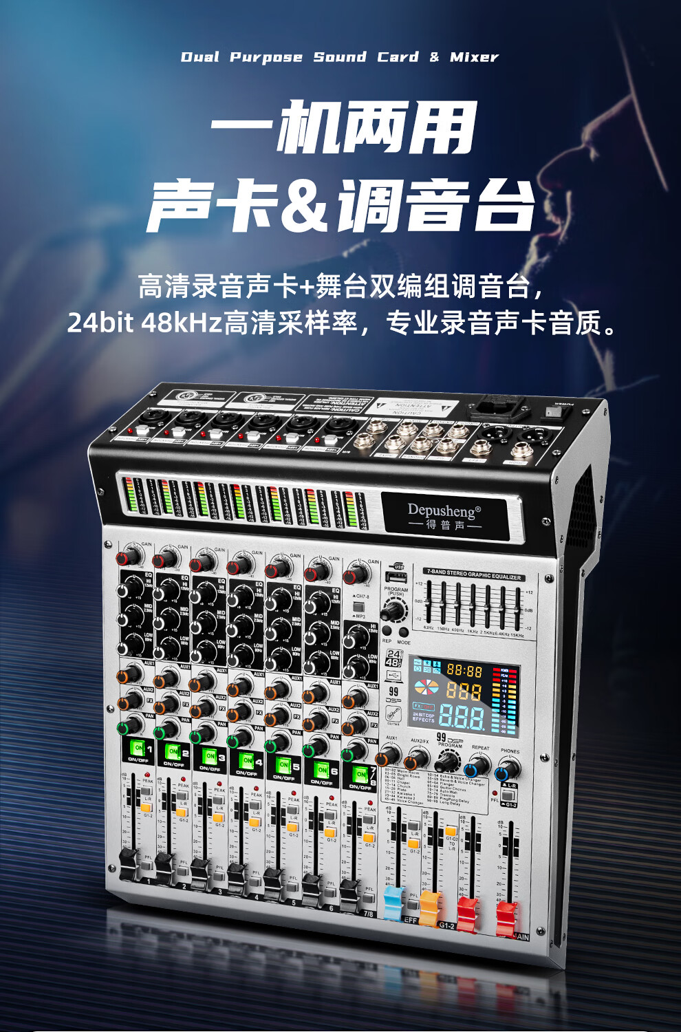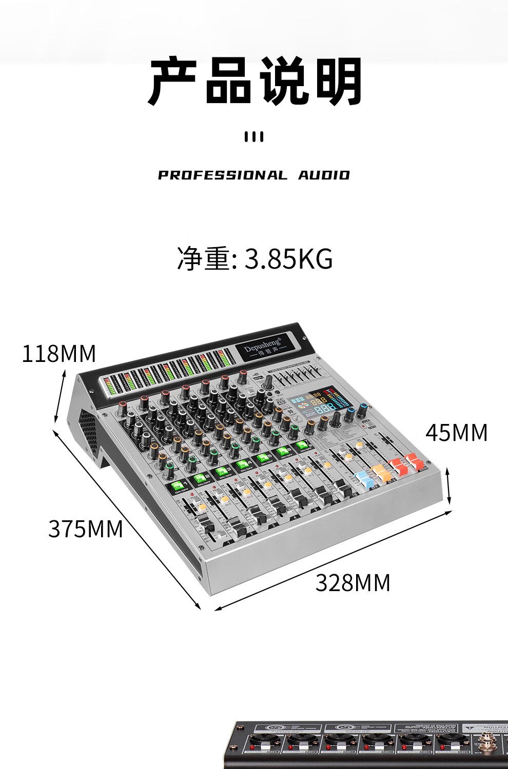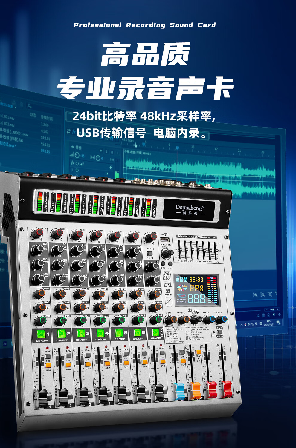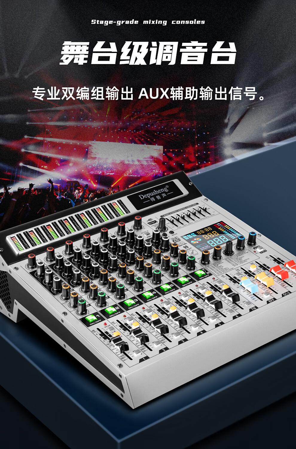 Depu Sheng TX-8 8-way group mixer, professional stage conference, wedding performance, family KTV singing, 99 digital reverb effects, USB computer internal recording, live broadcast, Bluetooth 192k 8-way mixer