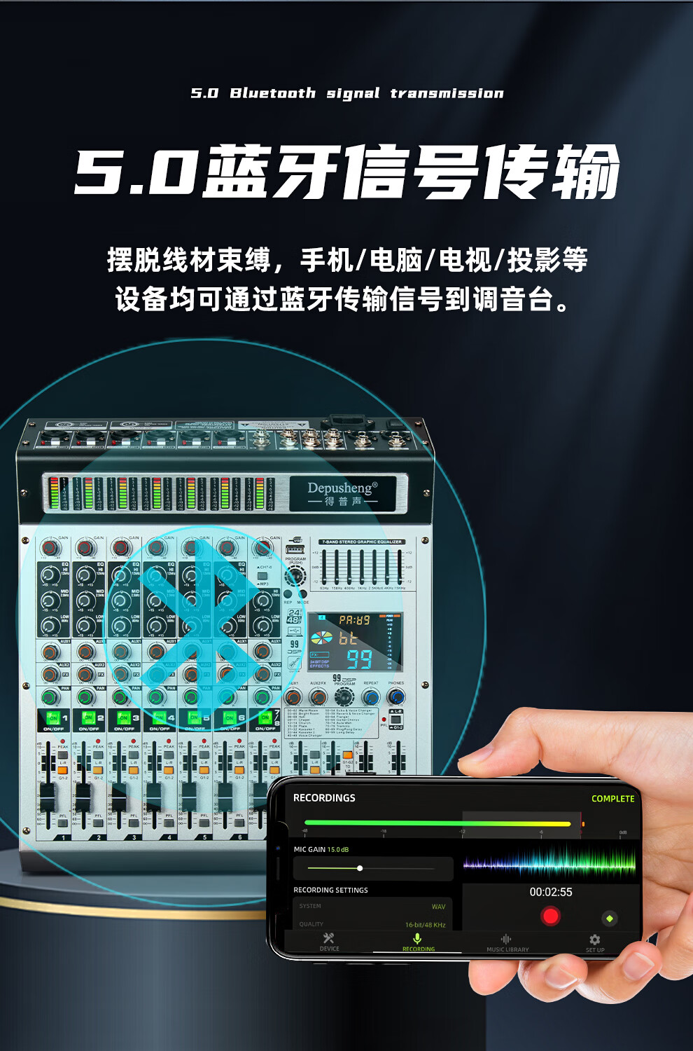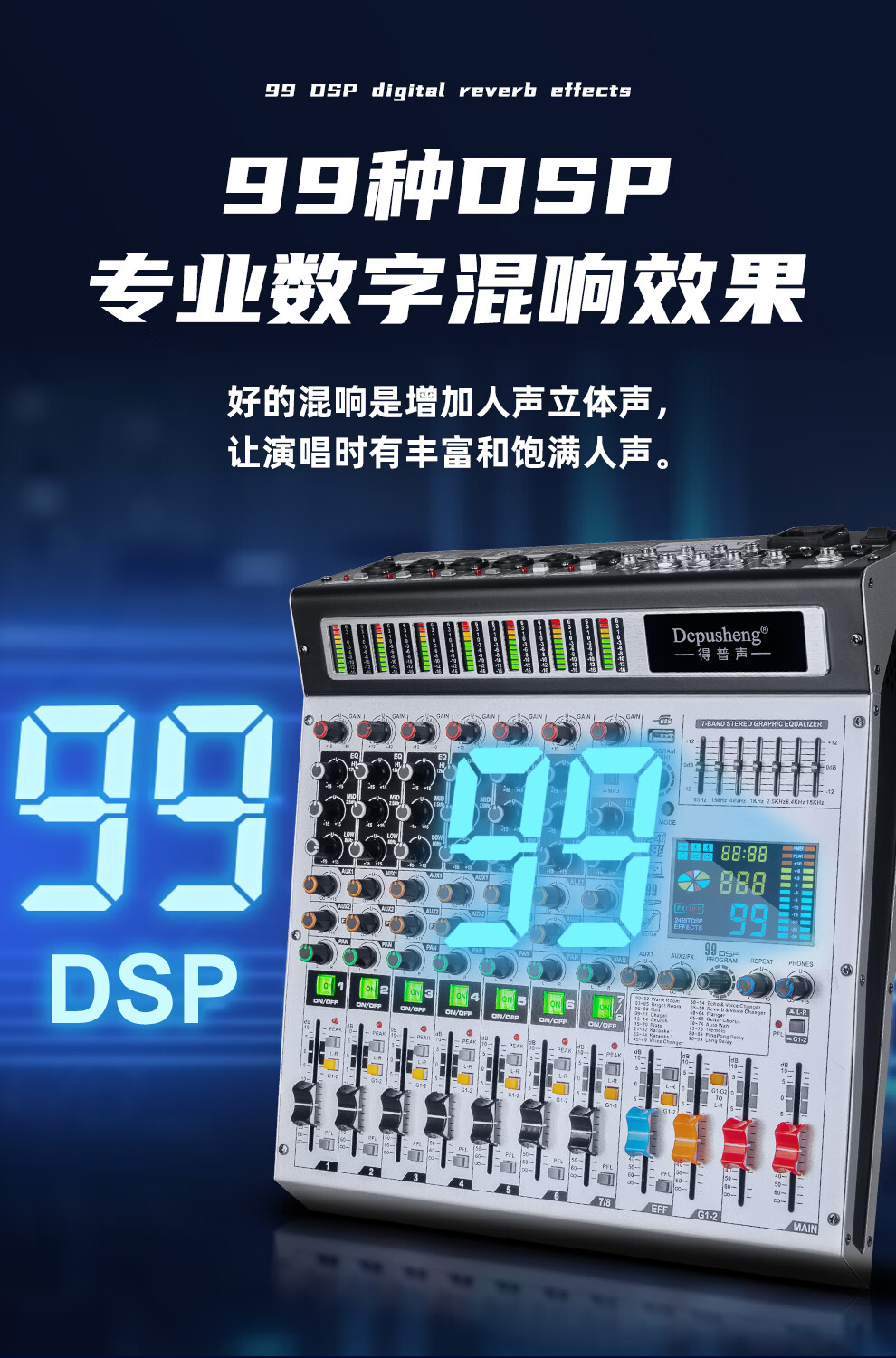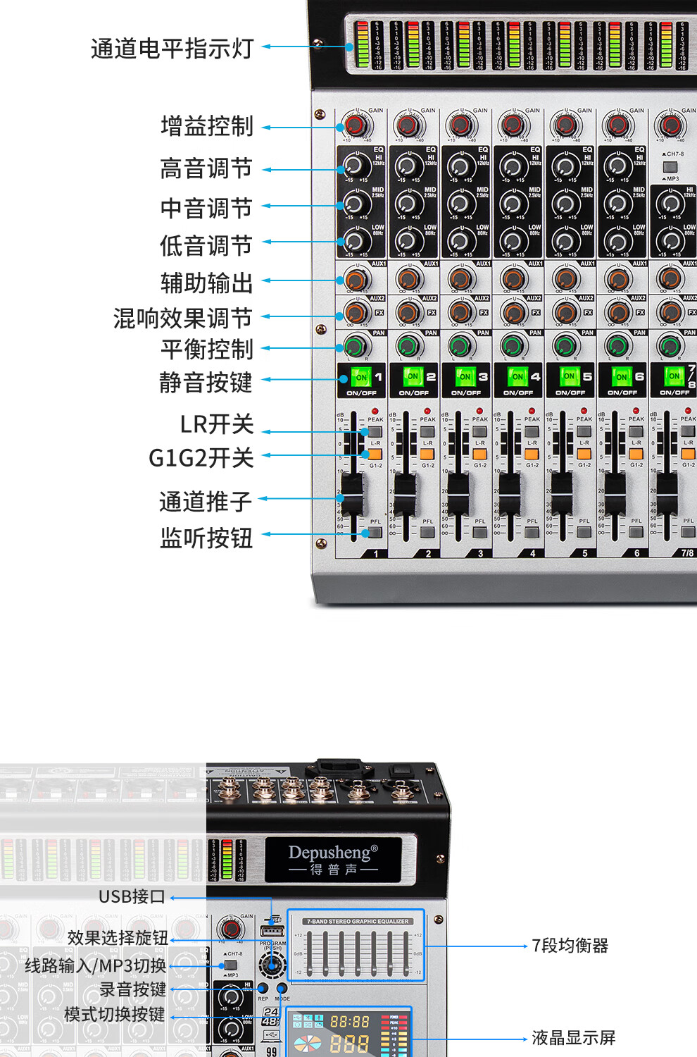 Depu Sheng TX-8 8-way group mixer, professional stage conference, wedding performance, family KTV singing, 99 digital reverb effects, USB computer internal recording, live broadcast, Bluetooth 192k 8-way mixer