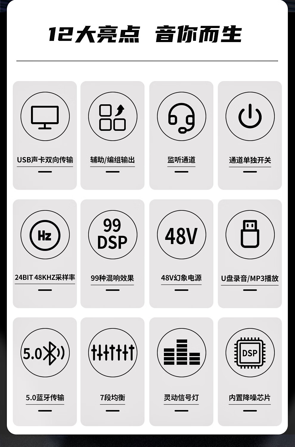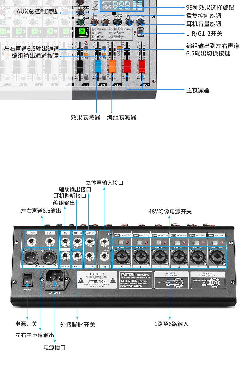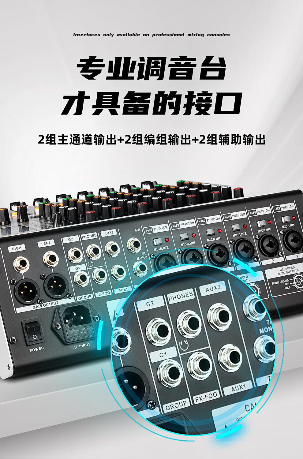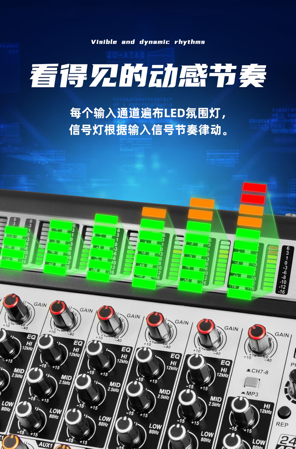 Depu Sheng TX-8 8-way group mixer, professional stage conference, wedding performance, family KTV singing, 99 digital reverb effects, USB computer internal recording, live broadcast, Bluetooth 192k 8-way mixer