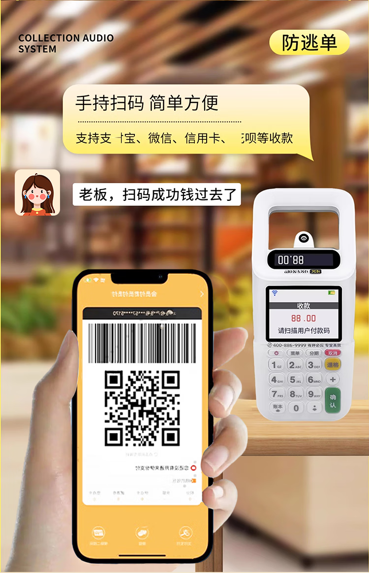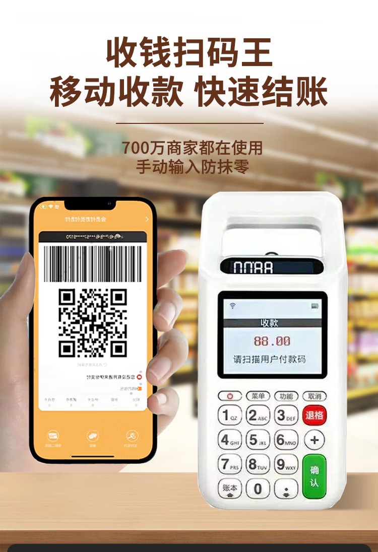 Collect Money New 4G Handheld Portable Cash Register Scan QR Code to Pay QR Code UnionPay Payment Cash Register Box 24 Years New Scan Code King 4G Version