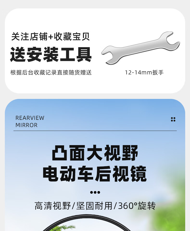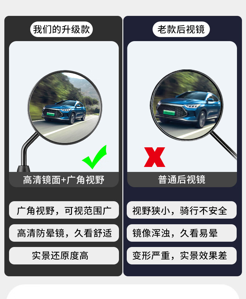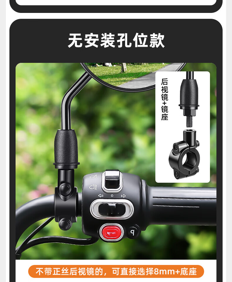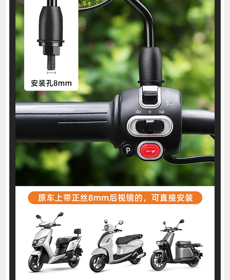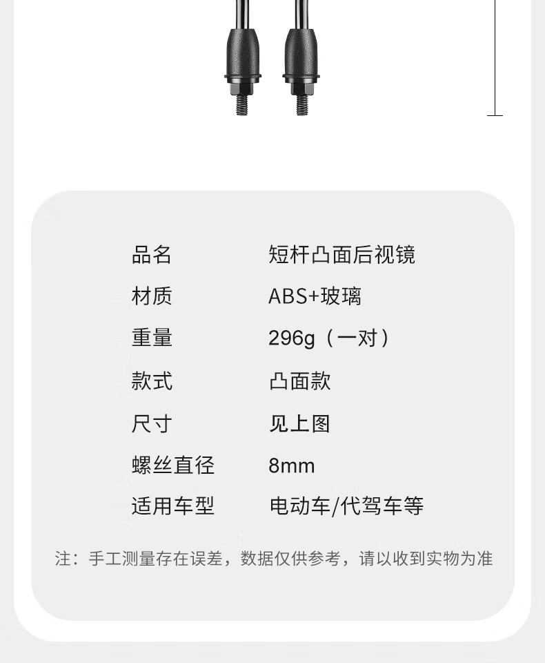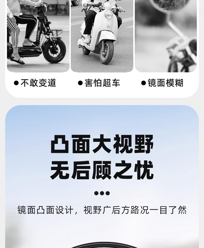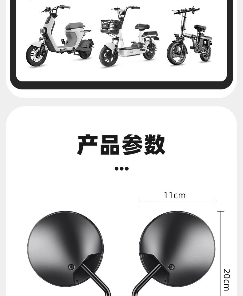 Panyuan battery bicycle reflector electric vehicle rearview mirror Yadi Emma short pole tram universal rear reversing mirror short pole round convex rearview mirror pair