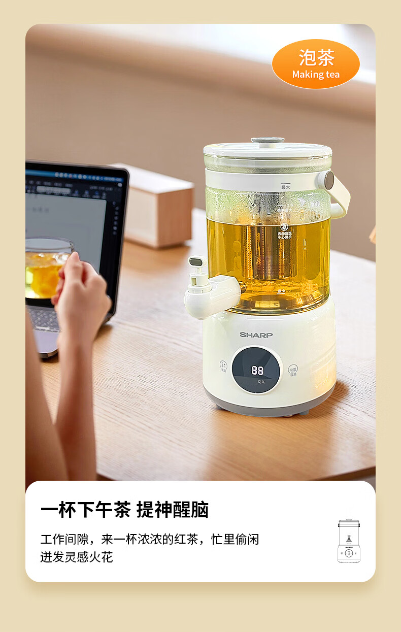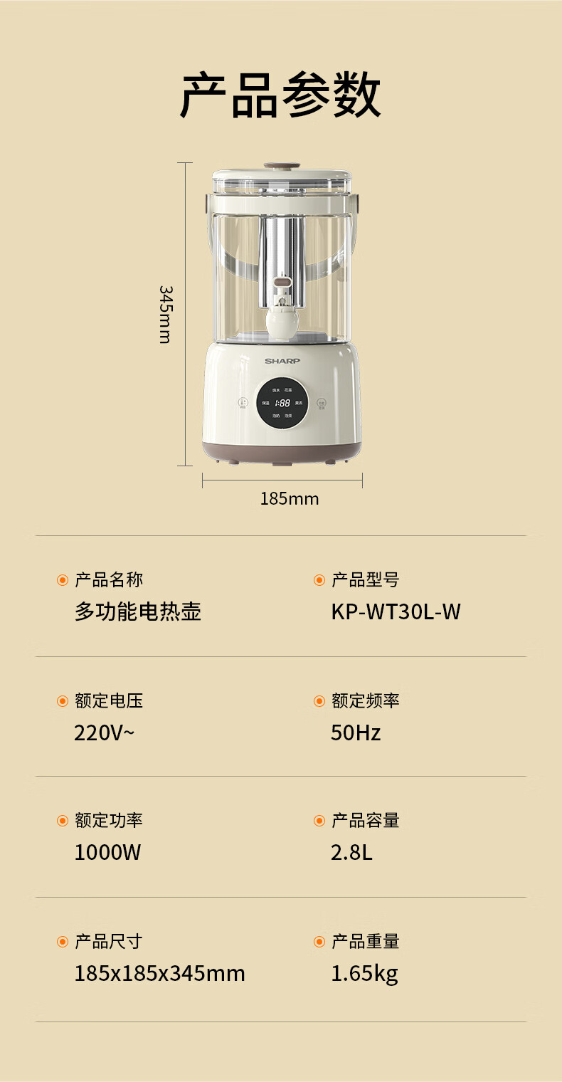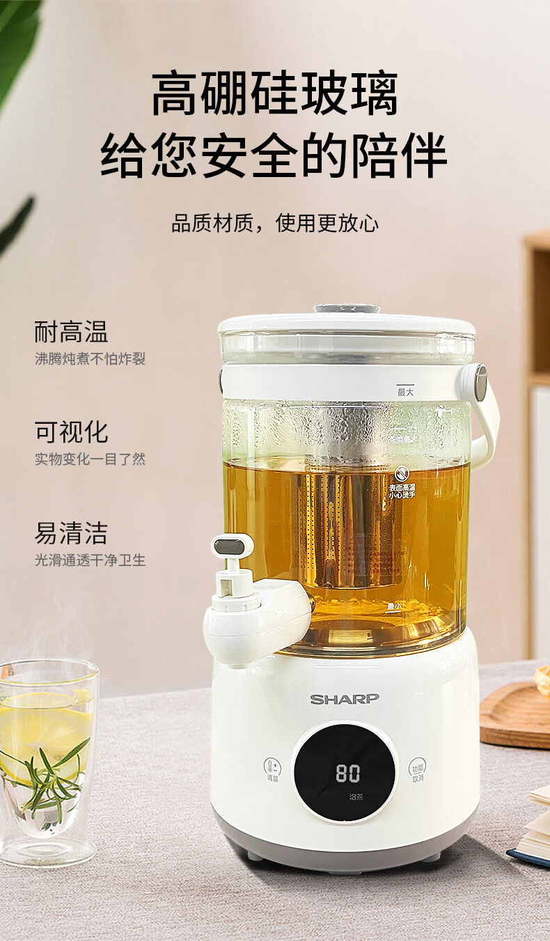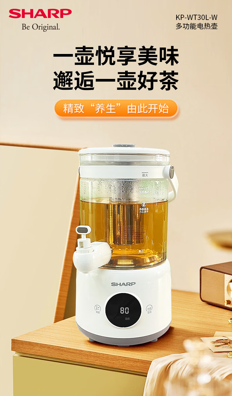 Sharp multifunctional electric kettle health kettle 2.8L large capacity kettle scented tea fruit tea tea kettle KP-WT30L-W white 2.8L