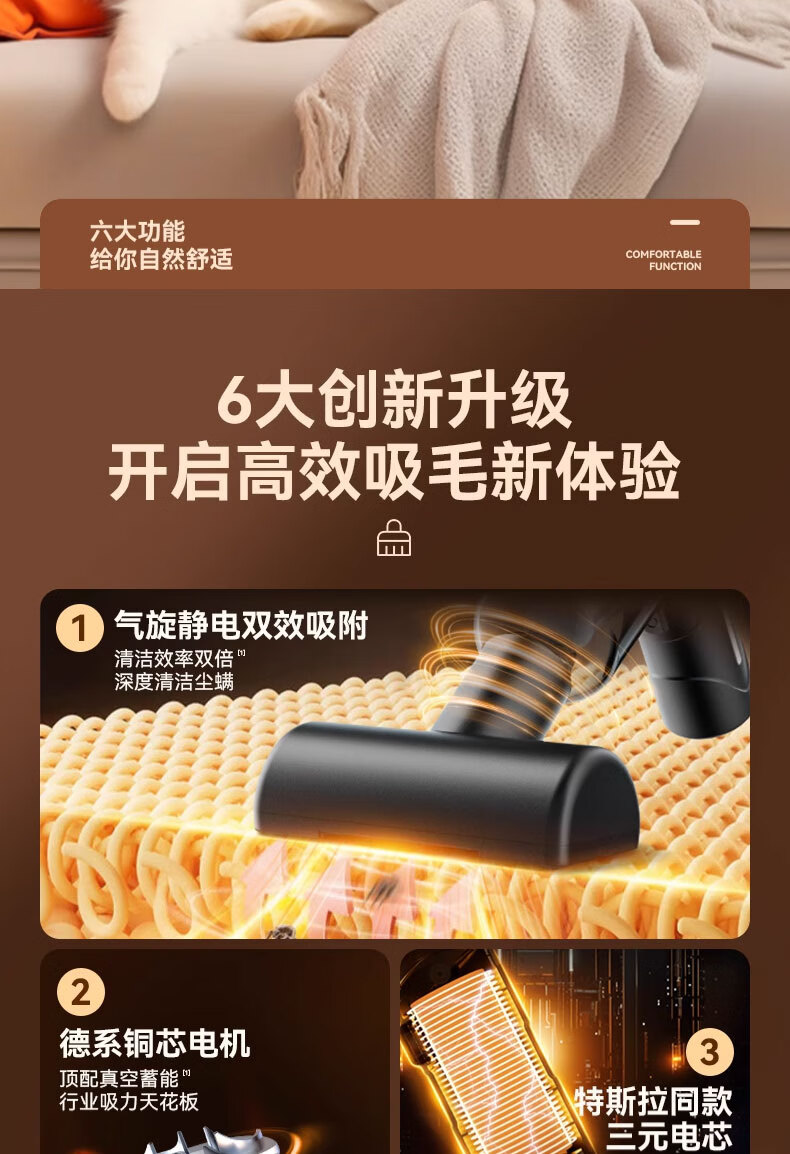 Pet hair cleaner, cat and dog hair removal and sticky hair artifact, automatic wireless vacuum cleaner, bed carpet cleaner 1 upgraded model 39000R speed
