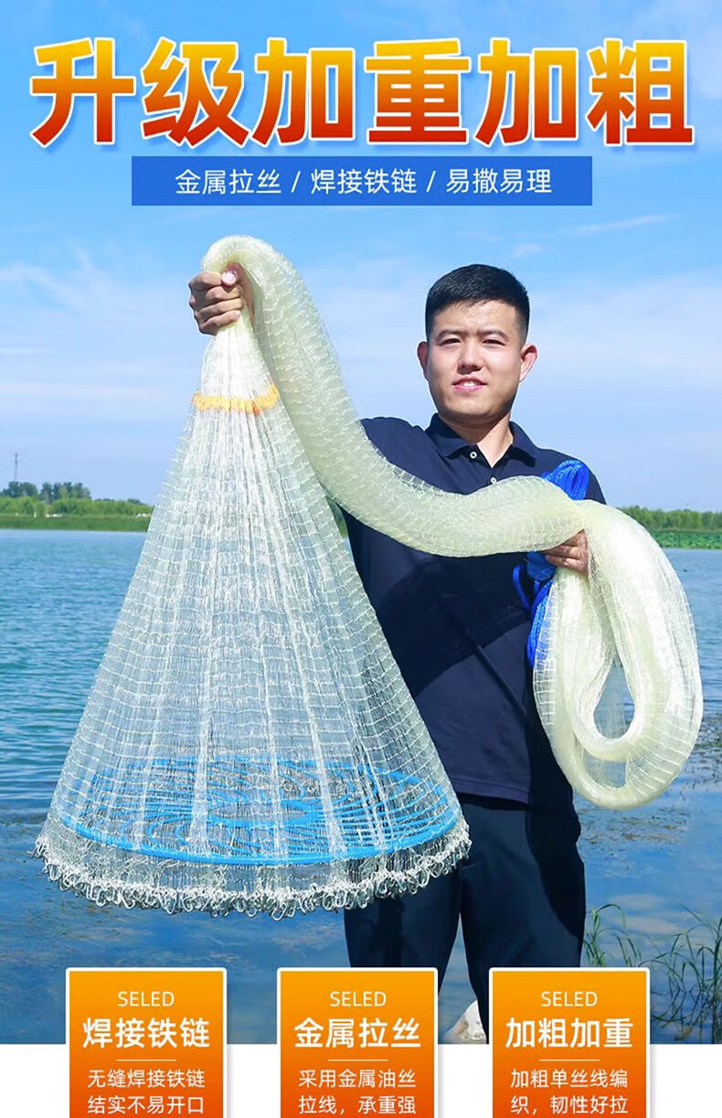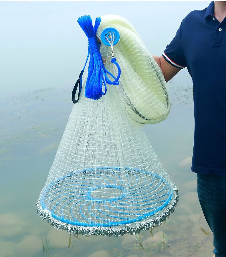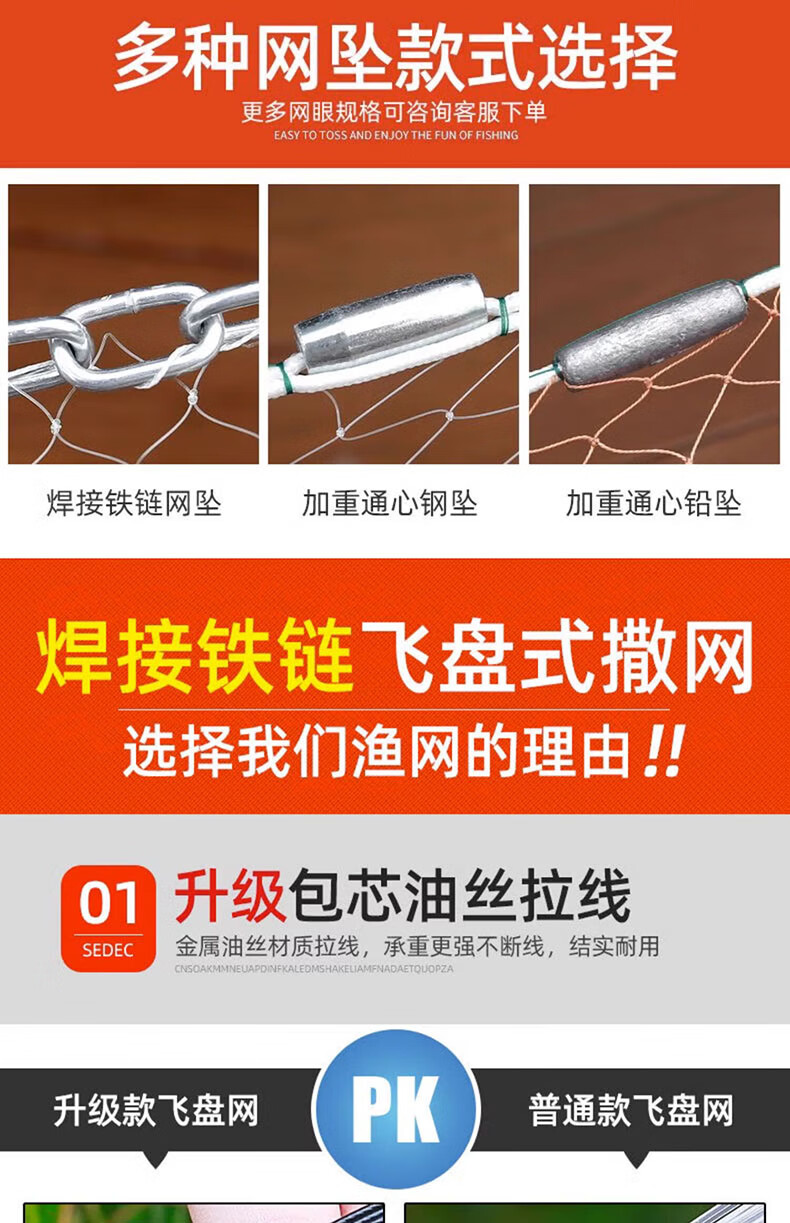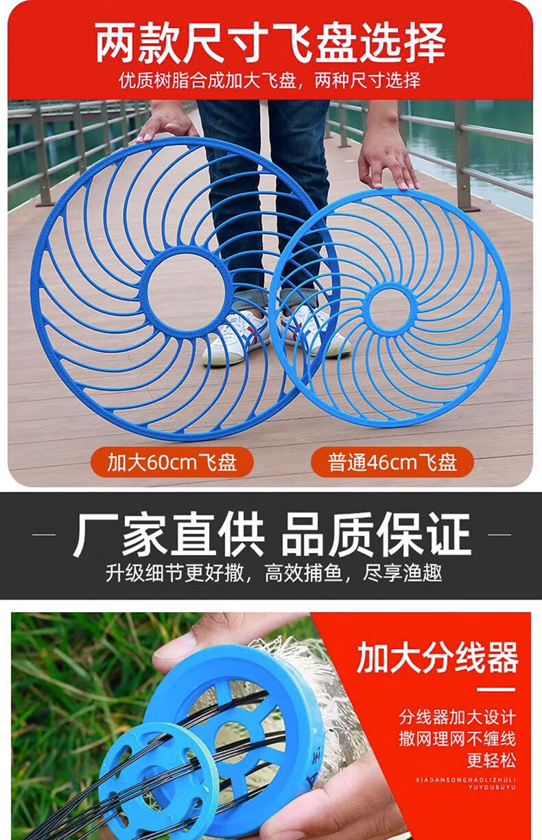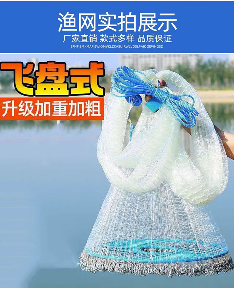 Fishing class bamboo cast net large flying disc type hand thrown net core-covered steel wire rope thickened weighted disc hand cast net fish net spin net cast fish net 2-finger No. 4 fishing line 600 type core-covered steel wire drawing
