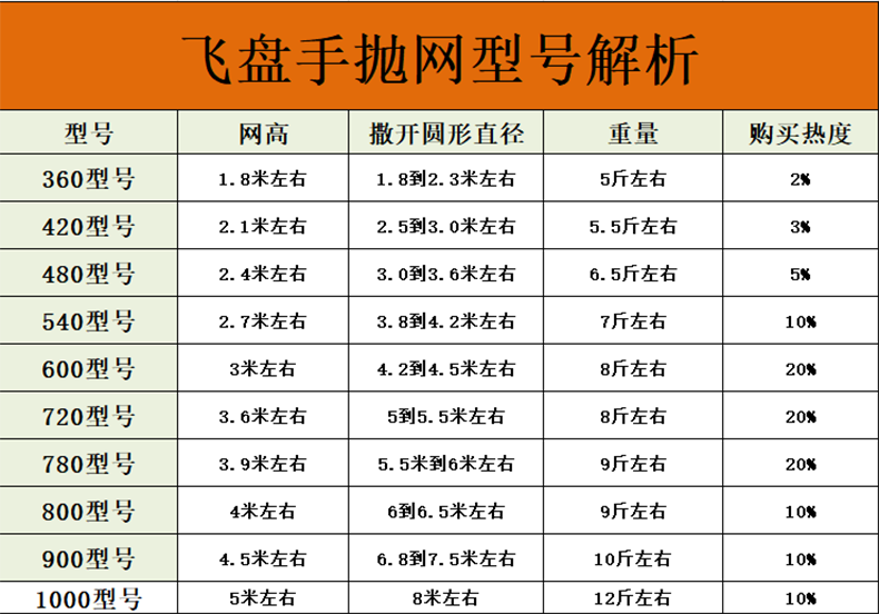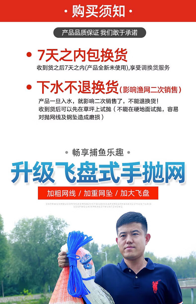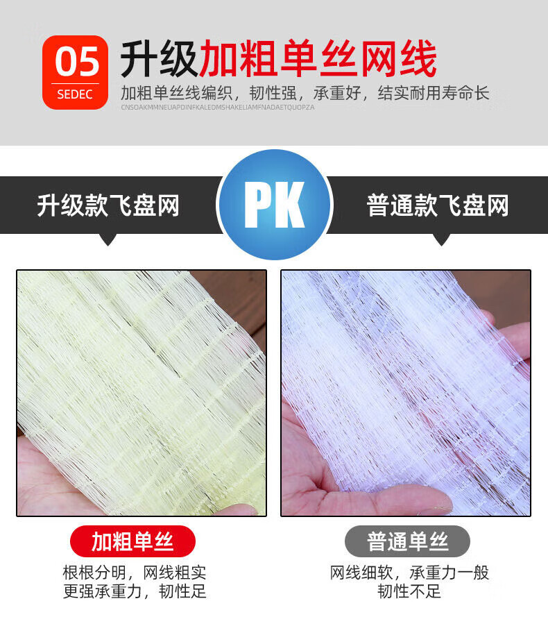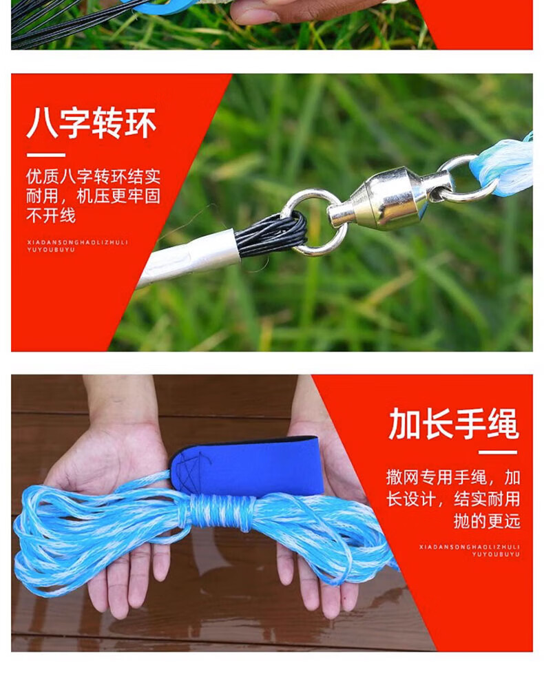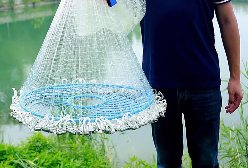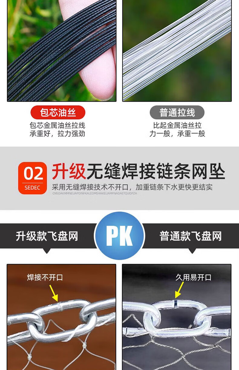 Fishing class bamboo cast net large flying disc type hand thrown net core-covered steel wire rope thickened weighted disc hand cast net fish net spin net cast fish net 2-finger No. 4 fishing line 600 type core-covered steel wire drawing