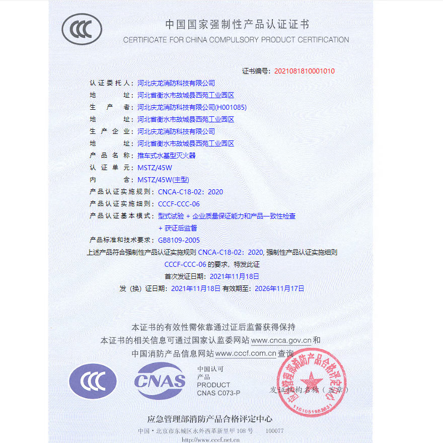 Canal trolley-type water-based fire extinguisher MSTW/ABE45 units