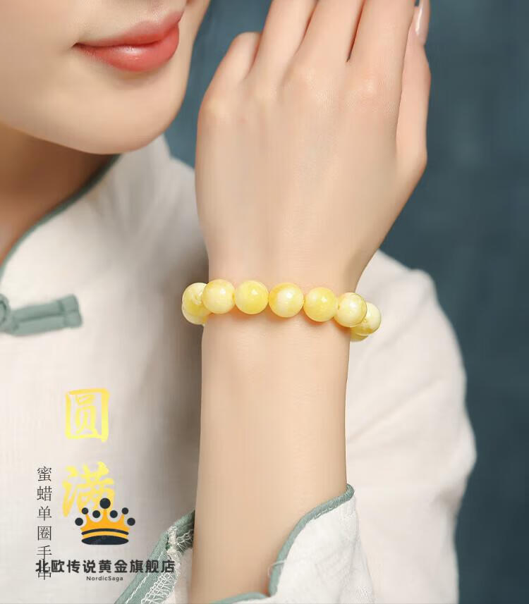 Fat Donglai same style beeswax bracelet chicken fat yellow new white flower honey bracelet men and women amber old white flower honey single circle bracelet 20mm*12 pieces