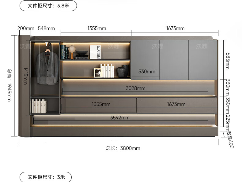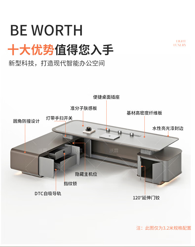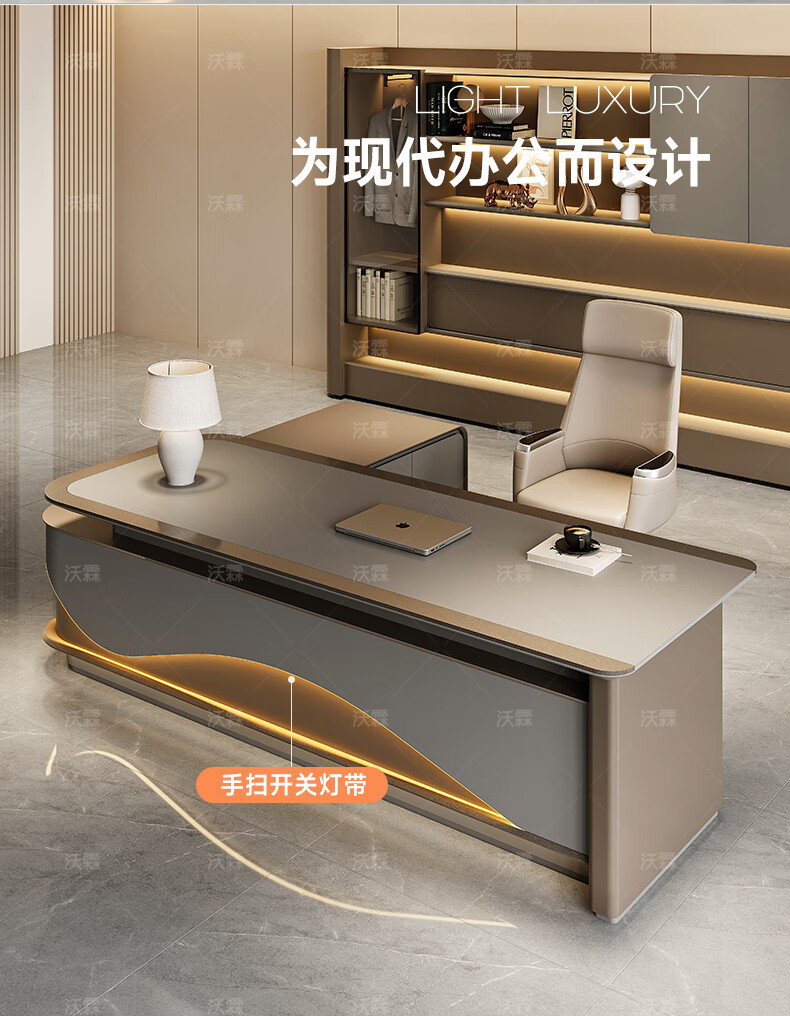 Wolin E0 level environmentally friendly light luxury boss desk desk simple modern desk and chair combination president desk high-end boss desk 2.2 meters single cabinet-boss desk