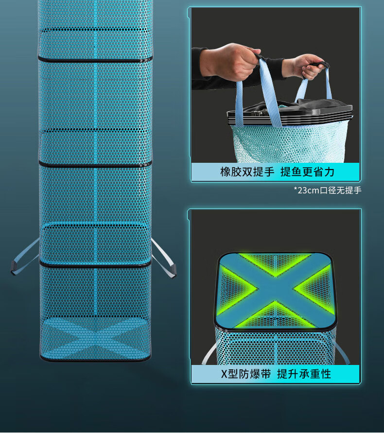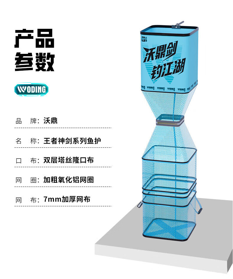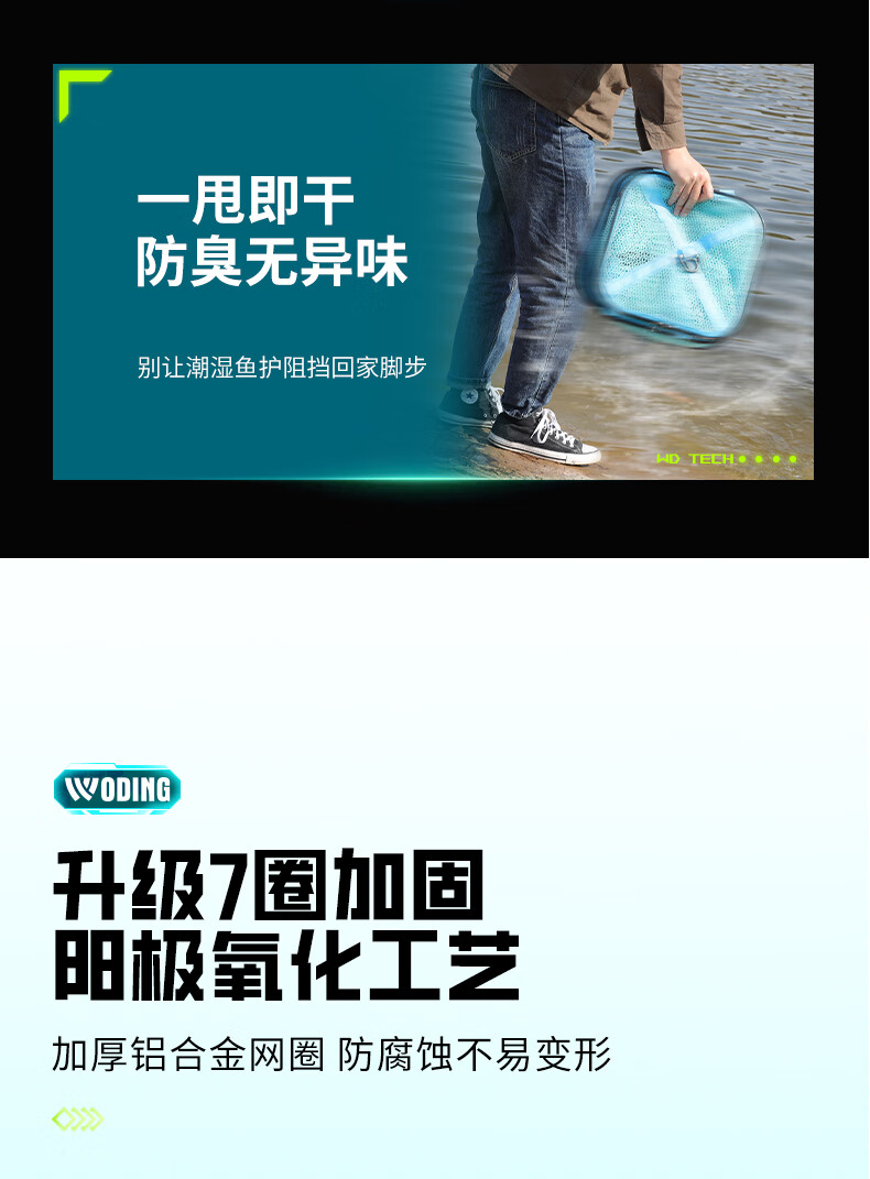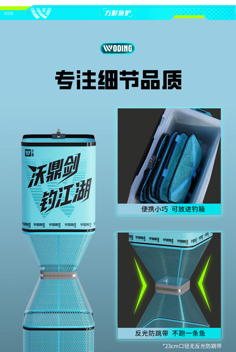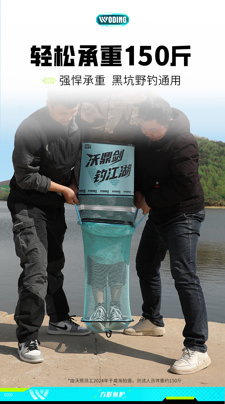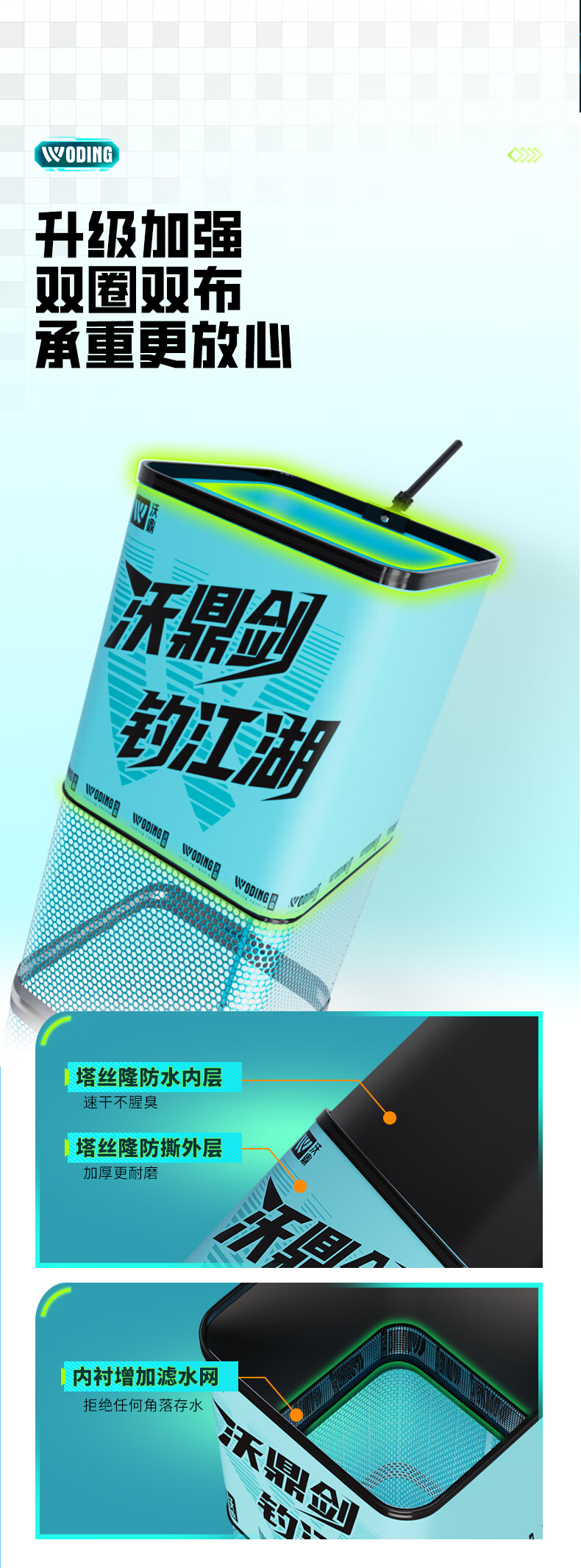 Woding fish guard wild fishing black pit thickened quick-drying square fishing net bag small portable folding new high-end alloy ring mouth 32cm 2.5m square enlarged fish guard (with bag)