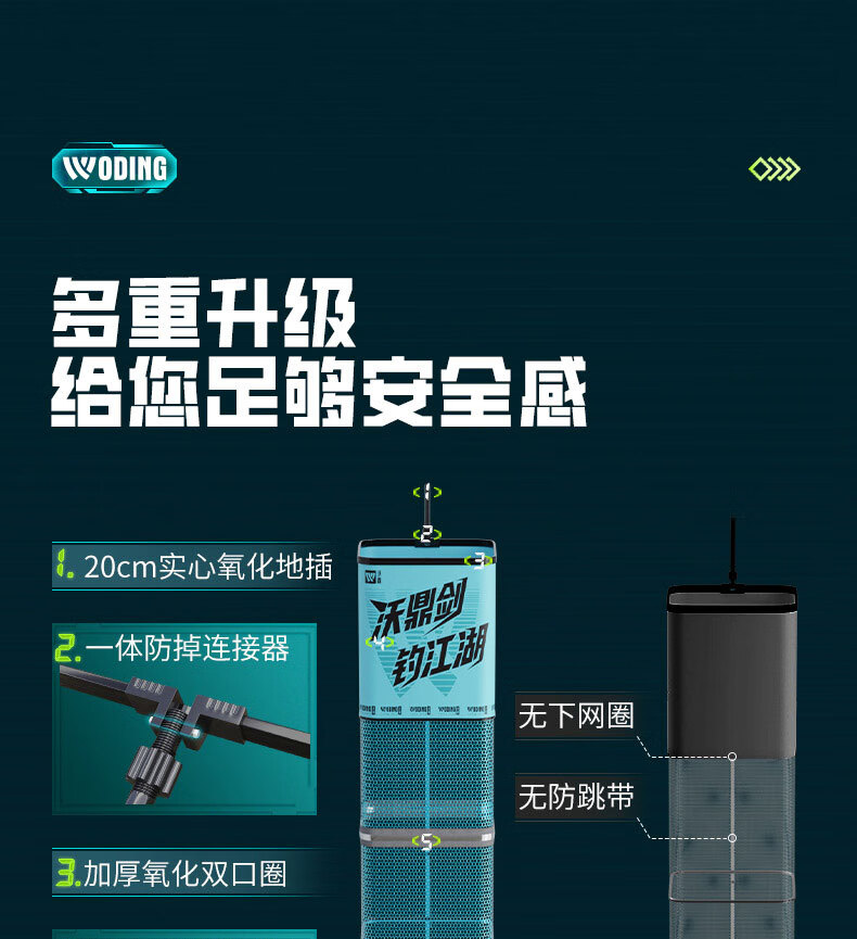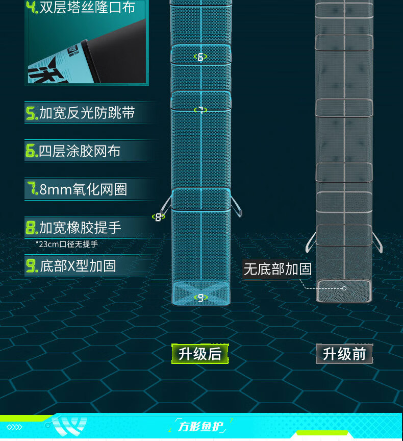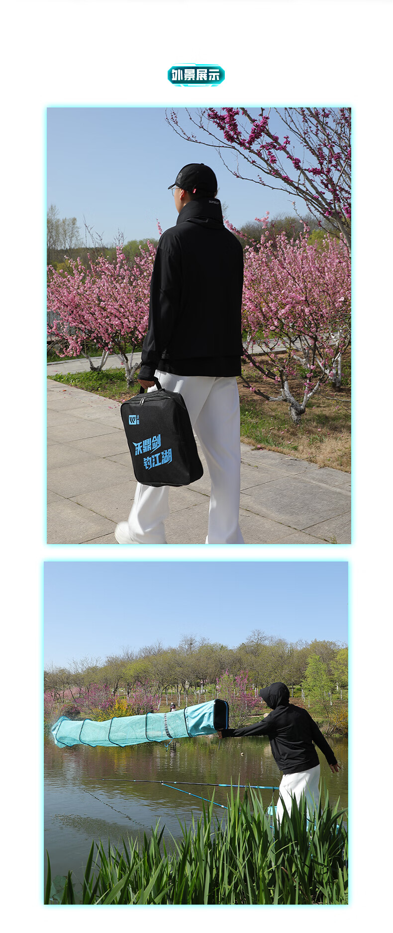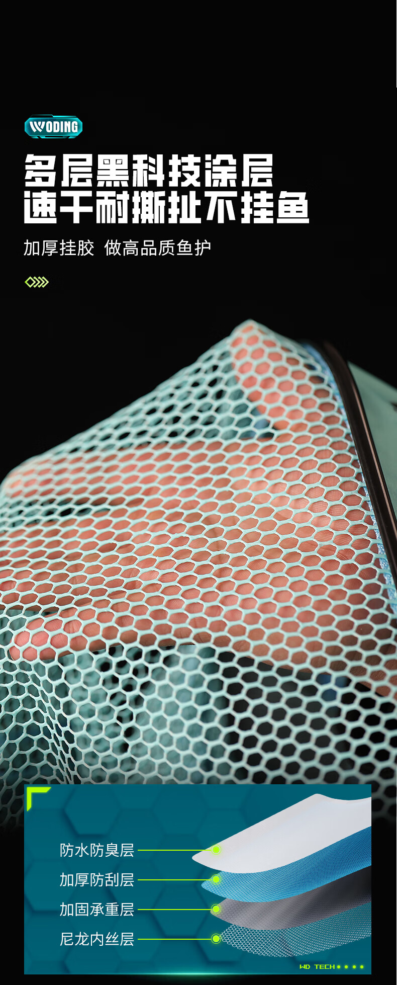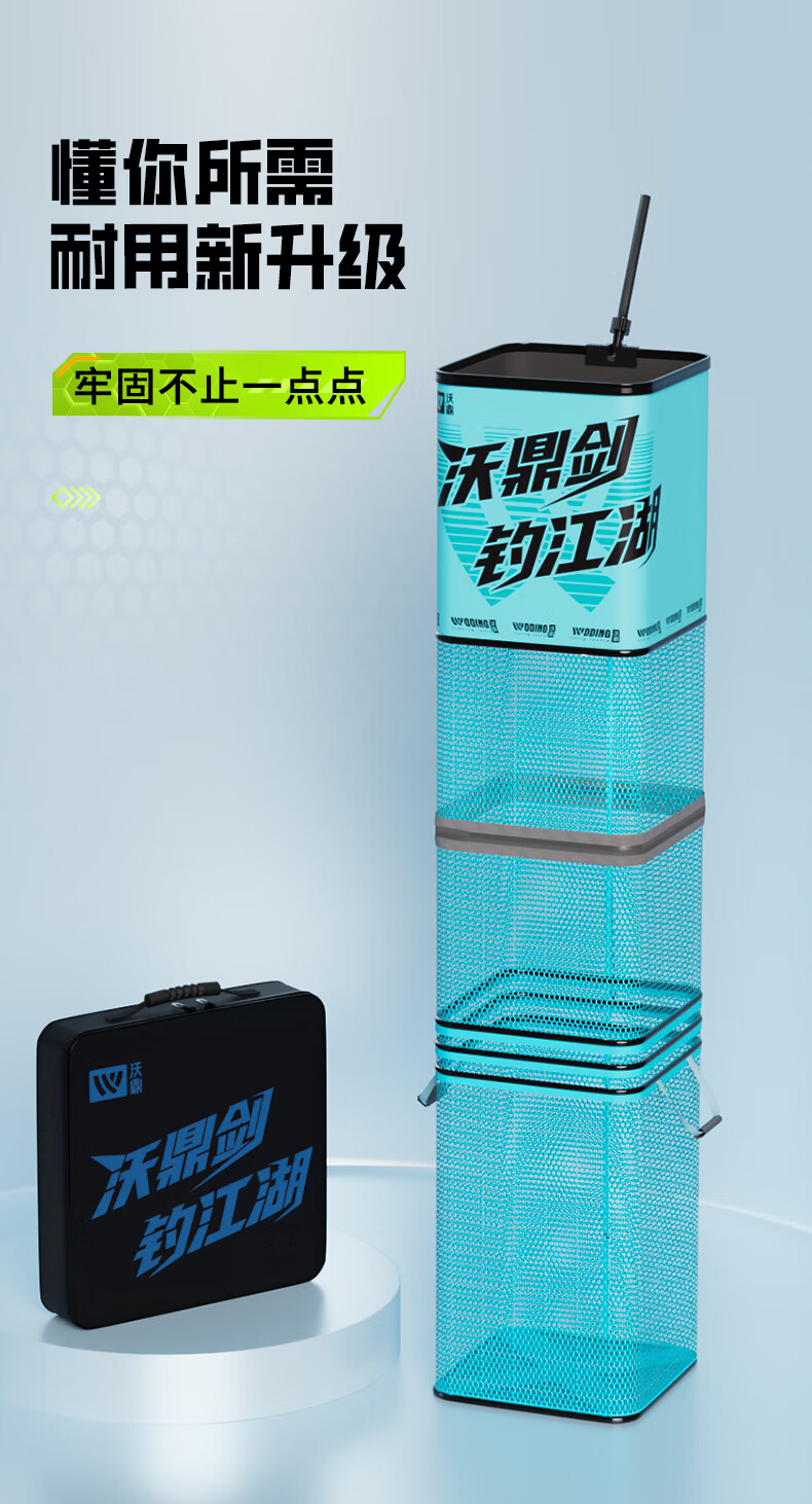 Woding fish guard wild fishing black pit thickened quick-drying square fishing net bag small portable folding new high-end alloy ring mouth 32cm 2.5m square enlarged fish guard (with bag)