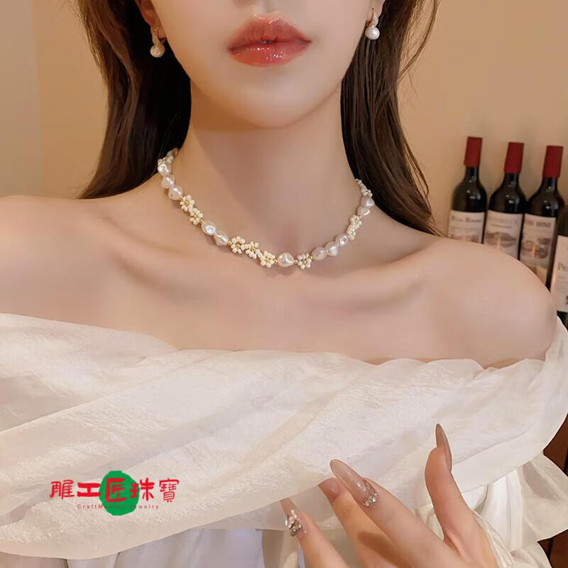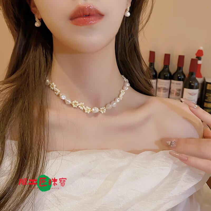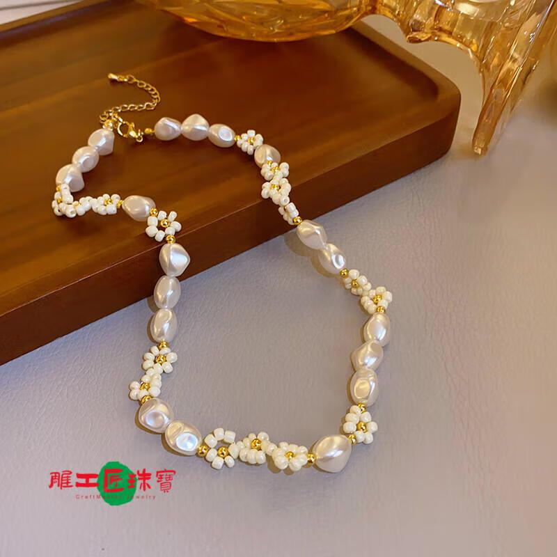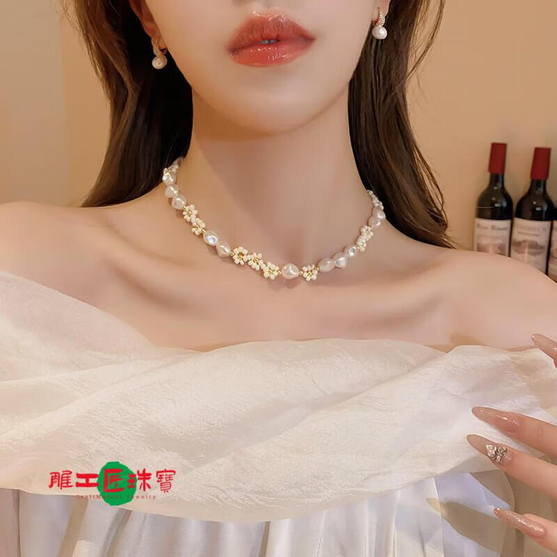 Fat Donglai Quality Irregular Pearl Pendant Rice Bead Flower Necklace Women's 2024 New Light Luxury Niche Clavicle White