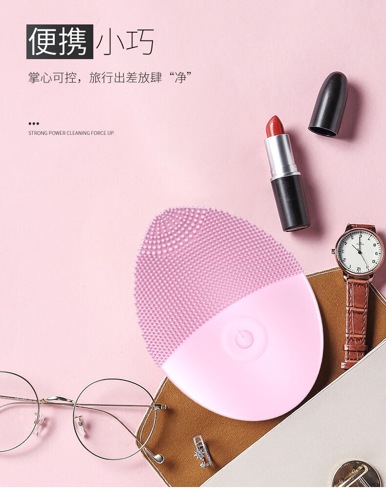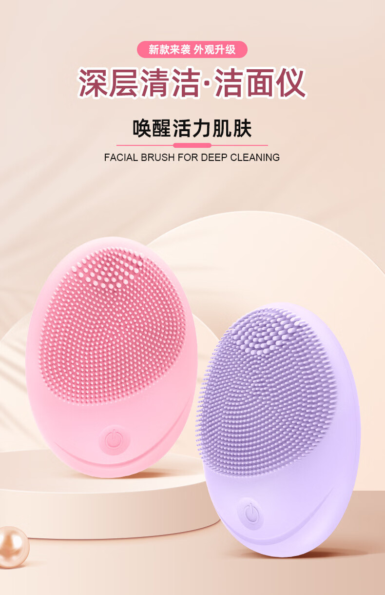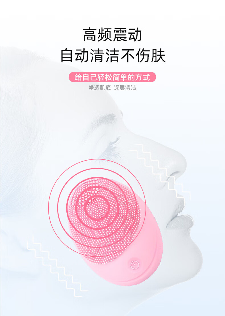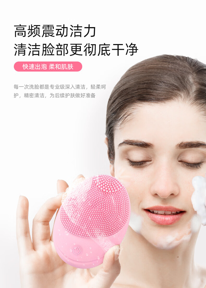 Electric facial cleansing instrument, facial cleansing instrument for women and men, pore cleaner, silicone brush, facial cleansing machine, silicone vibration, pink (new battery model)