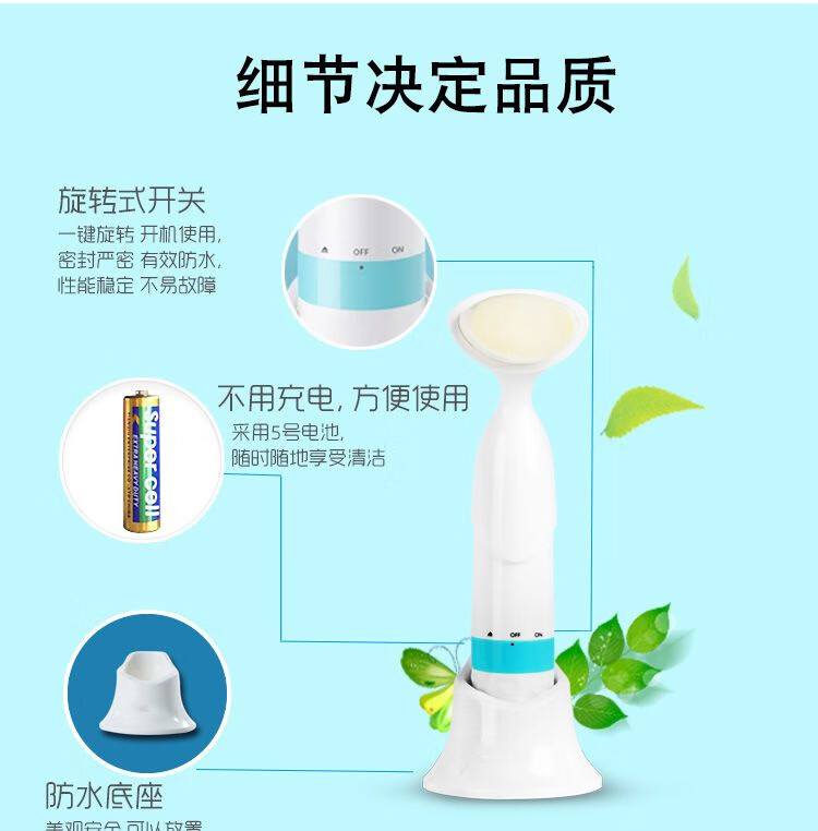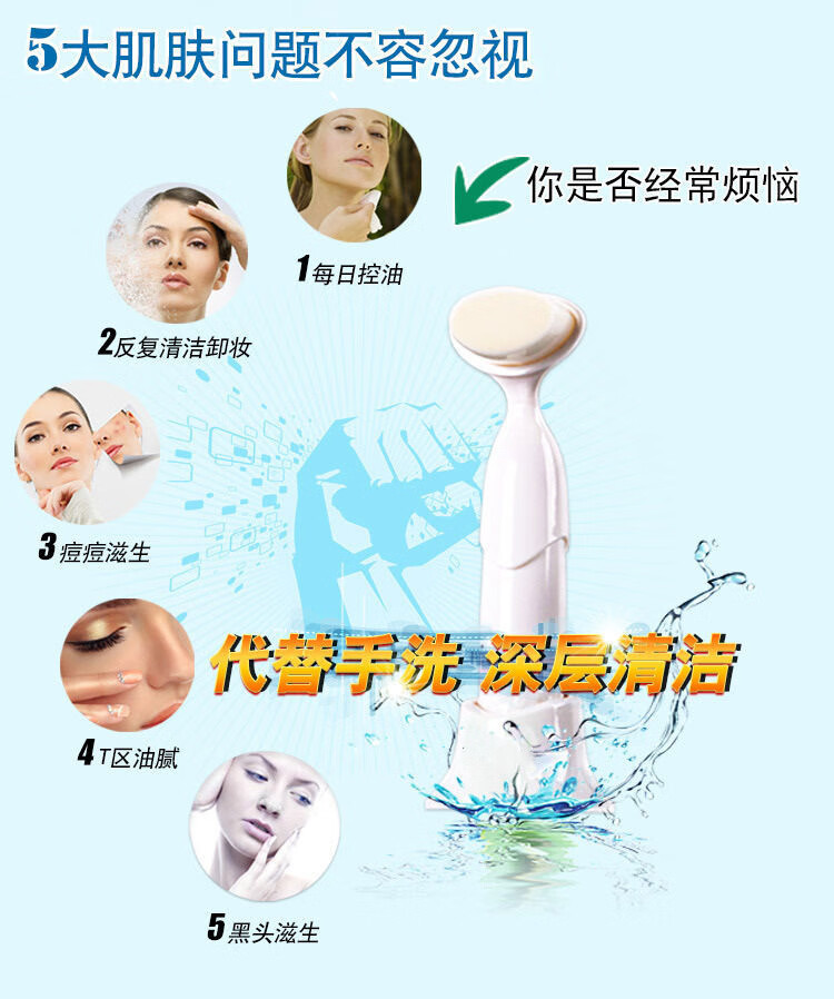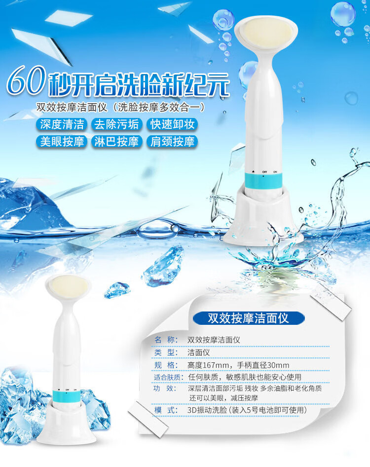 Instrumento de limpieza facial con masaje de vibración de doble efecto, limpiador de poros para eliminación de puntos negros, lavadora facial eléctrica, artefacto coreano, azul (cabezal de cepillo único)