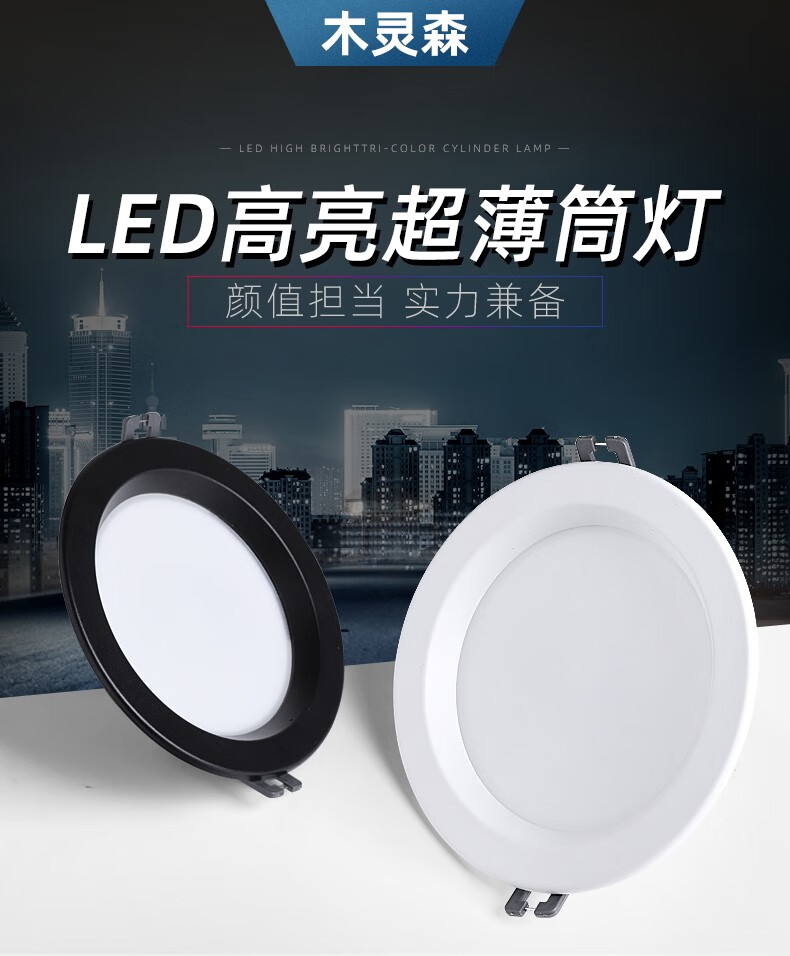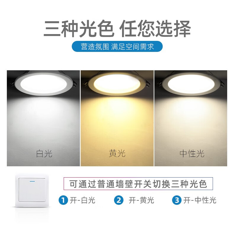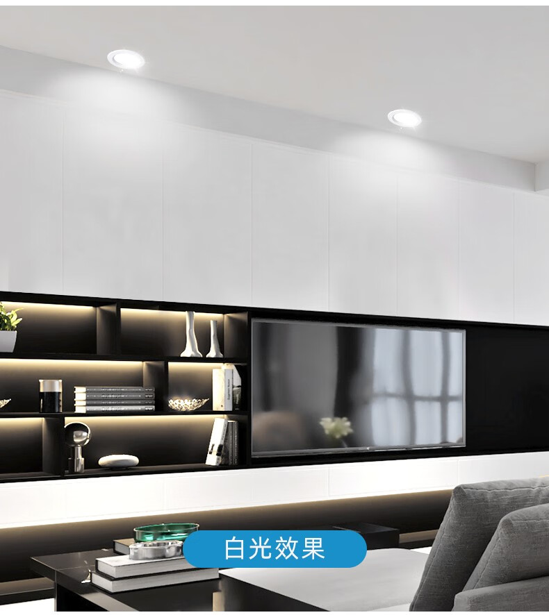 Double Yunwei LED downlight embedded opening 6.5cm8 household 4-inch ceiling copper lamp 9w living room 7cm hole lamp round 12w 5-year warranty 2.5-inch black silver 7-watt dimming opening 7