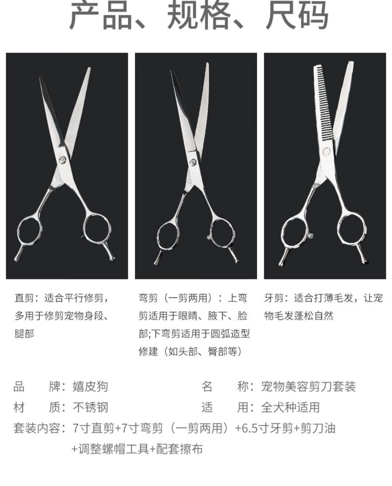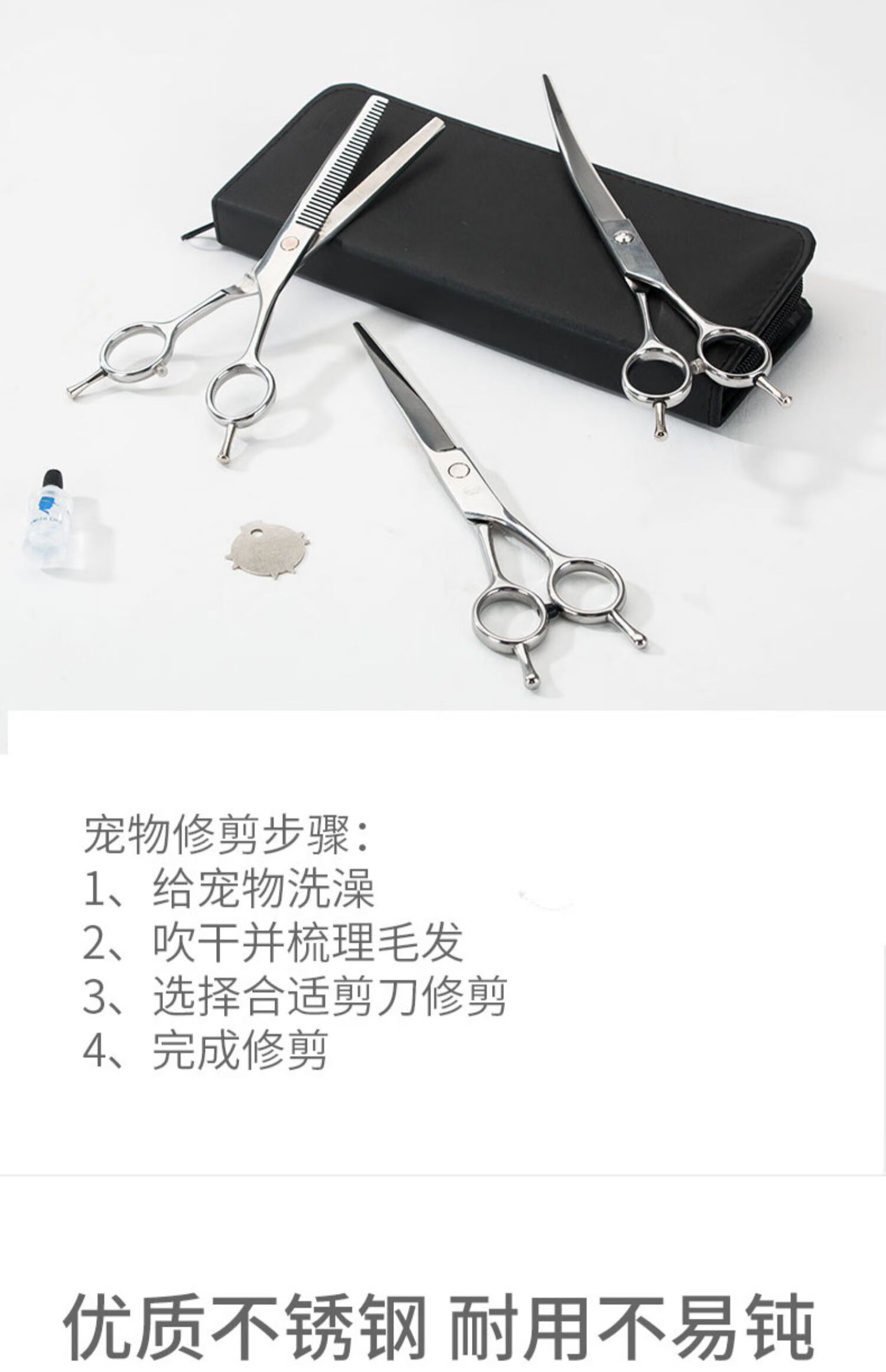 Hippie dog pet grooming scissors, professional hair trimming set, curved scissors, tooth scissors, dog scissors, self-cut dog hair tool, comb