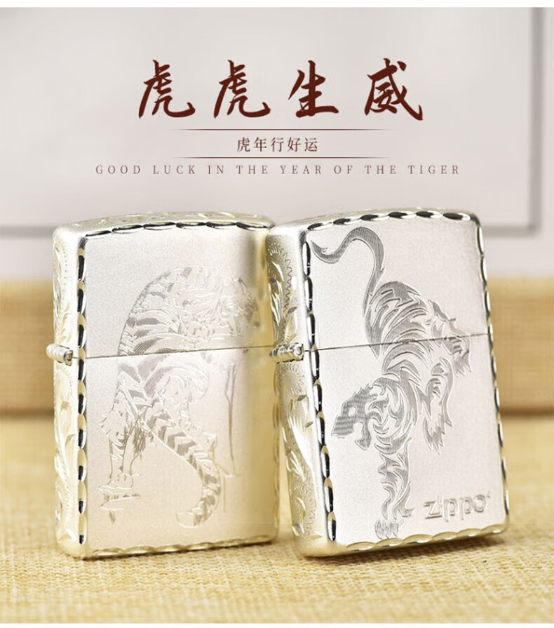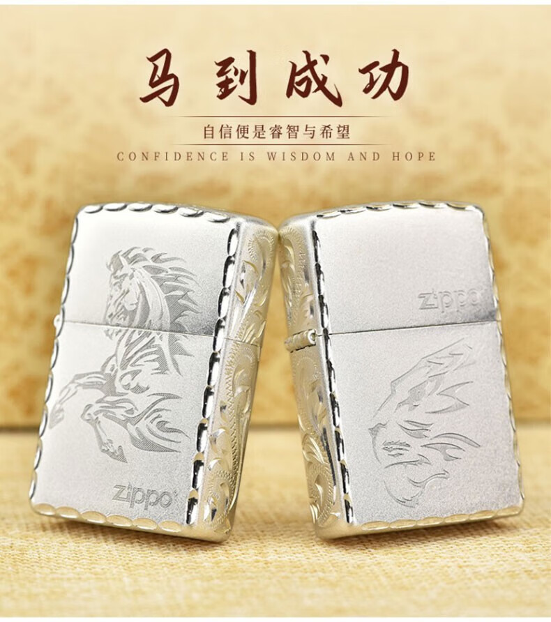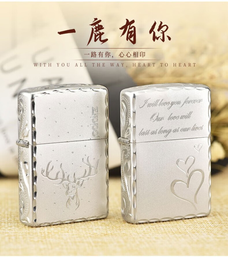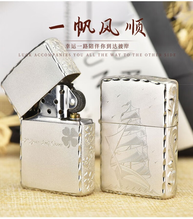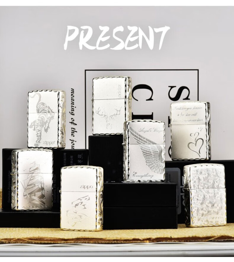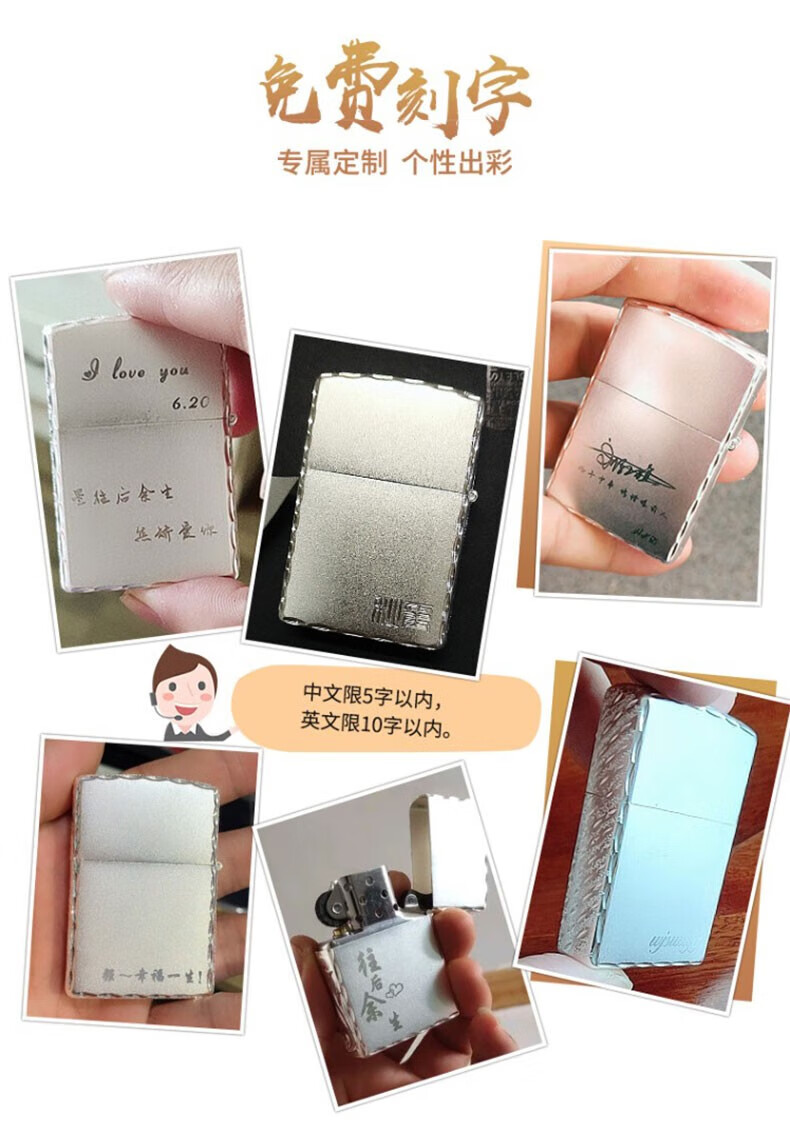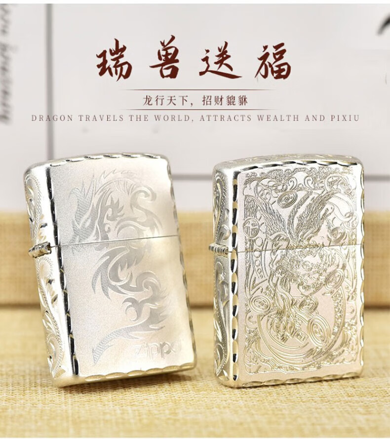 ZIPPO lighter windproof kerosene silver-plated hand-carved customized lettering gift Valentine's Day gift for boyfriend and girlfriend's birthday Lucky Pixiu-Gift Box Set