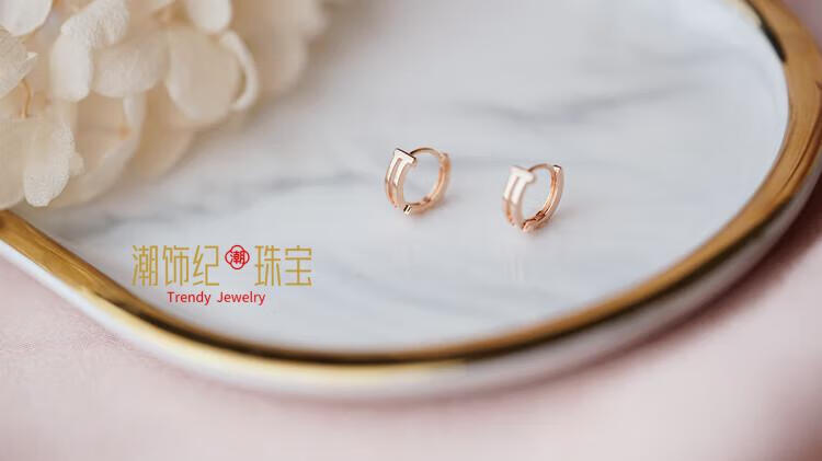DL 1998 Fat Donglai same style 18k rose gold earrings, simple style, small earrings plated with mini circles, niche design, fashionable, rose gold, striped style 1 pair