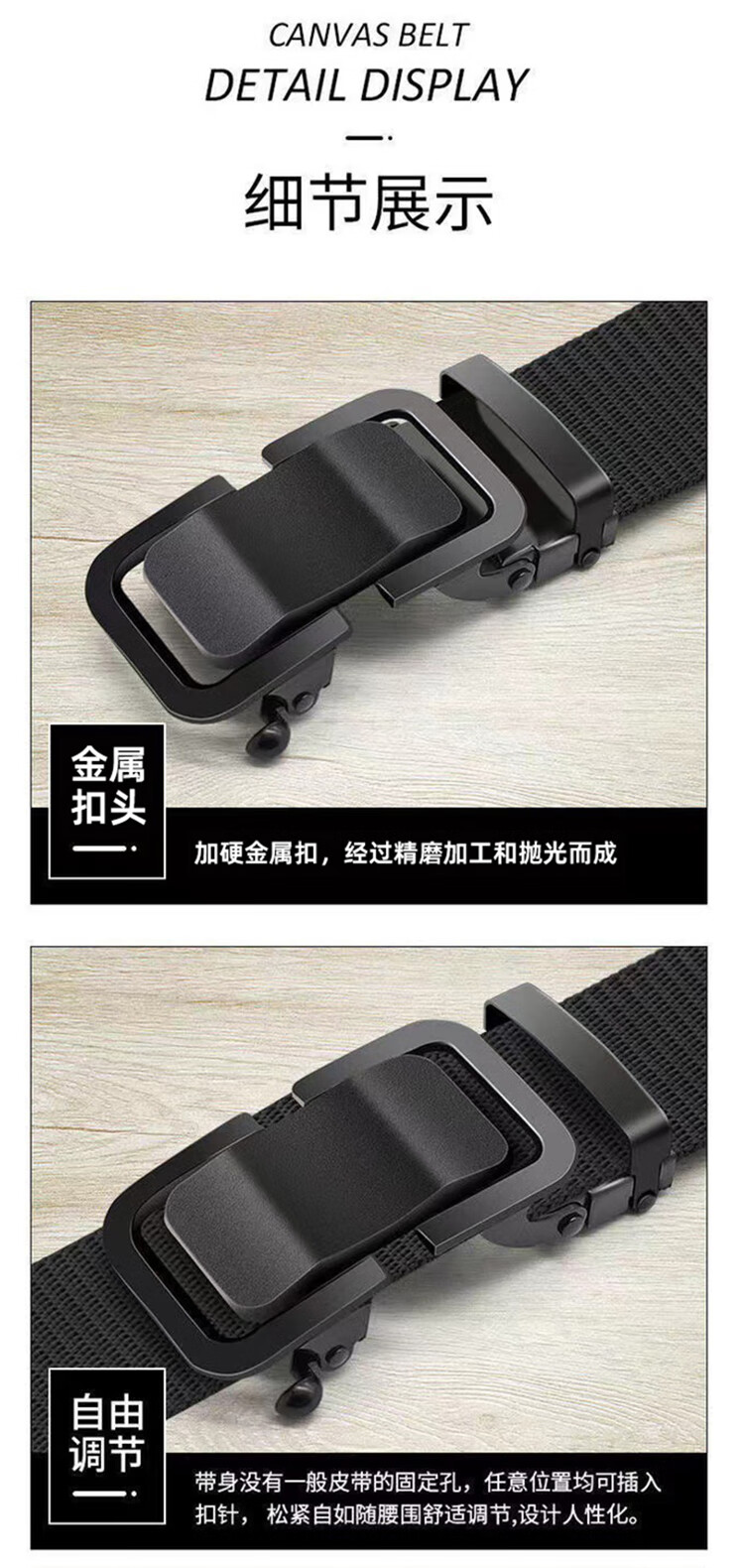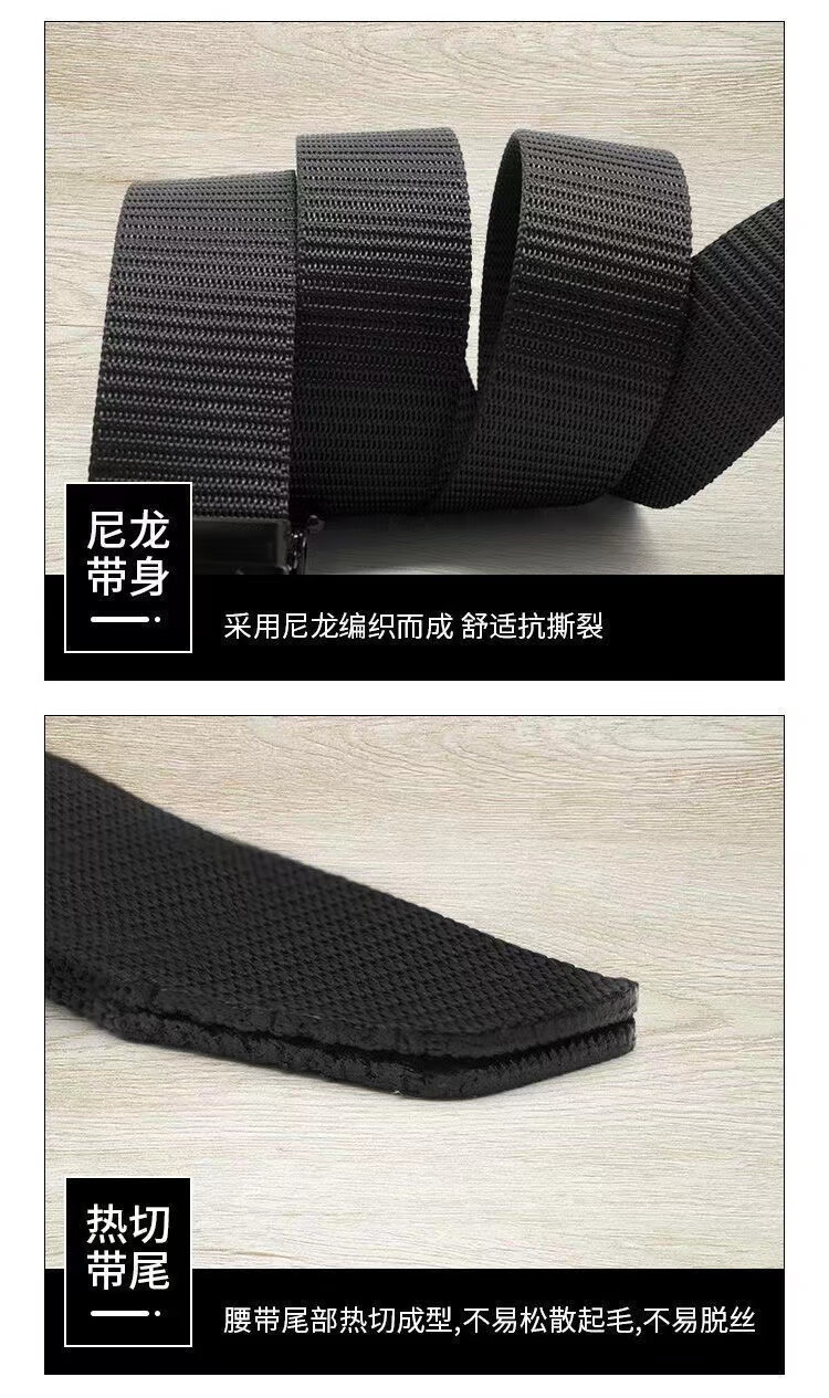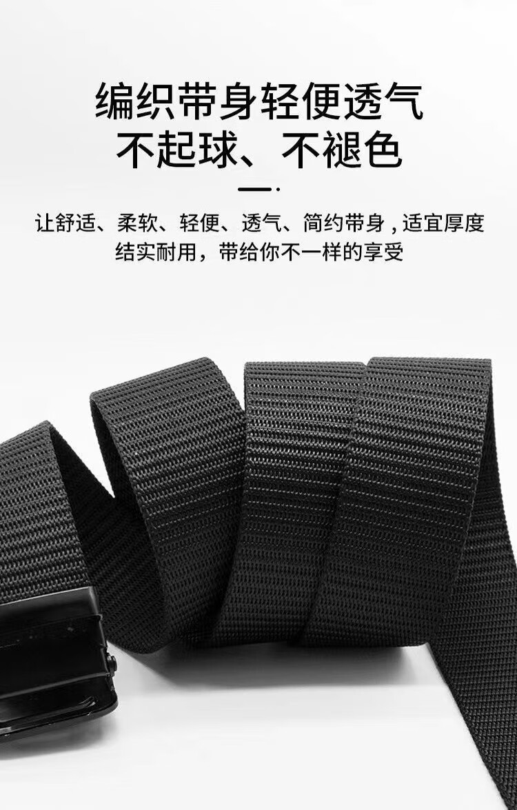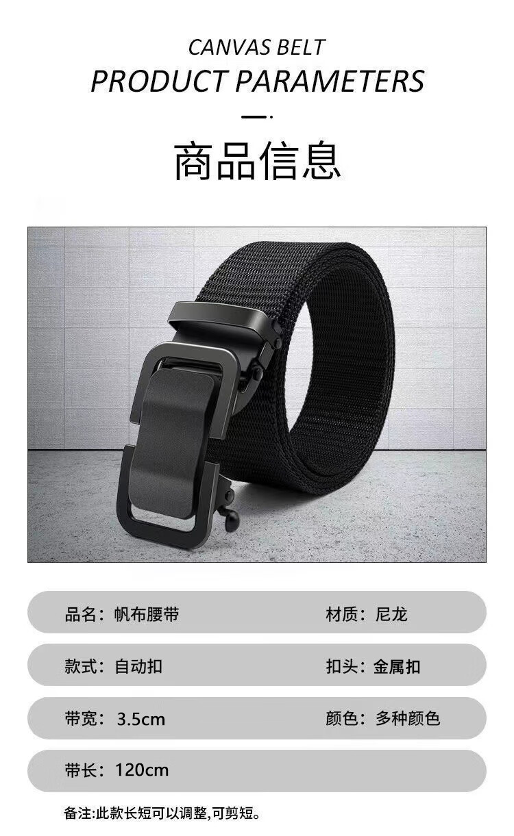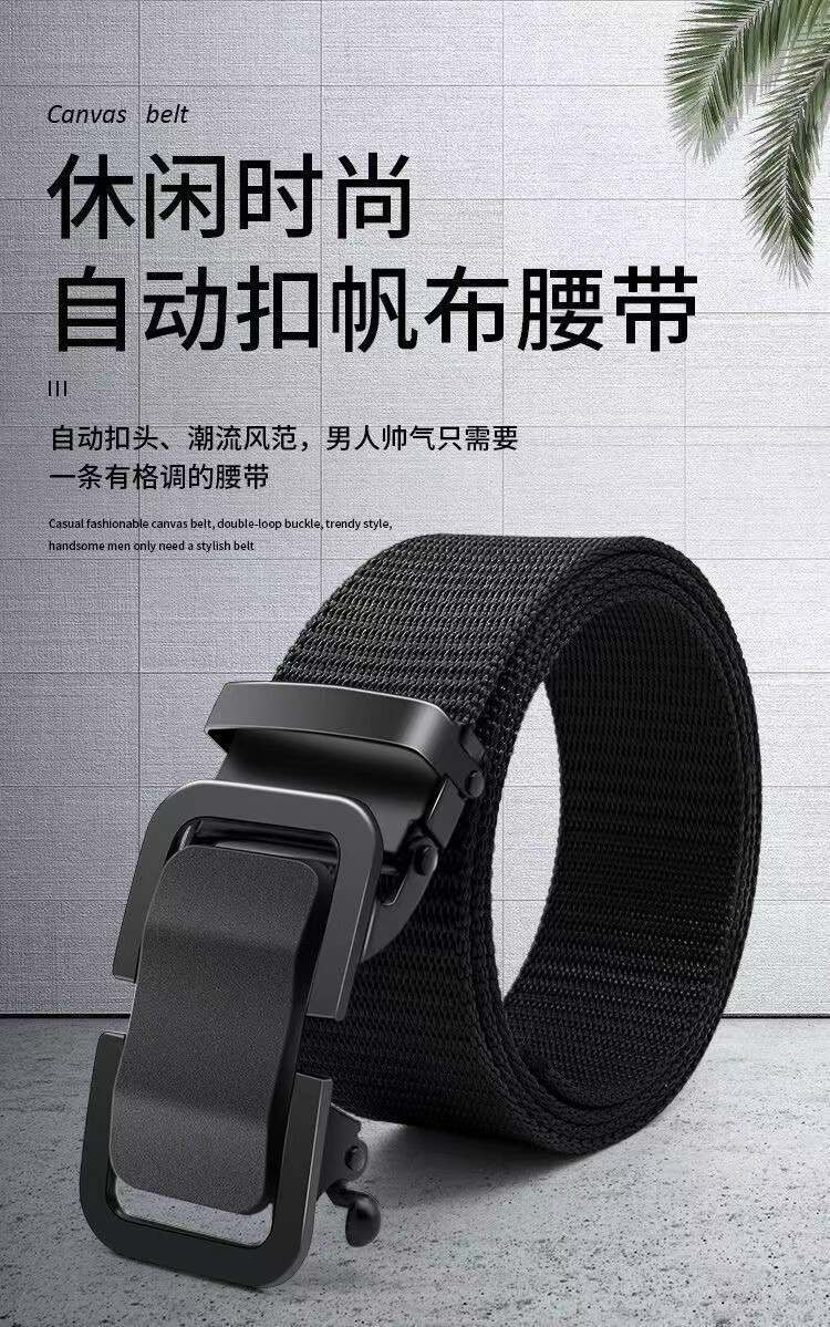 Watson Sheep Men's Belt Canvas Toothless Automatic Buckle Woven Belt Breathable Casual Outdoor Sports Student Military Training Pants Belt Black Automatic Buckle (Length 120cm Width 3.5cm) 120cm