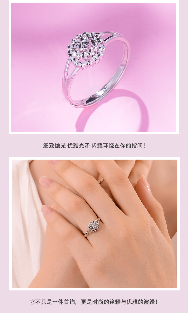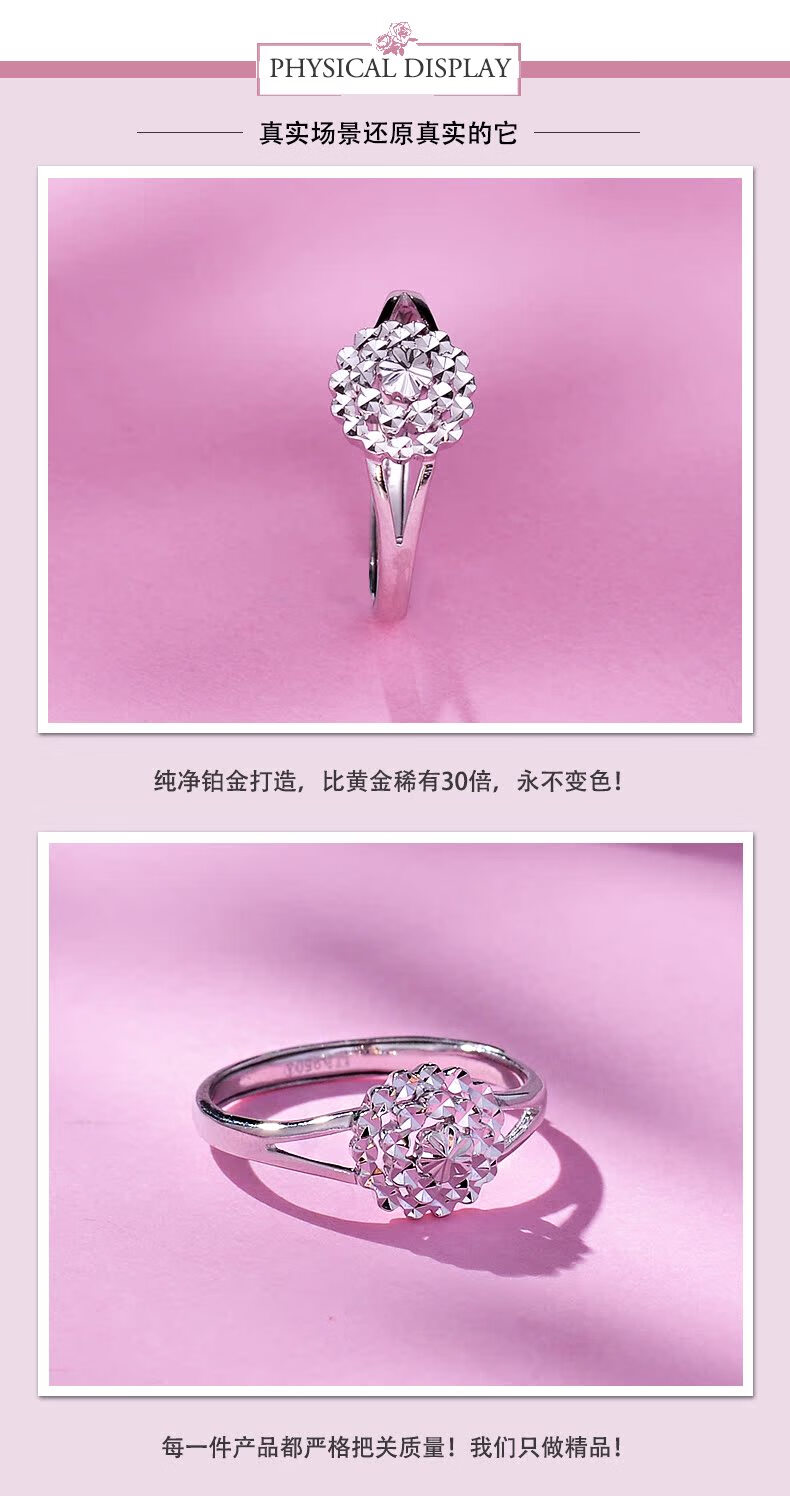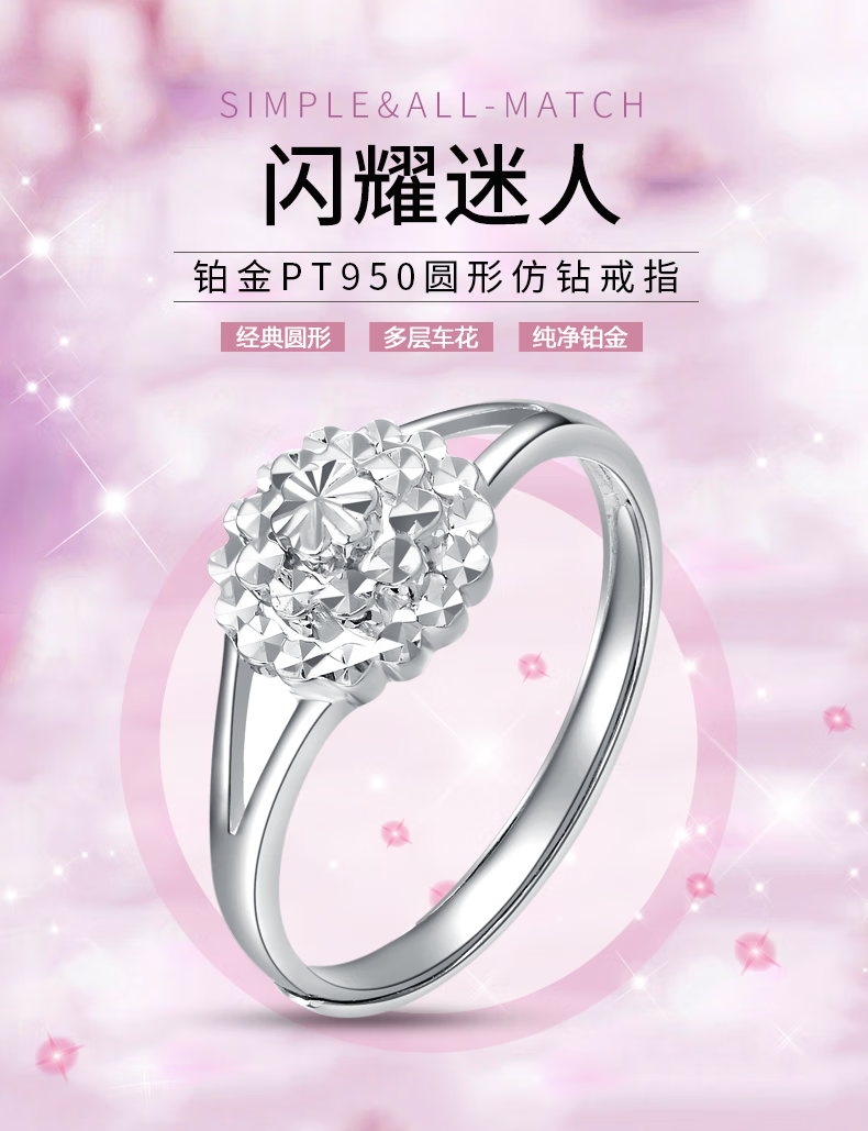 Jincaifu PT950 multi-layered round imitation diamond platinum ring, versatile platinum hand jewelry for women, platinum round imitation diamond ring, about 3.3g
