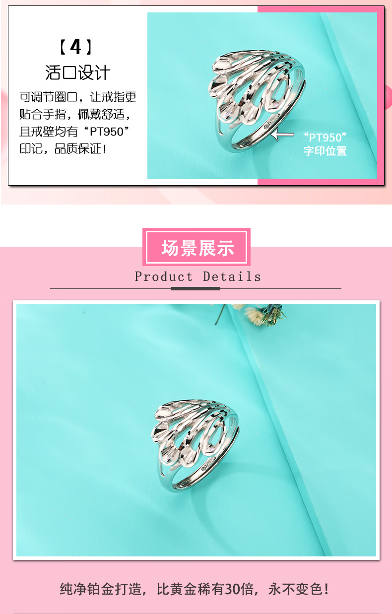 Jincaifu PT950 fashionable hollow phoenix tail platinum ring platinum elegant and shiny hand jewelry for women Platinum fashionable phoenix ring about 4.6g