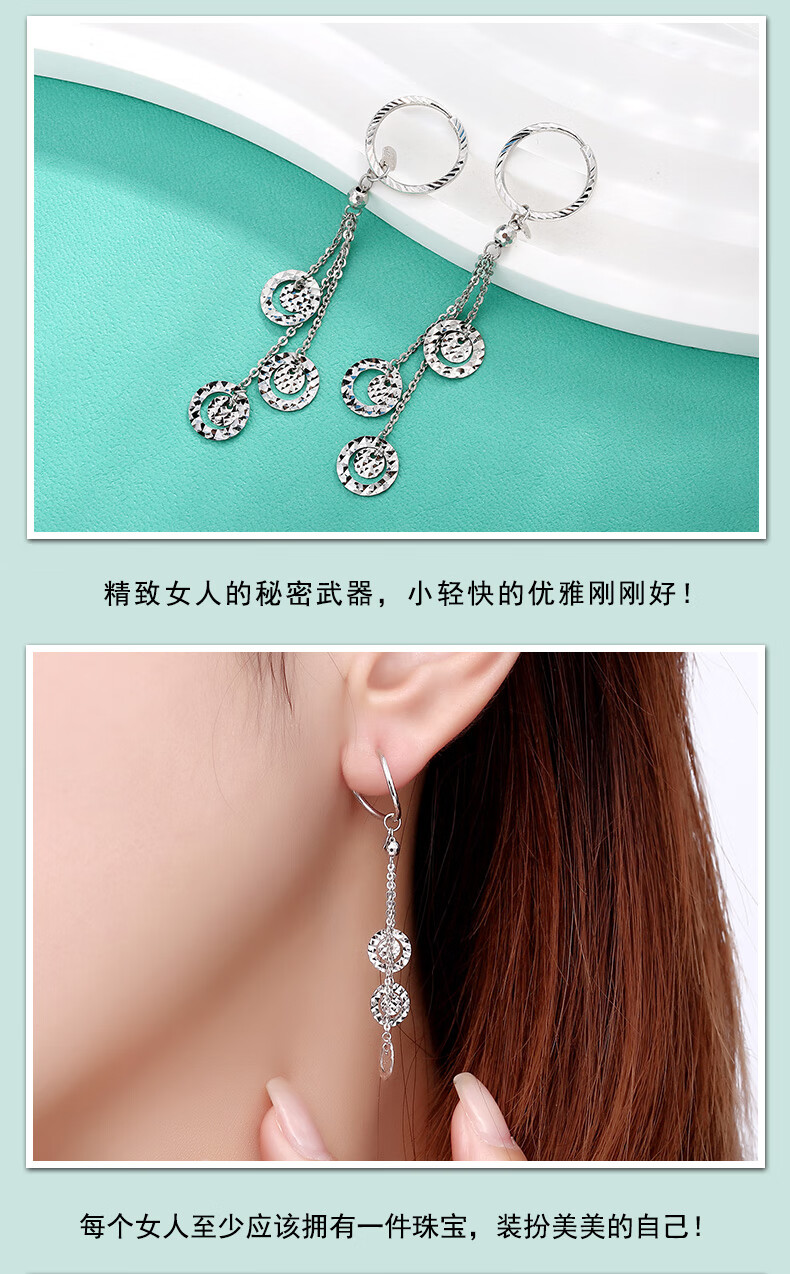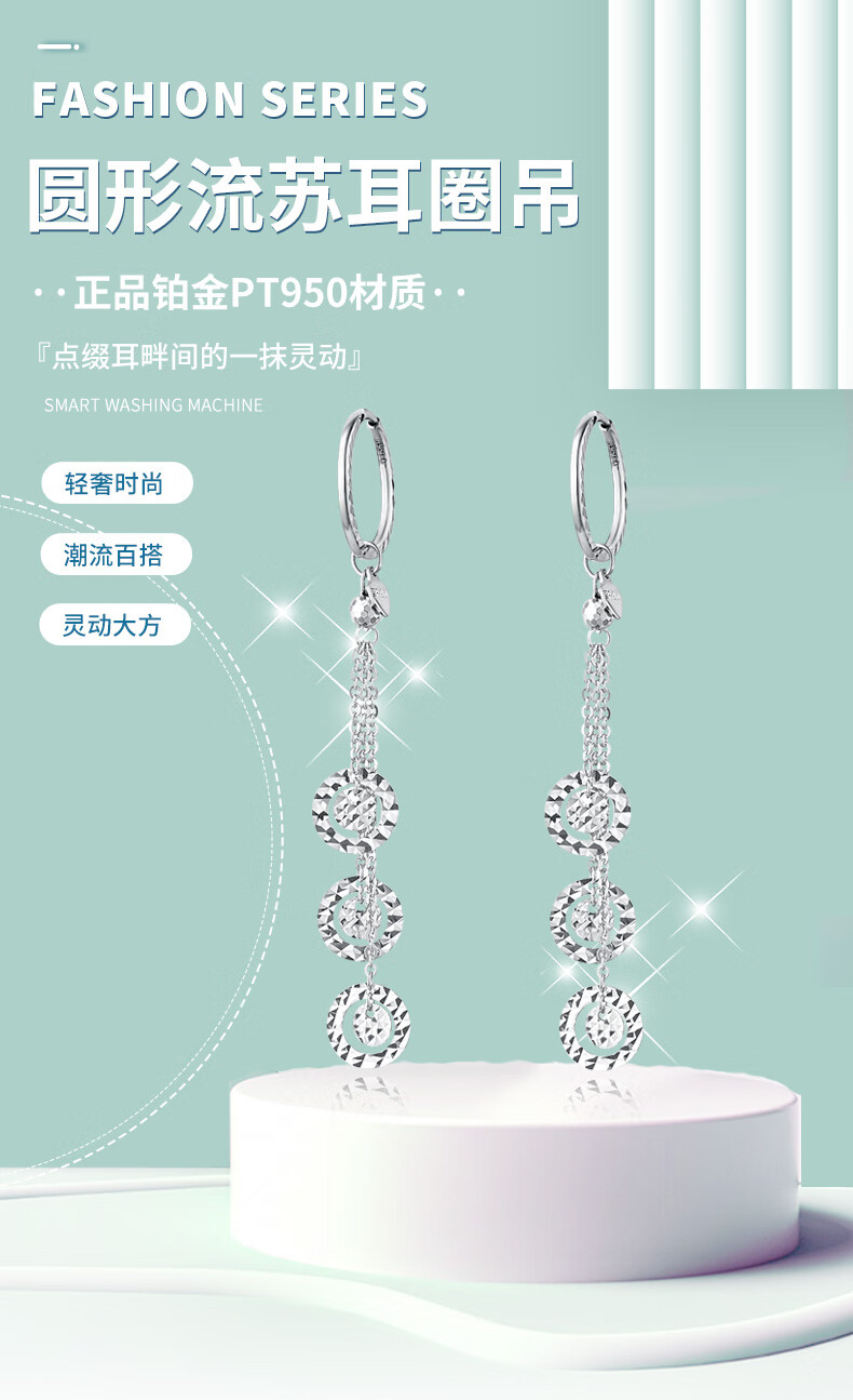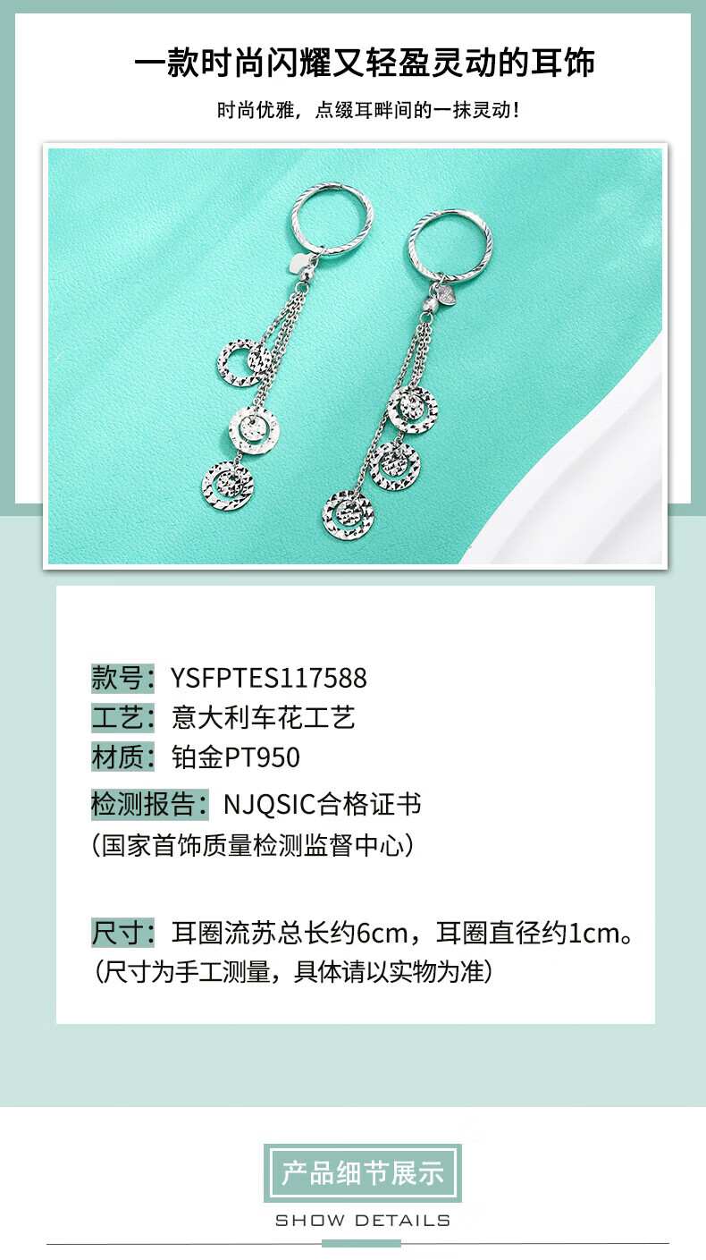 Jincaifu PT950 fashionable round tassel platinum earrings platinum earrings earrings earrings platinum round tassel earrings hanging about 4g