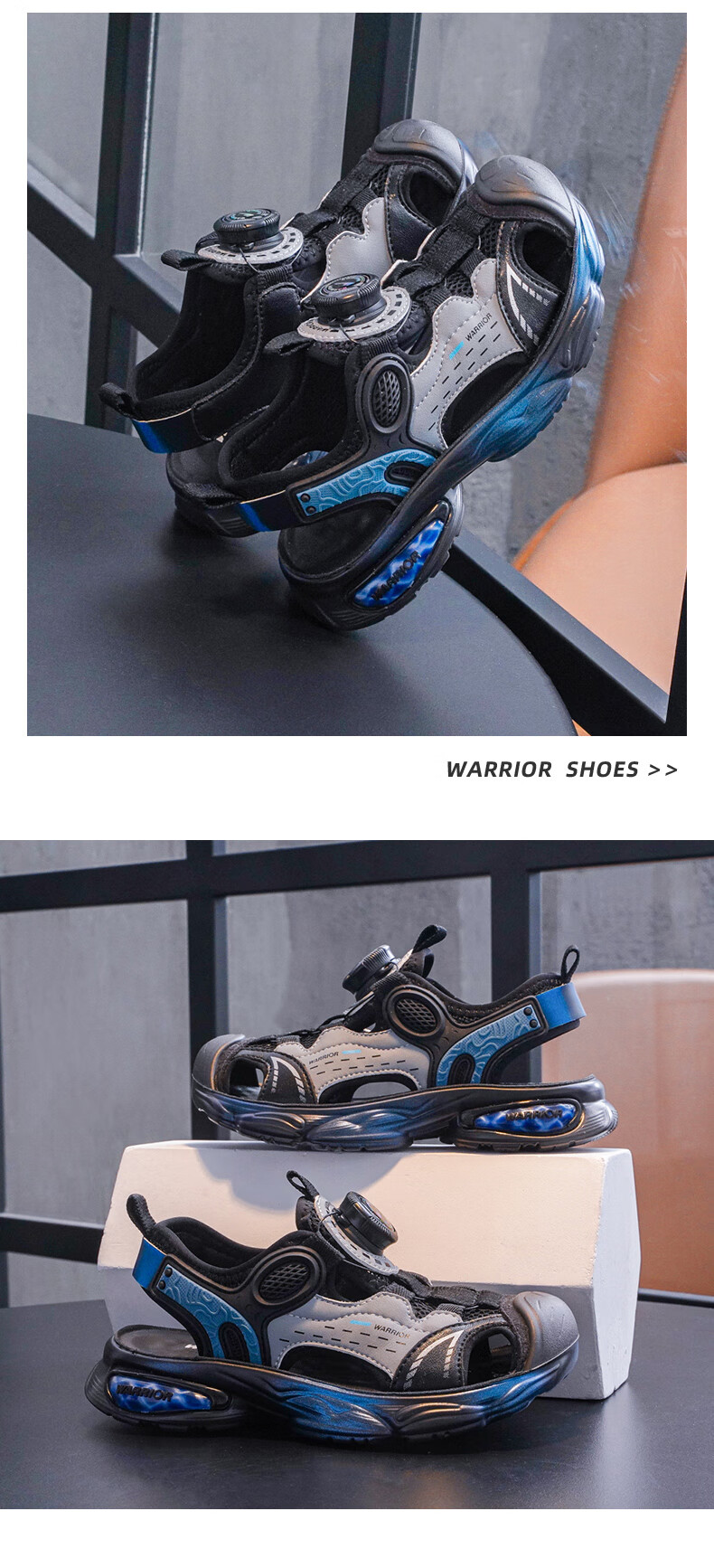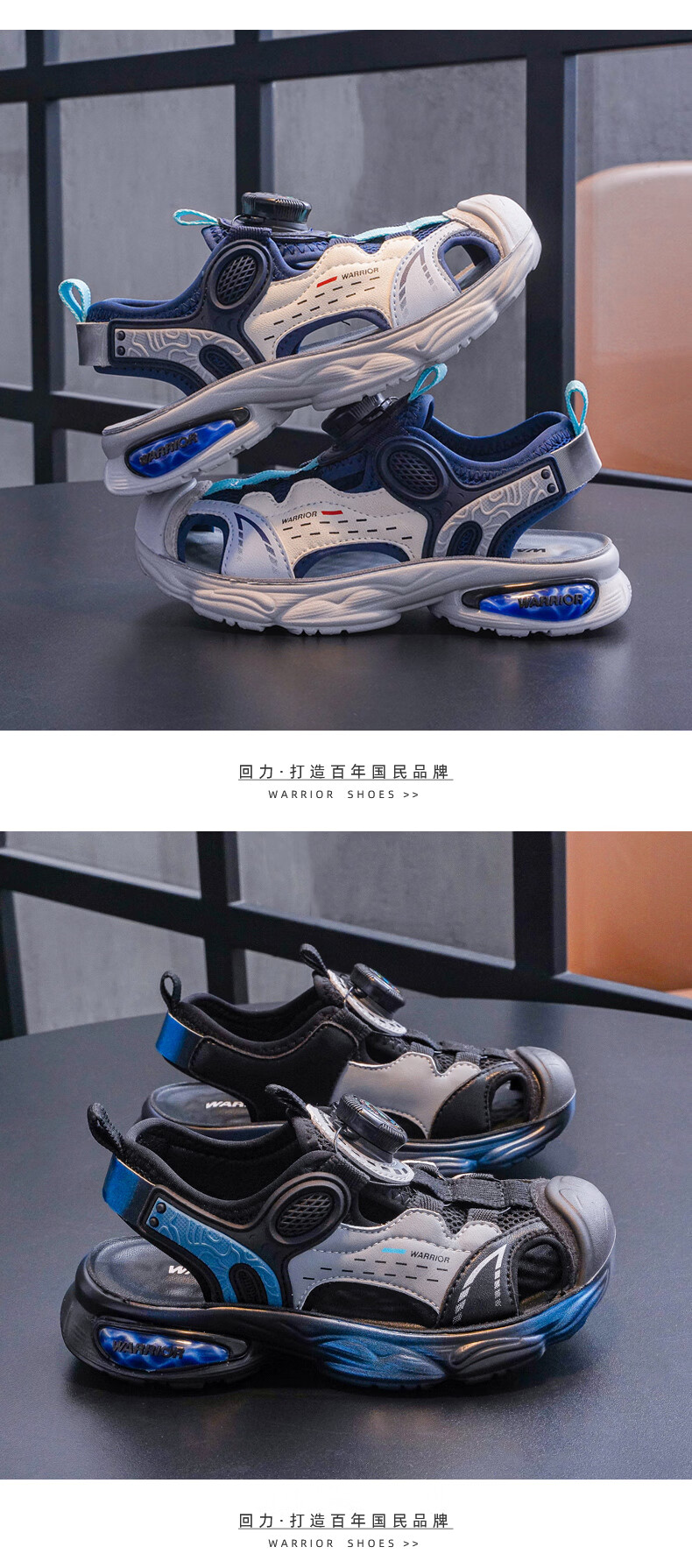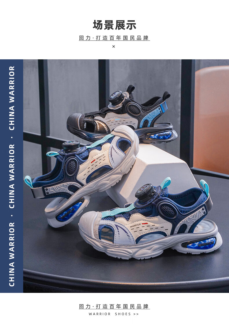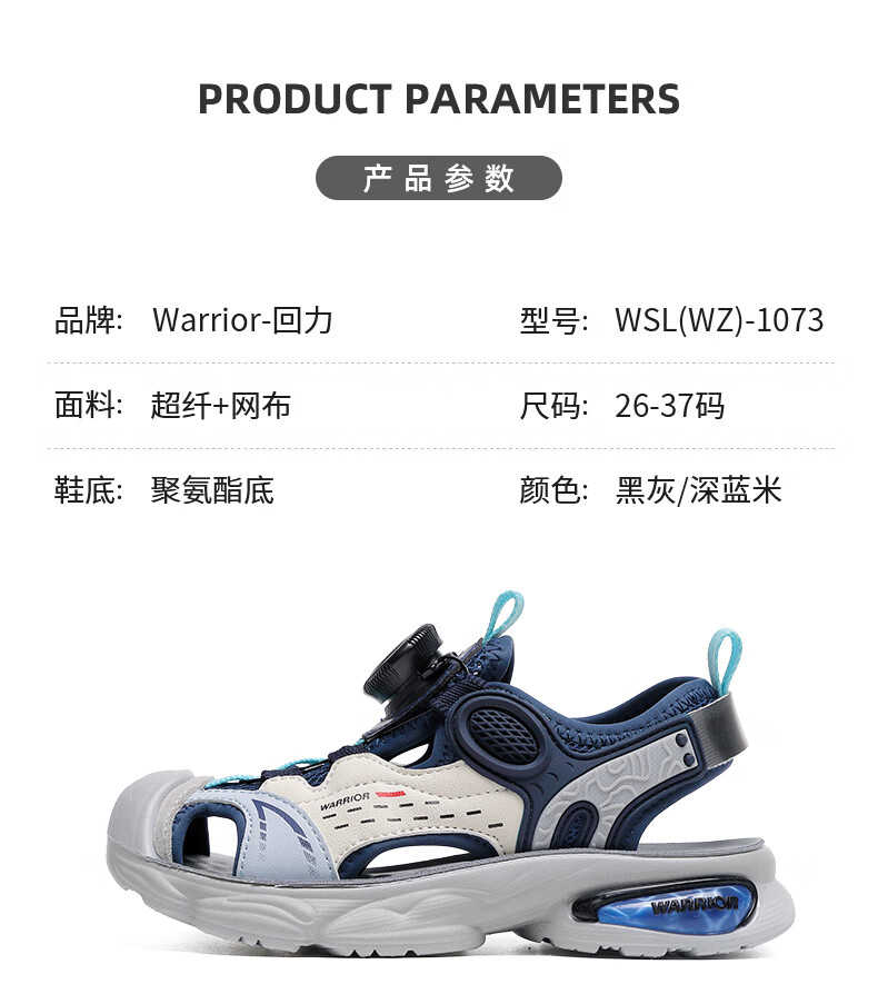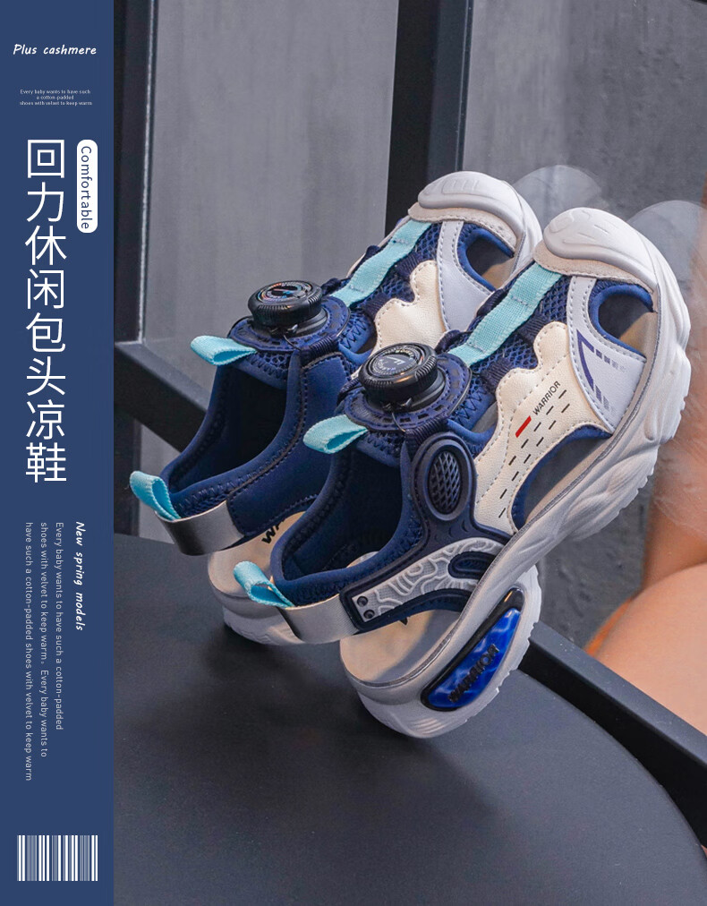 Pull back children's shoes children's sandals 2026 summer new style knob breathable casual beach shoes boys campus sports sandals dark blue rice -1073 31