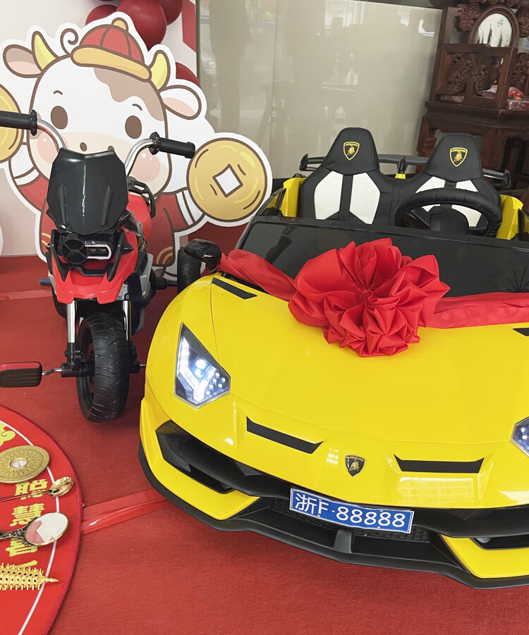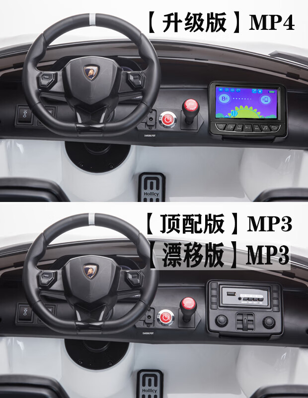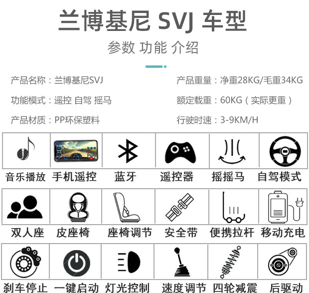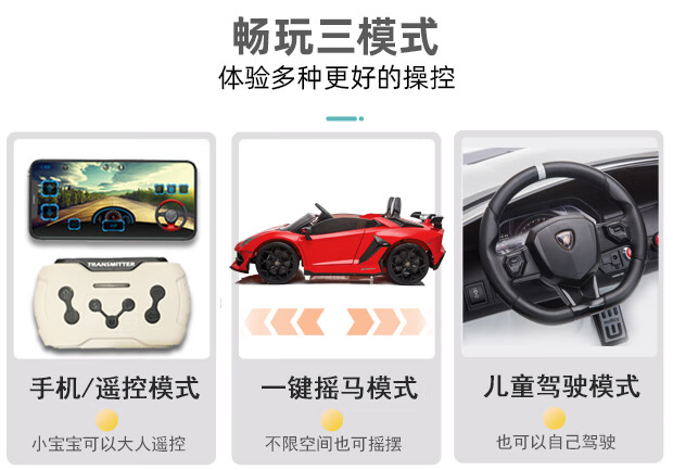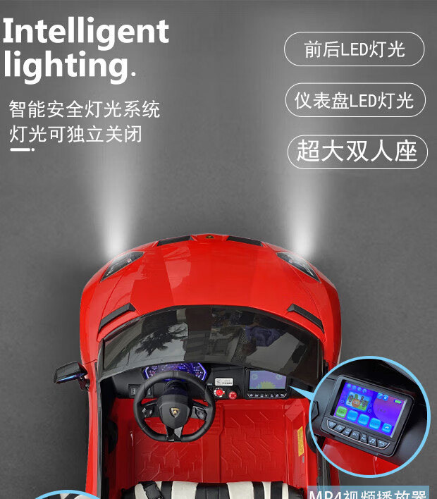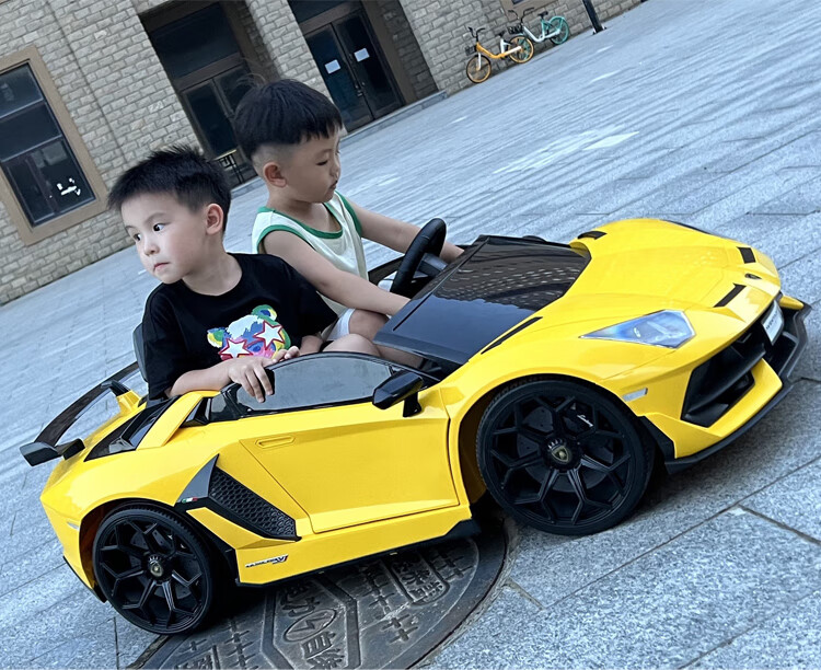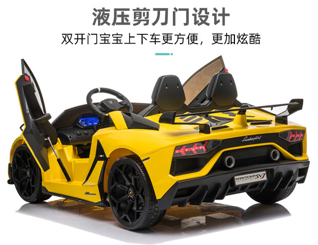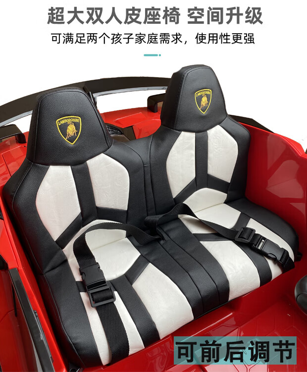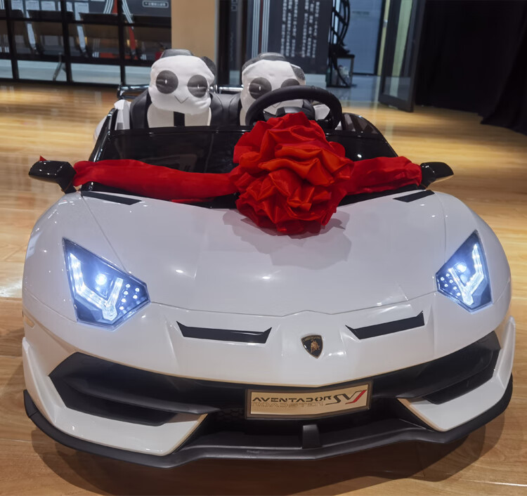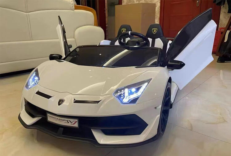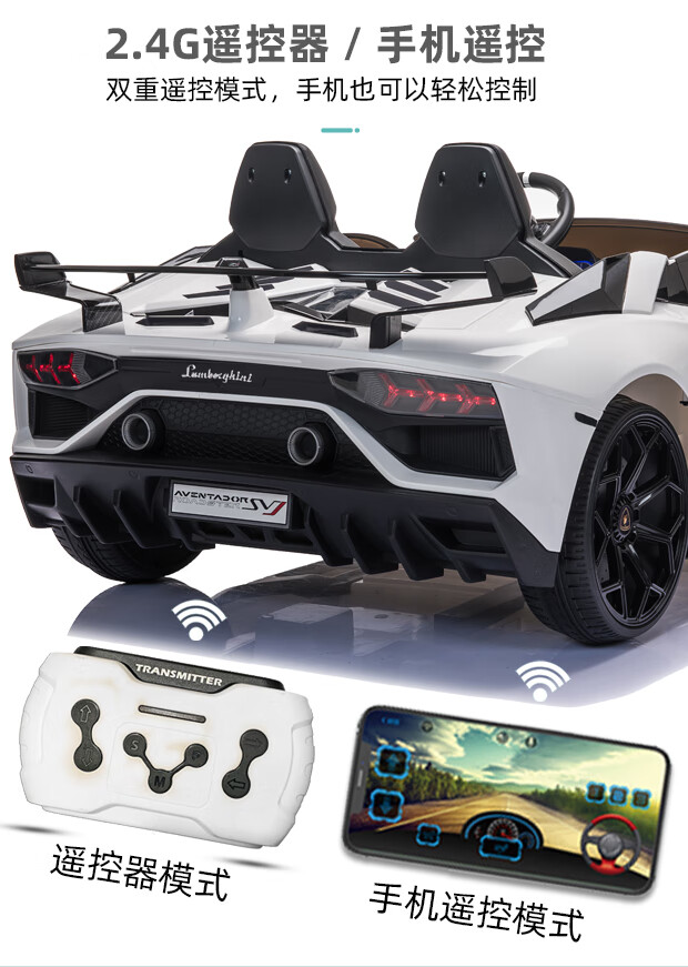 SVNCK Lamborghini two-seater children's electric car remote control four-wheeled children's toy sports car for male and female babies can sit on one person, white, mobile phone remote control + music + mobile phone Bluetooth, drift upgraded version LCD screen + video playback + all functions of the drift version