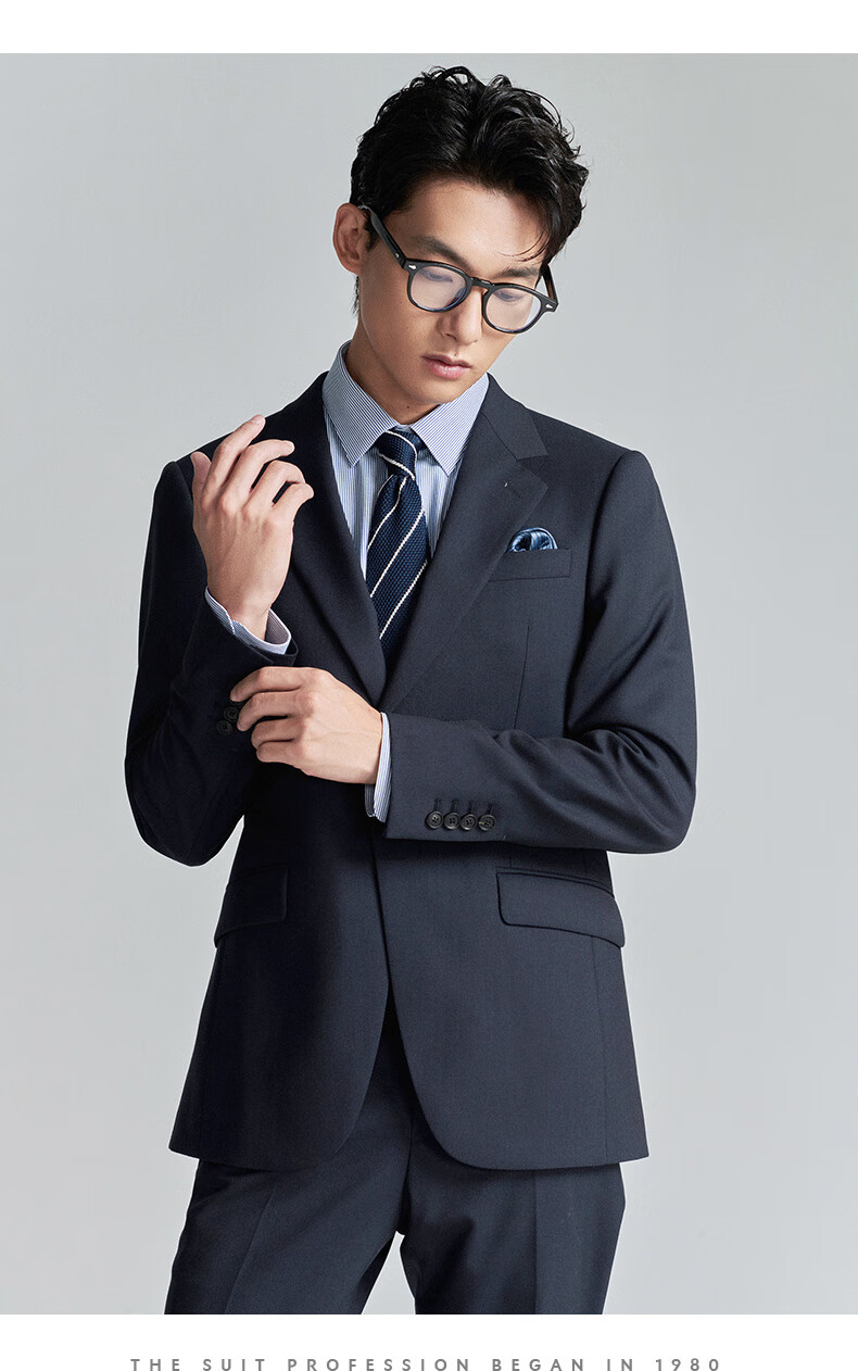 Angel Bird Suit Men's Suit Australian Sheep Wool Light Business Formal Fashion Work Suit Pants Suit Navy Blue Stripe-Slim Fit-Double Open 52 B(185/108) /Please note waist or trousers