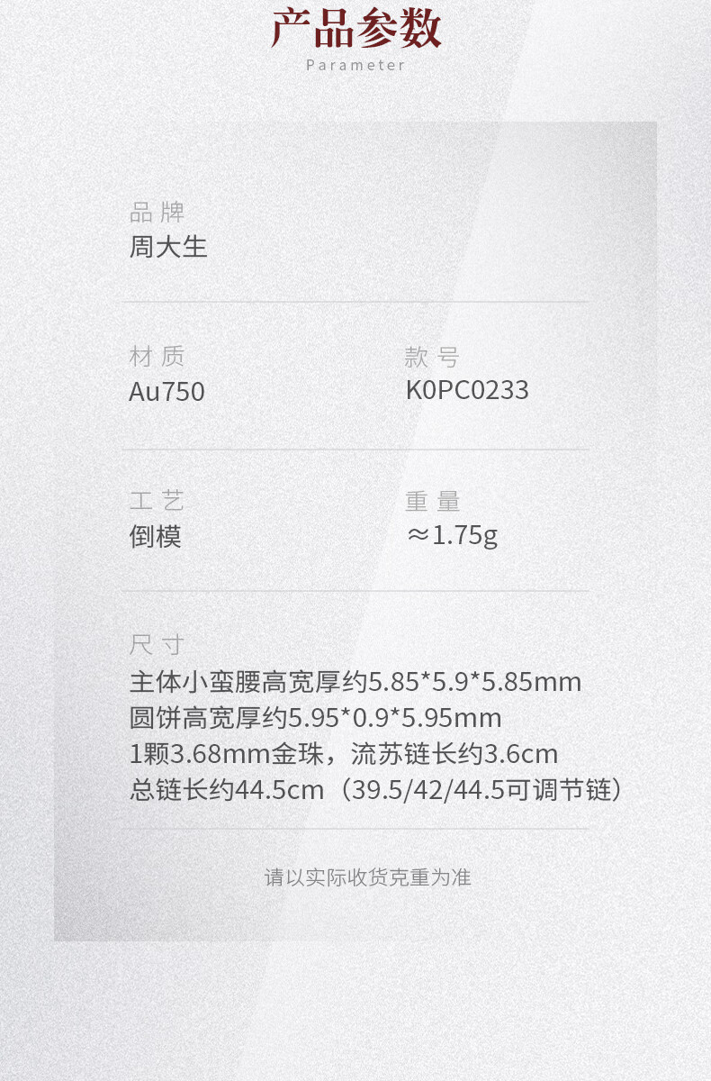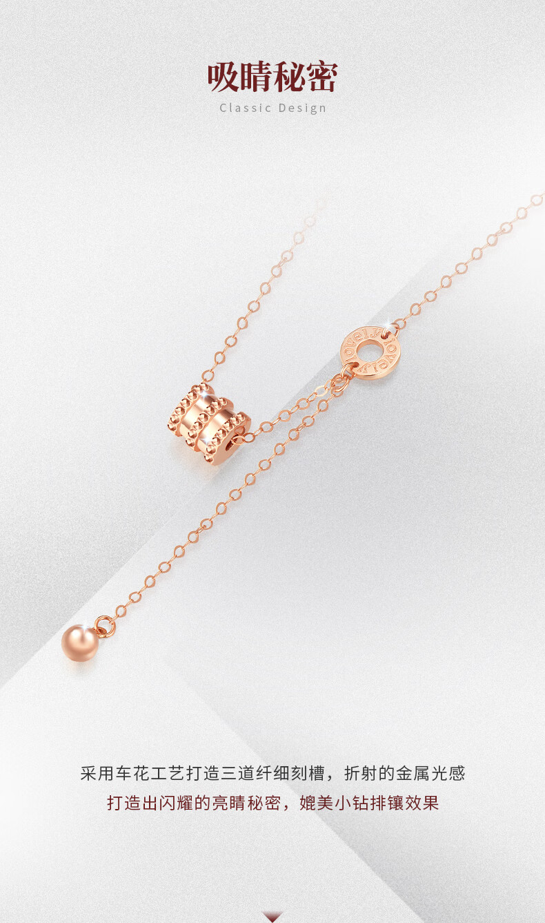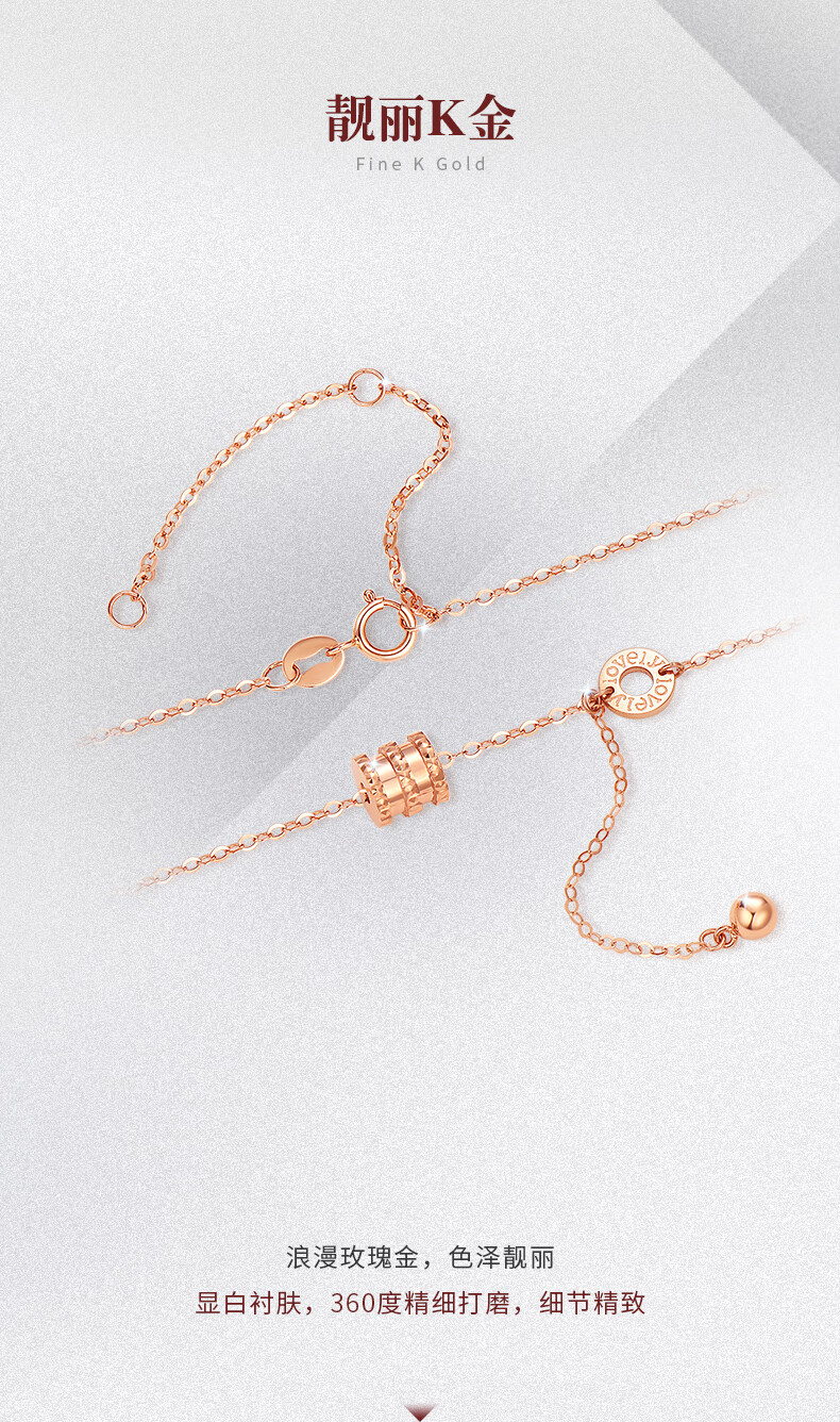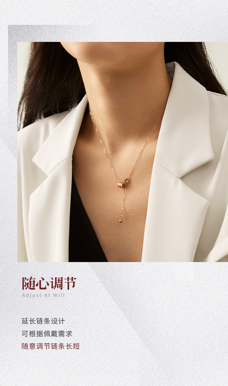 Chow Tai Sang Chow Tai Sang 18K Gold Small Waist Necklace Rose Gold Classic Necklace Fashion Style Give Your Girlfriend a Birthday Gift 18K Gold Small Waist Necklace (Weight: Approximately 1.75g)