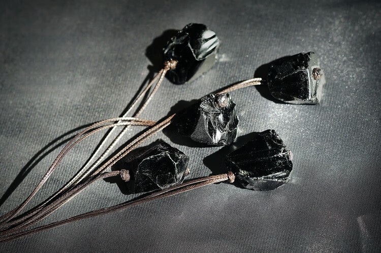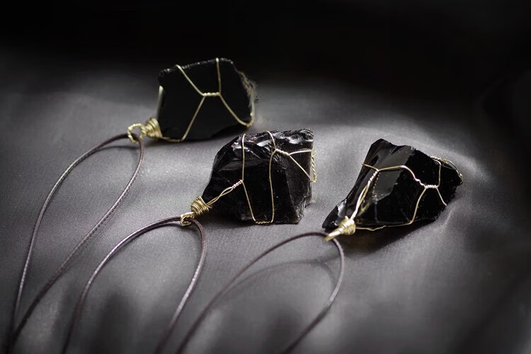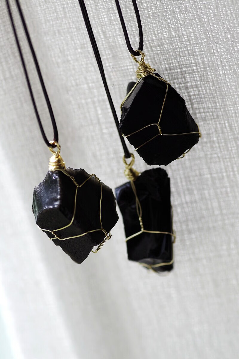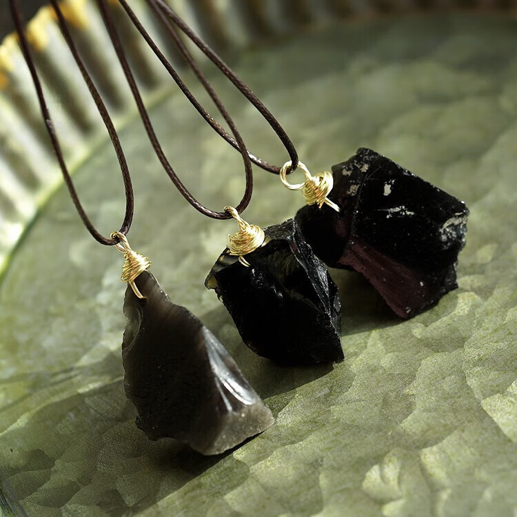 Mochen MOEYCIOR removes bad luck natural obsidian pendant rough stone necklace natural stone pendant black stone pendant car pendant C style 4-5cm large rough stone random hair/top hole string rope