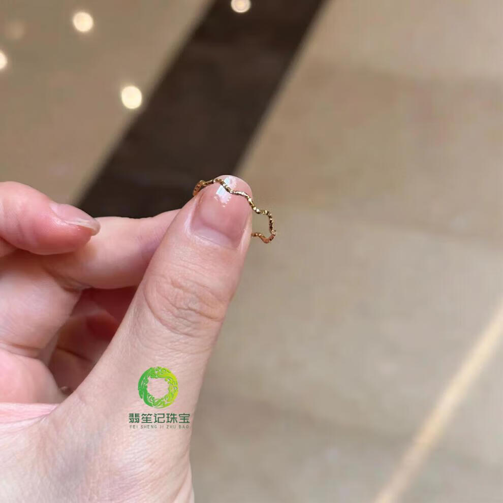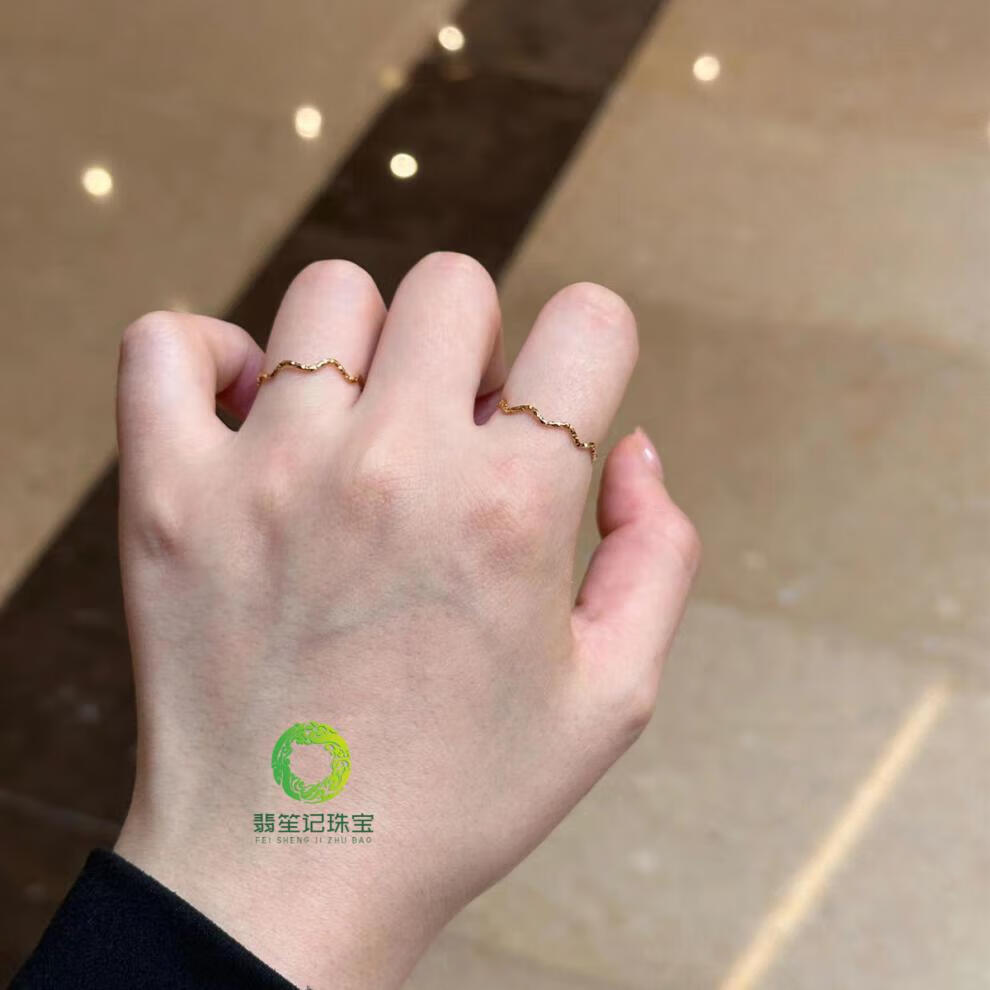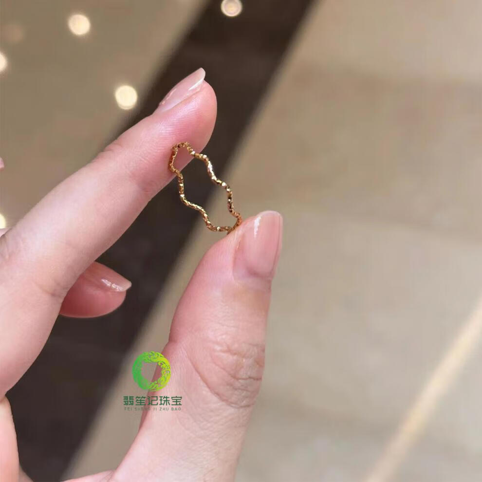 Fei Sheng Ji Fat Donglai's same style 18k gold plain ring 18K gold ultra-fine sparkling sand wave ring for women's index finger niche light luxury exquisite design Flashing sand wave ring US size 9
