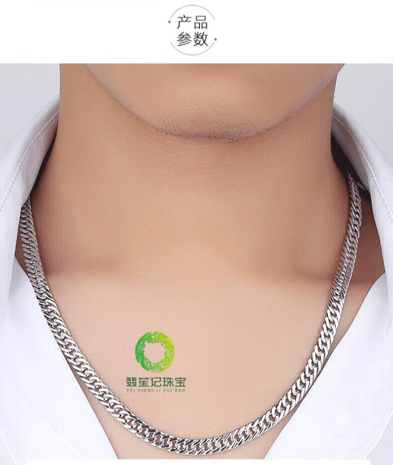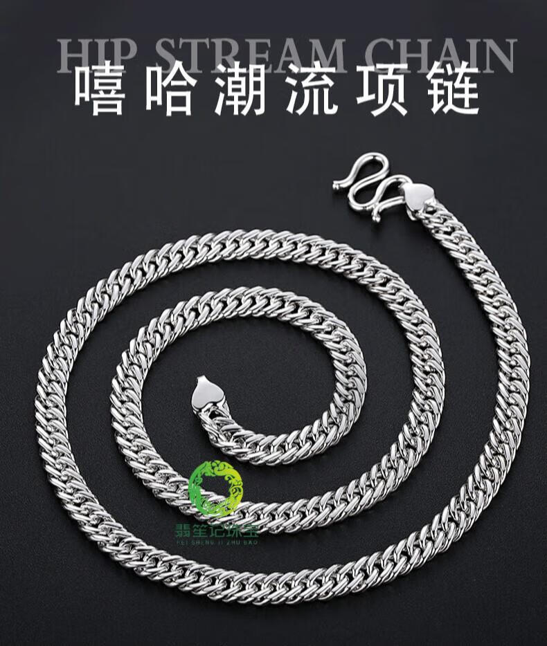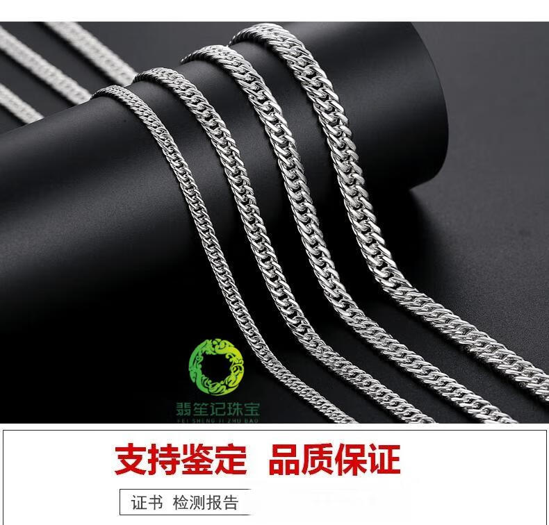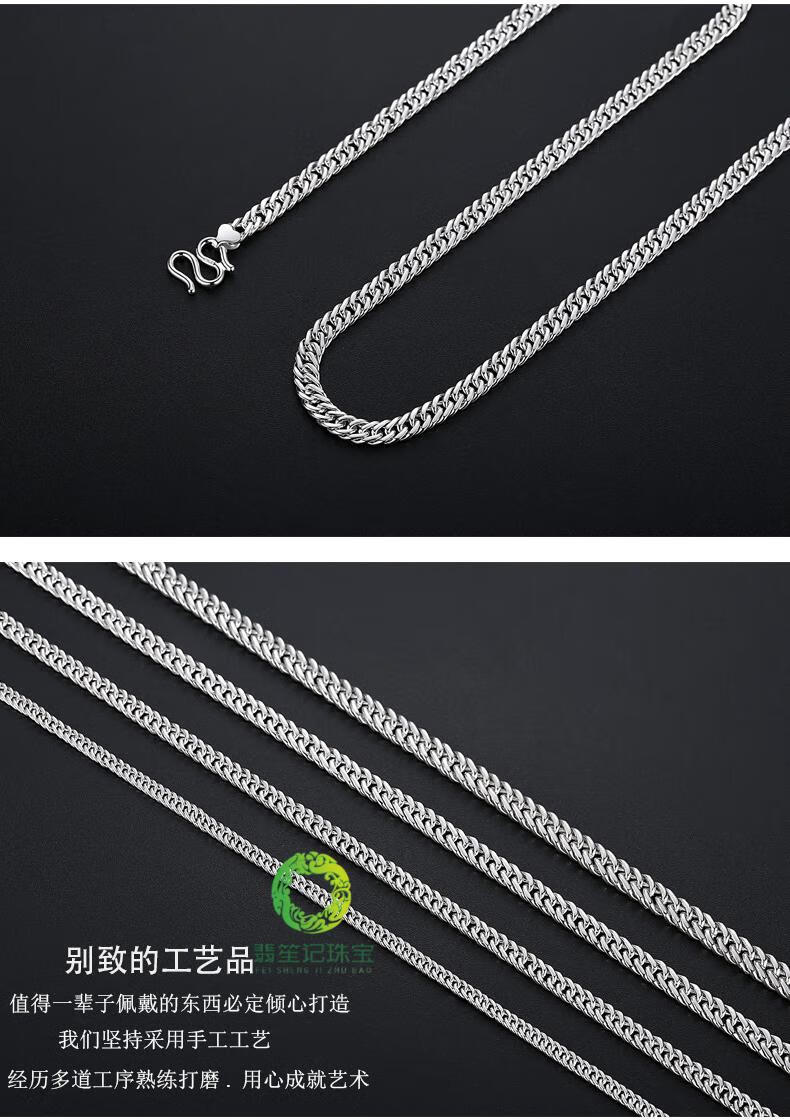 Feishengji Fat Donglai same style pt950 platinum Cuban necklace 999 necklace men's silver Cuban horsewhip chain solid simple chain horsewhip chain 20g thick 5mm long 50cm