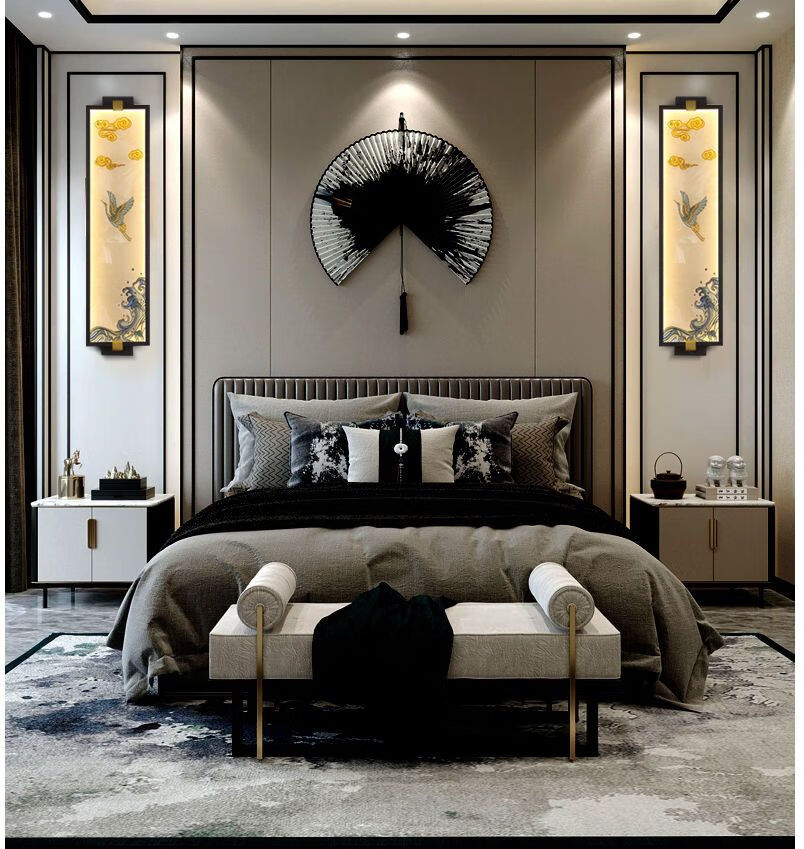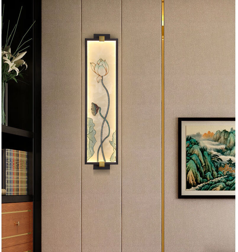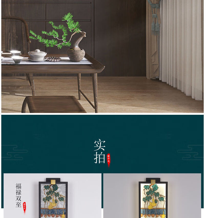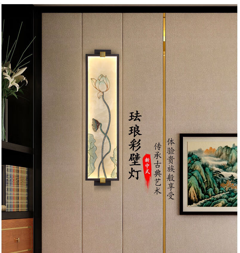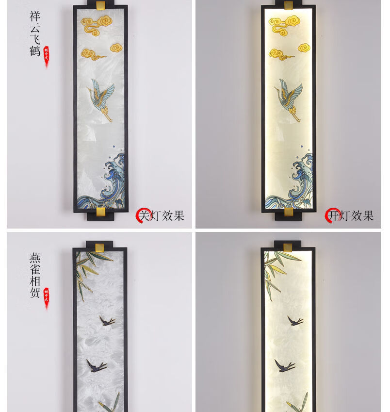 Yaotian's new enamel color new Chinese style wall lamp Chinese style bedroom living room TV background wall tea room Zen bedside wall lamp Xiangyun Feihe + three-color dimming