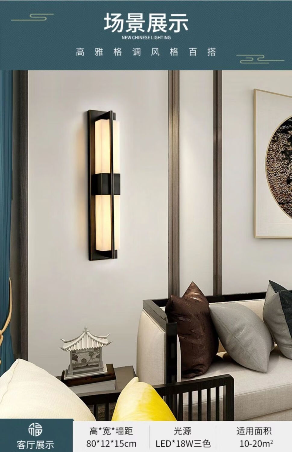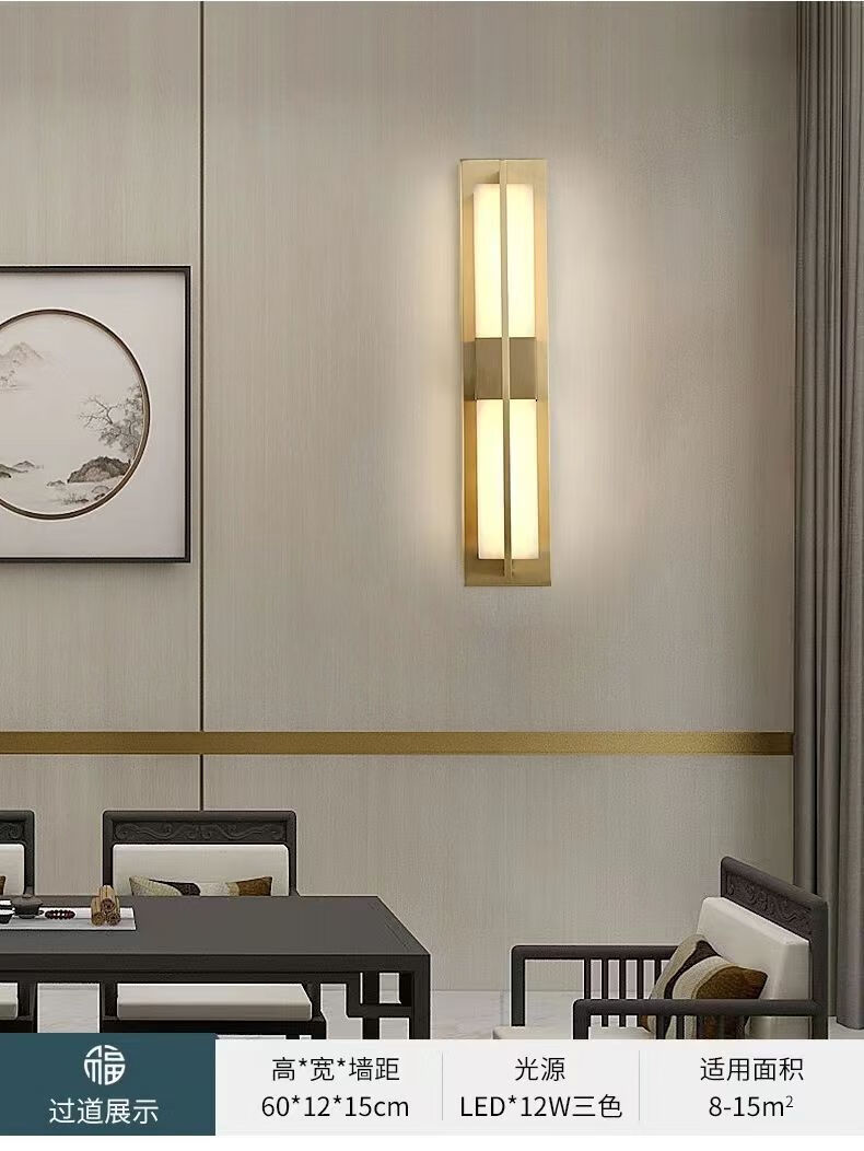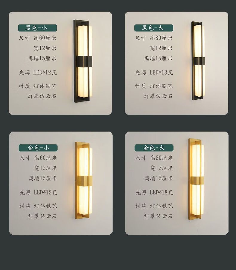 Yaotian New Chinese Style Wall Lamp Chinese Style Rectangular Living Room Background Wall TV Wall Lamp Simple Bedroom Bedside Aisle Lamp 2017 Black Gold Trumpet Three-Color Changing Light