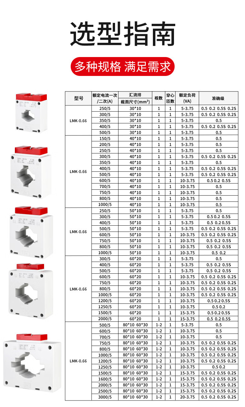 Delixi AC current transformer LMK-0.66 300.5 level current ratio 75/150/300/5A/BH 30 1 turn 0.2S level 100/5