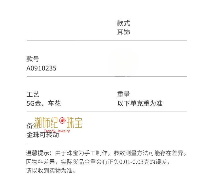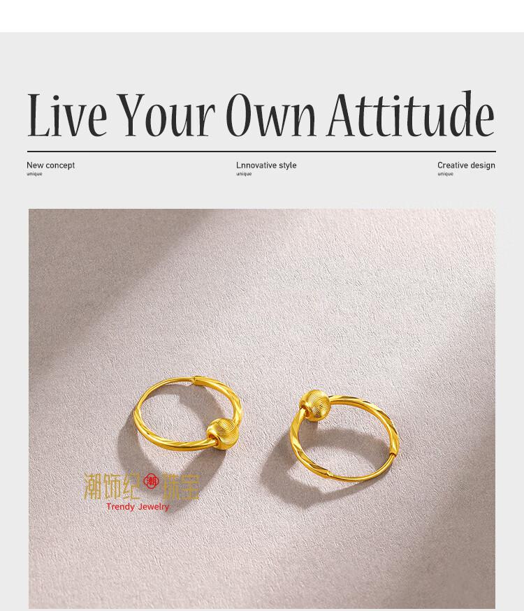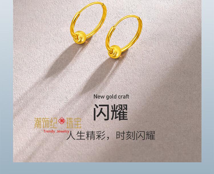 DL 1998 Fat Donglai same style 18K gold earrings transfer bead gold earrings for women sparkling gold beads 999 gold women's earrings fashion gold bead earrings